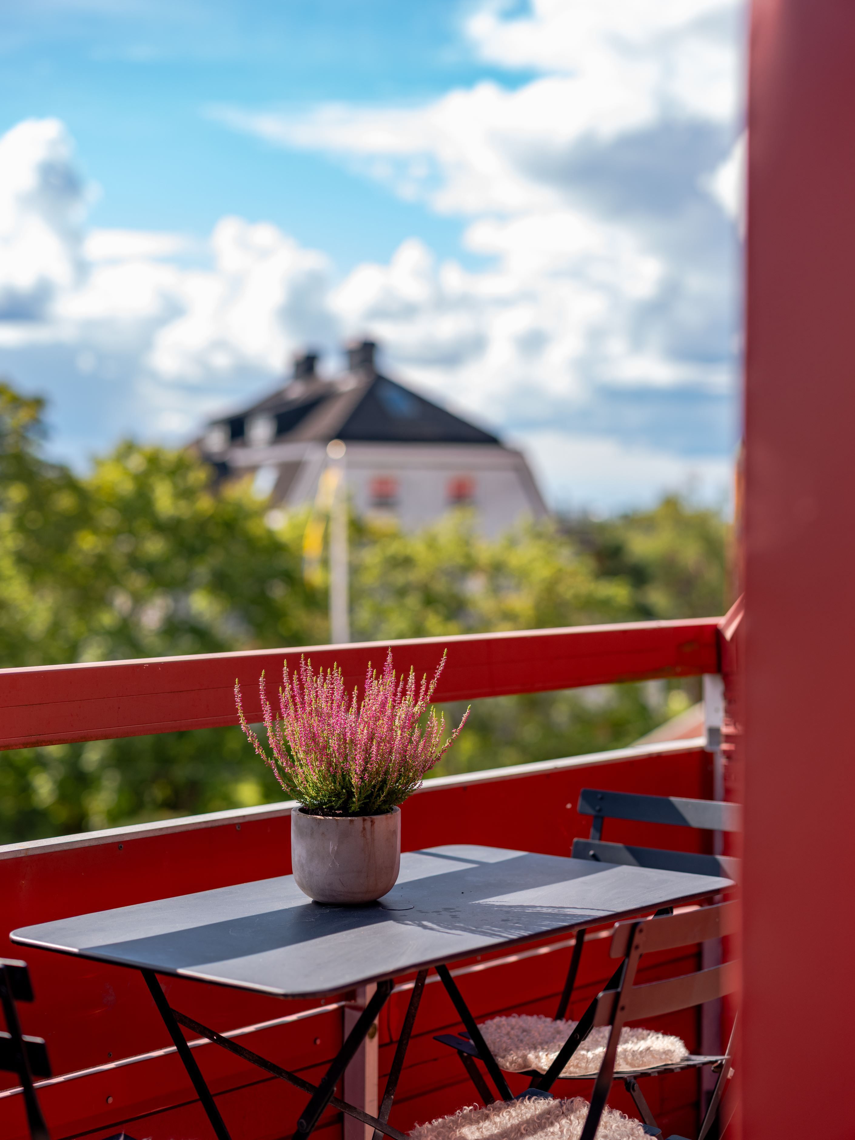 Välkommen till en ljus och stilfull genomgångslägenhet allra högst upp i huset i populära Herserud. Här bor du insynsskyddat med en solig balkong som bjuder på både glimtar av vattnet och en vacker vy över staden – den perfekta platsen för avkoppling.