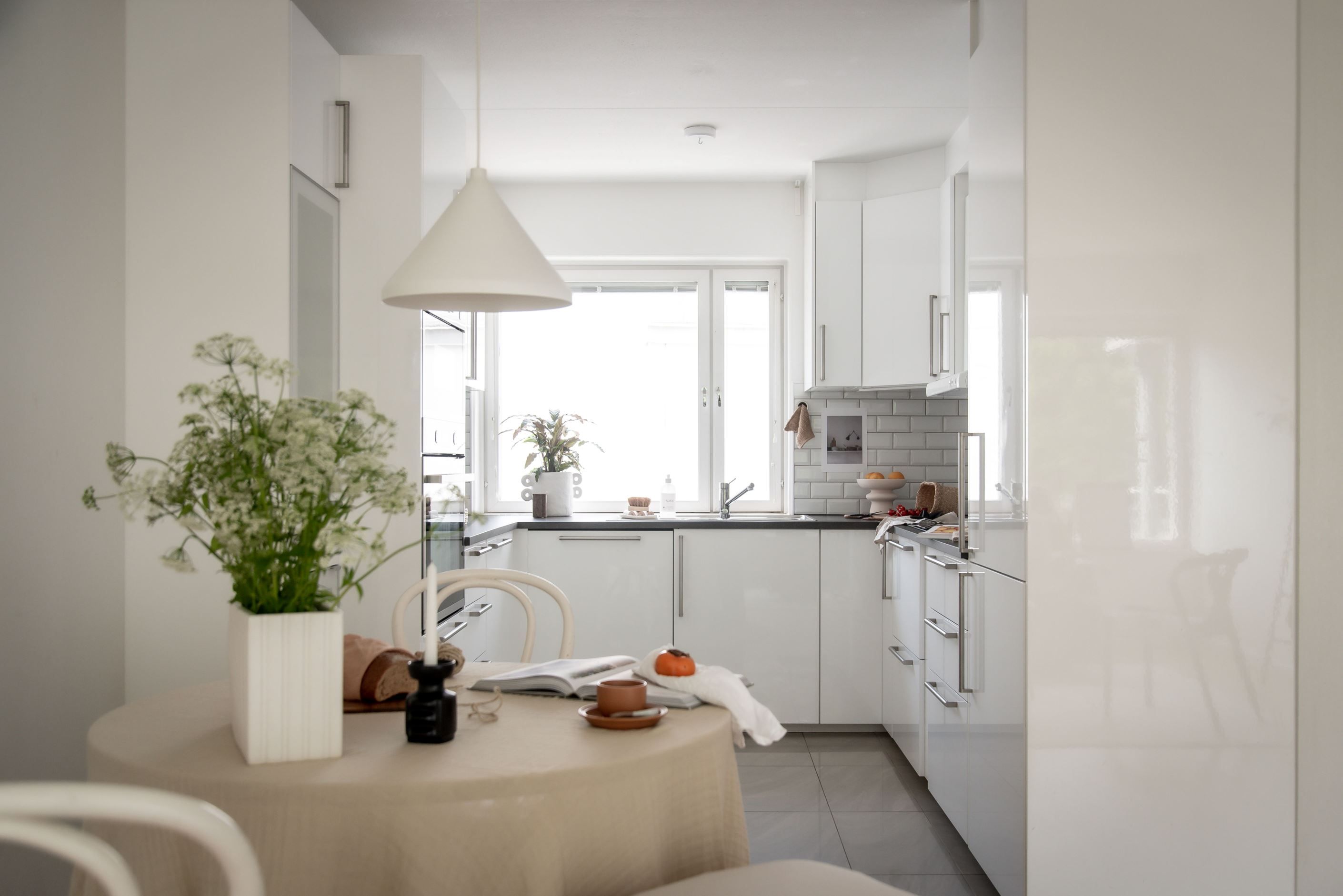 Bostaden är ljus och fräsch med genomgående fina ytskikt och ett harmoniskt ljusflöde från stora fönsterpartier i två riktningar. Du har en rymlig balkong mot morgonsolen, utan något hus mitt emot, grönskande natur runt knuten och ingen insyn.