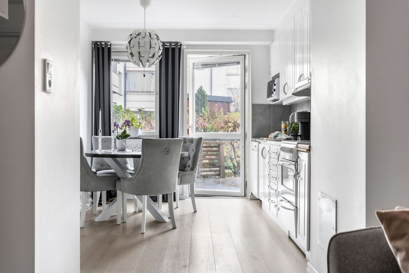 - Modern bostad i fastighet från år 2000. Öppen planlösning mellan kök och vardagsrum som är nyrenoverade med moderna golv och målade väggar. Golvvärme i badrum med klinkergolv och helkaklade väggar samt möjlighet att installera tvättmaskin. Stort sovrum med garderober och plats för dubbelsäng. Härlig radhuskänsla på den utbyggda uteplatsen som ligger i ett soligt söderläge mot föreningens innergård. Välkommen till ett hemtrevligt grannskap med trevliga och hjälpsamma grannar!