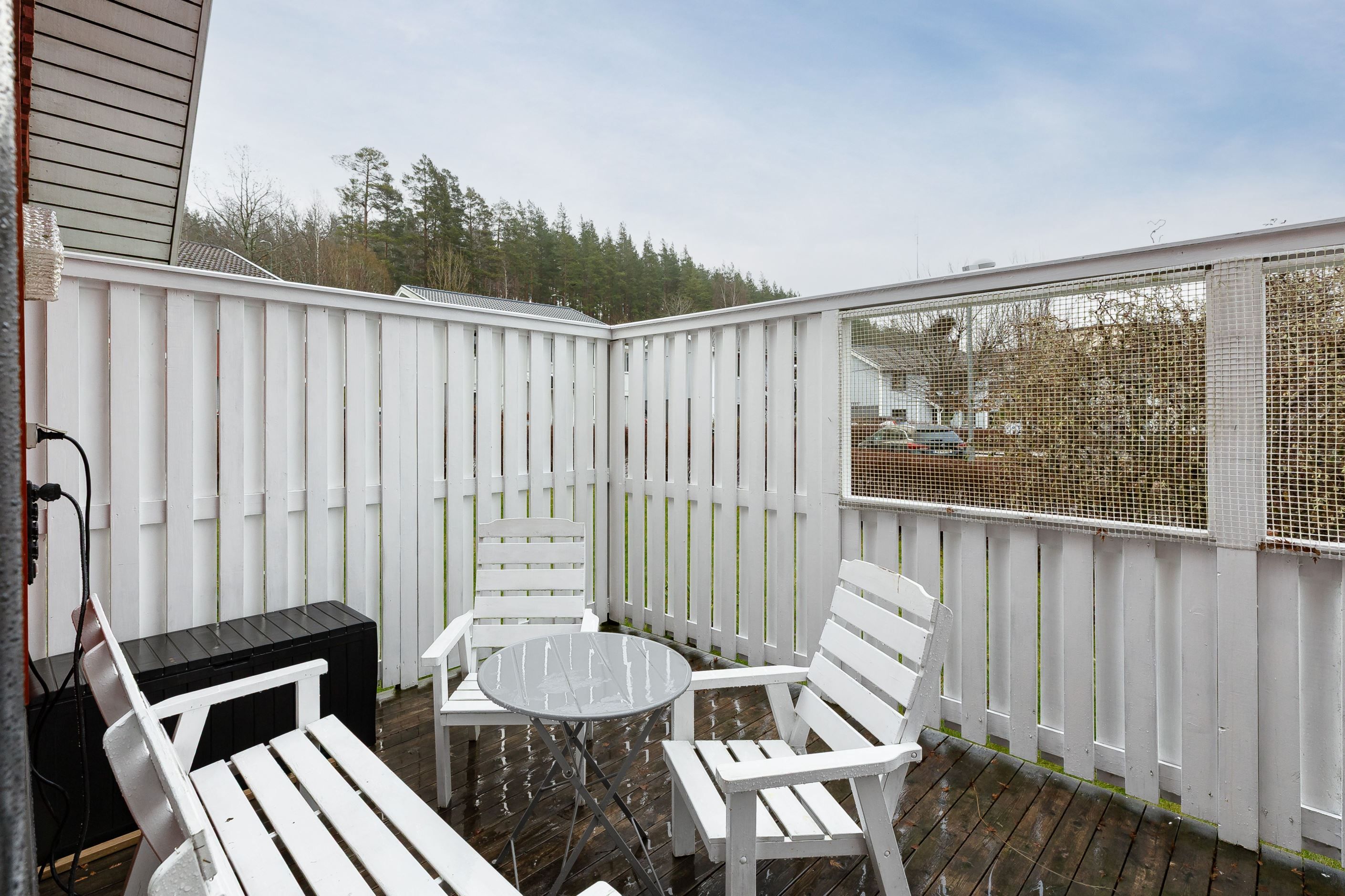 På tomten finns ett garage med plats för bil och extra förvaring.