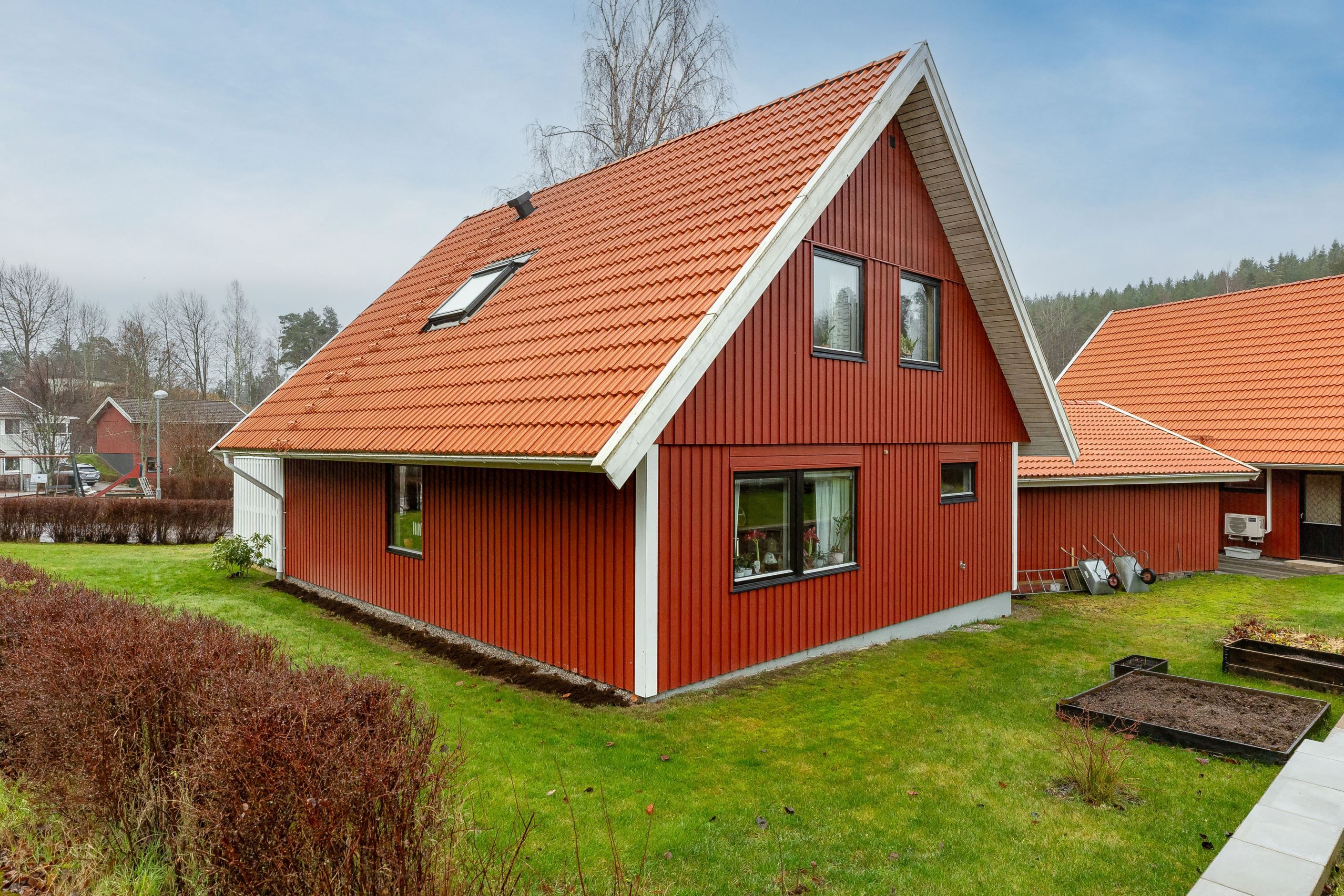 Huset är fördelat på två plan och rymmer tre till fyra sovrum, generösa sällskapsytor och praktiska lösningar som underlättar vardagen.