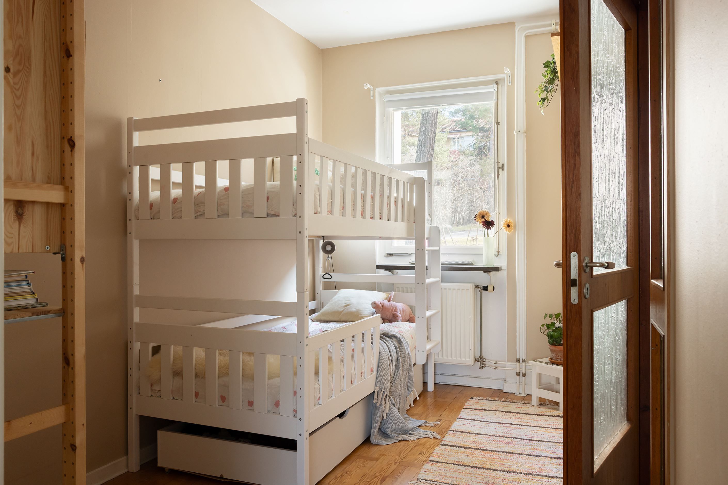 Bostadens andra sovrum är stort till ytan med gott om plats för dubbelsäng, sängbord och ytterligare möblemang efter smak och behov. Det stora fönstret ger ett fint ljusinsläpp till rummet. I detta rum finns också en rymlig garderob som ger bra förvaringsmöjligheter.
