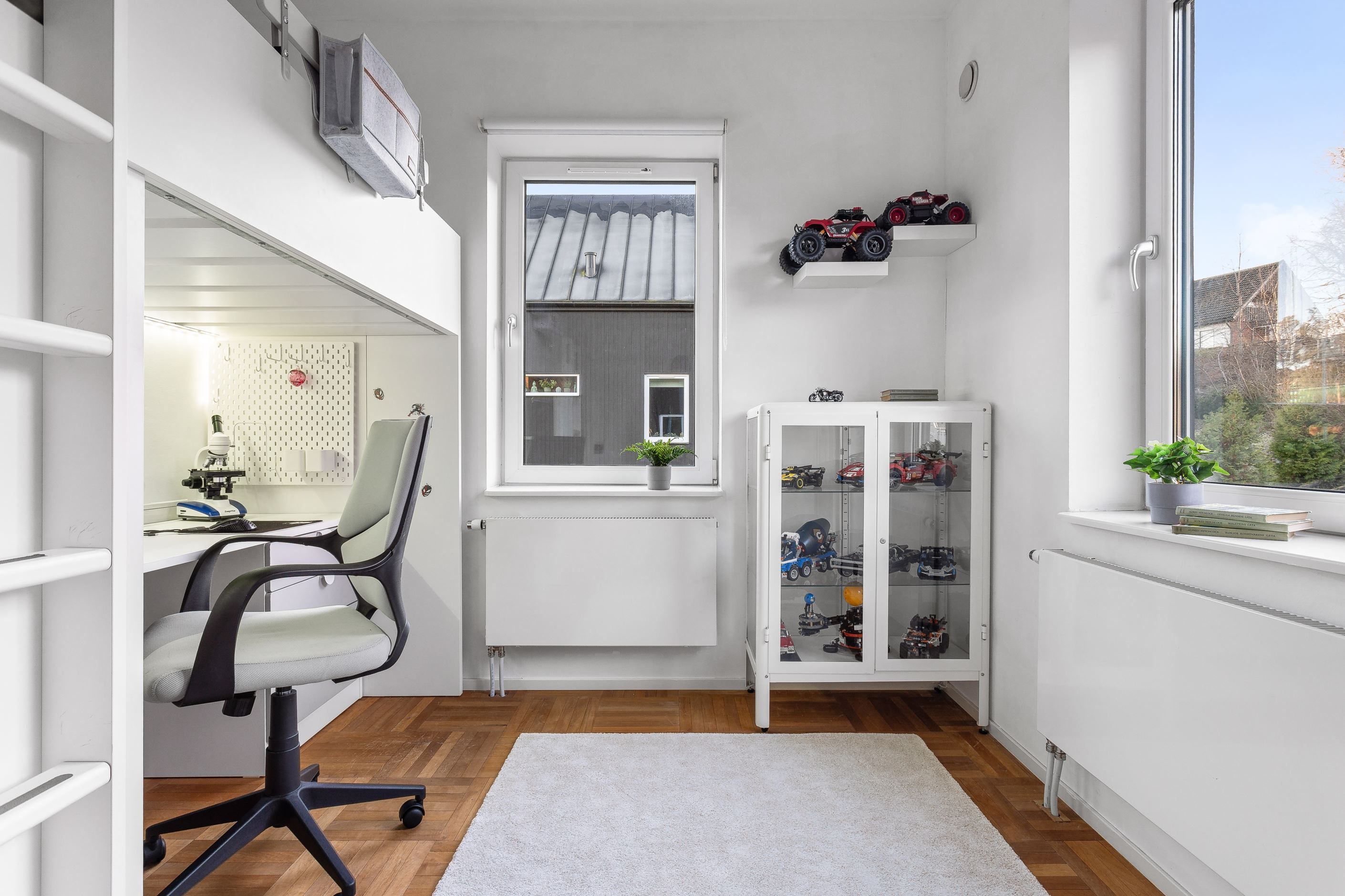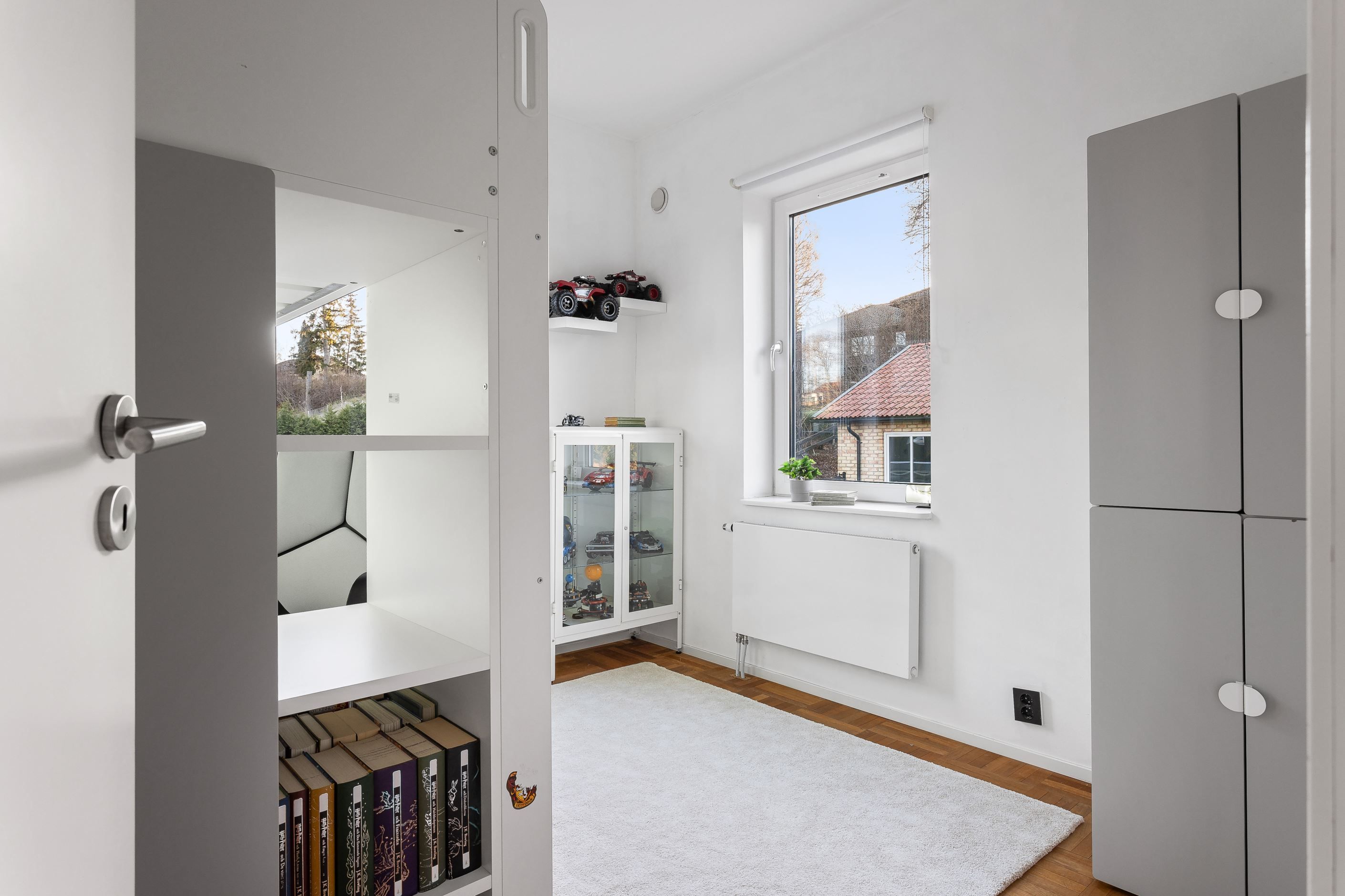 Under trappan som leder upp till tredje våningen finns ett smart och mysigt utrymme med ingång från ett av sovrummen på våning två. Perfekt som praktiskt förråd, lekfull koja, hemligt krypin för barn eller som ett dolt förvaringsutrymme för det man vill ha nära till hands.