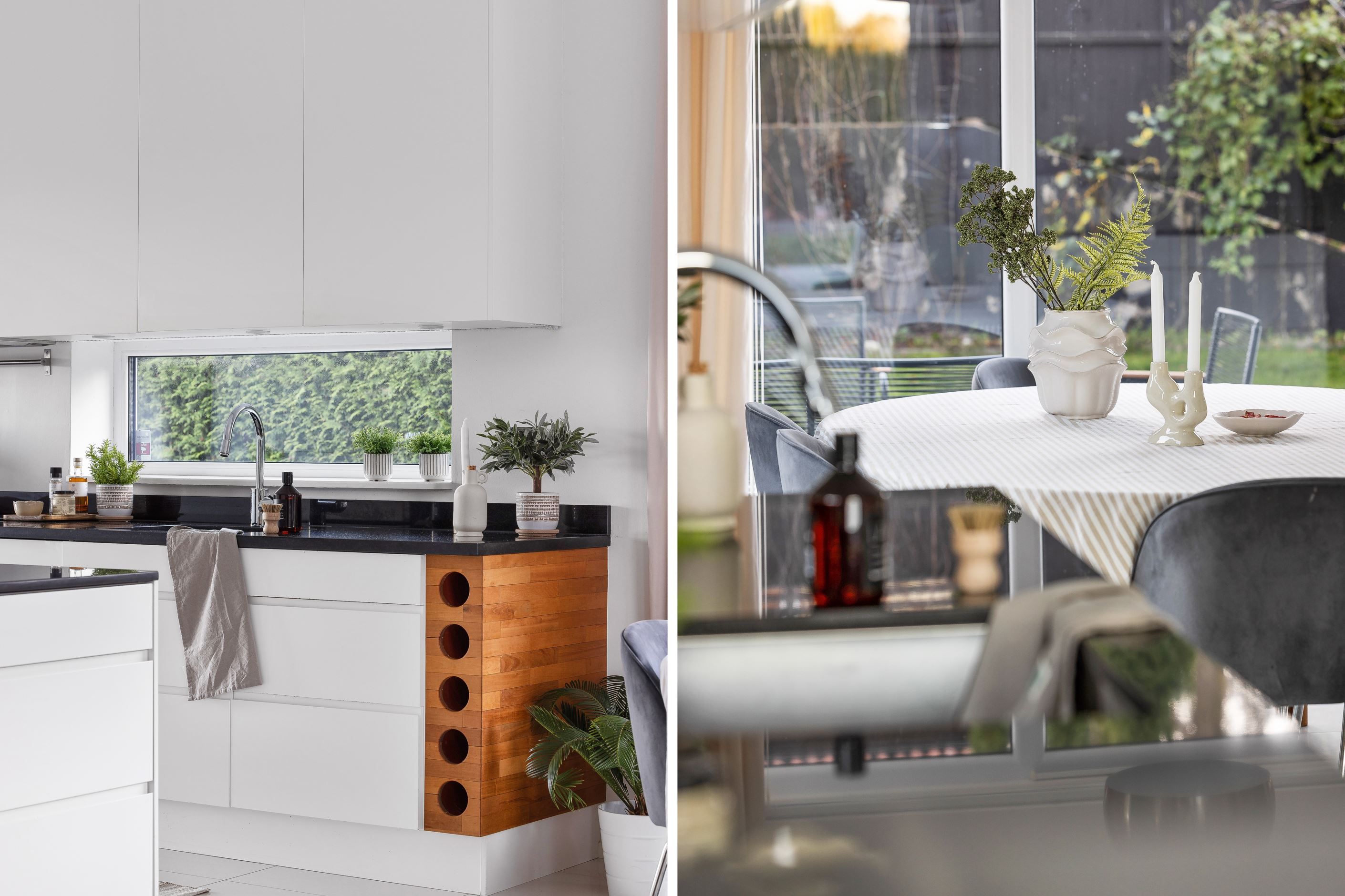+ Platsbyggt kök från snickeri med höga skåpsluckor och granitbänkskiva