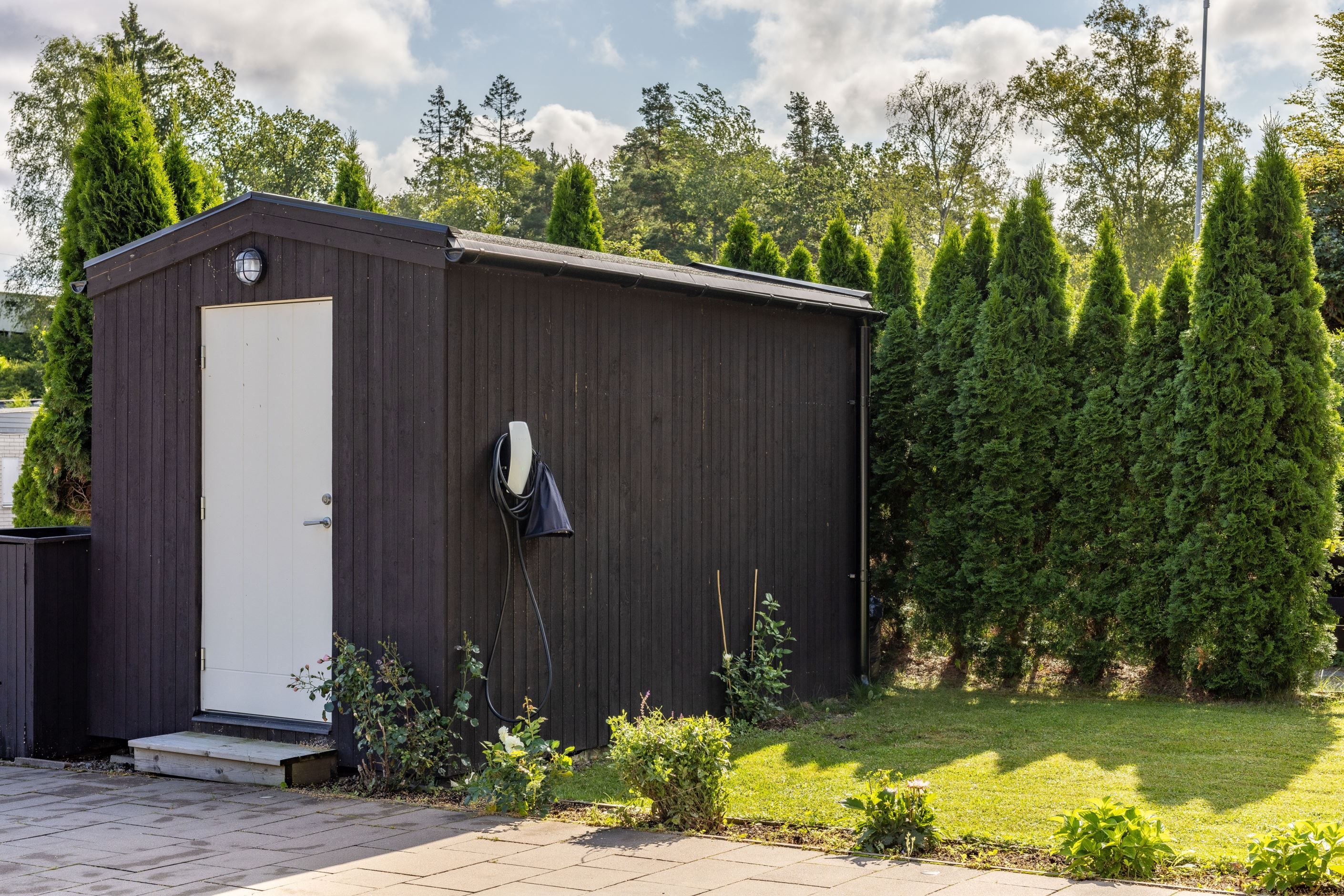 Huset måste upplevas på plats då takhöjden är slående men svår att få rättvis på bild och varierar mellan ca 3-5meter. Förrådsbyggnad finns att tillgå om ca 10 kvm på framsidan. Här finns även uppställningsplatsför 2 bilar på stenläggning med infälld belysning.