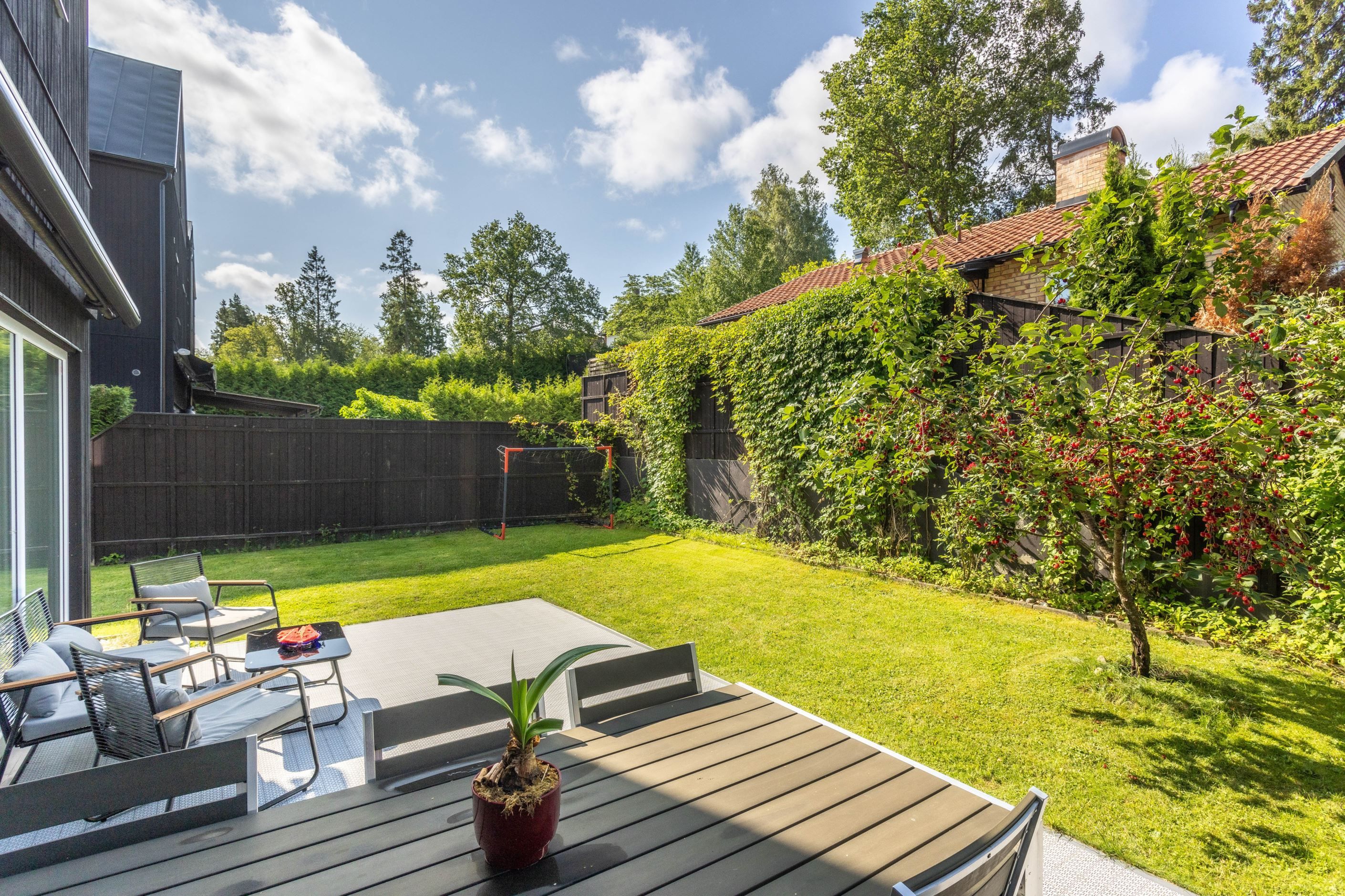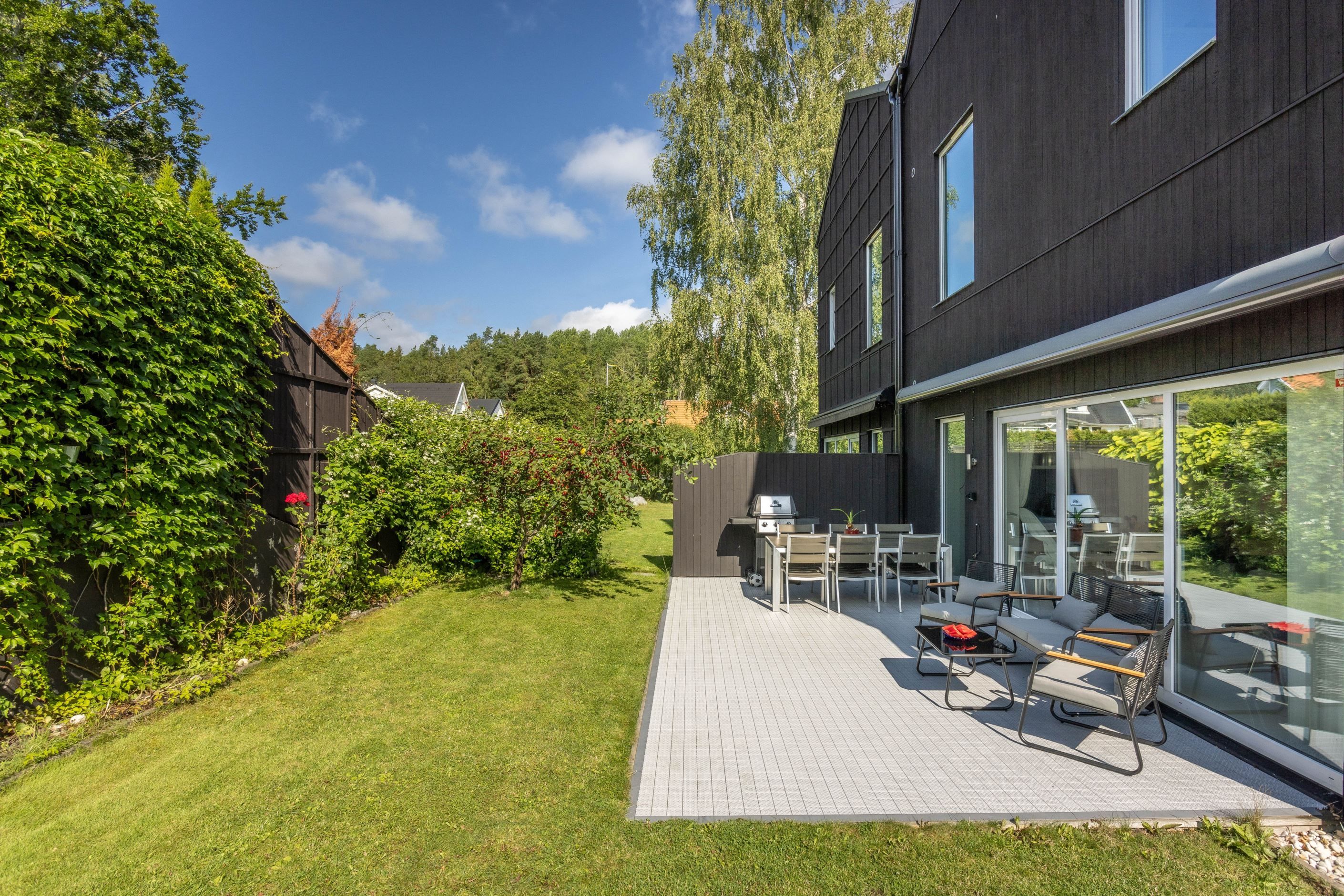 Friköpt parhus, en utav 2 som har 3 bostadsplan vilket ger en totalyta om 169kvm. Här finns gott om plats att njuta av solen i både loungegrupp, solstolar och matbord. Grilla, bjud över vänner och umgås utan direkt insyn. 2 bad/duschrum, tvättstuga, 3 sovrum och 2 allrum.