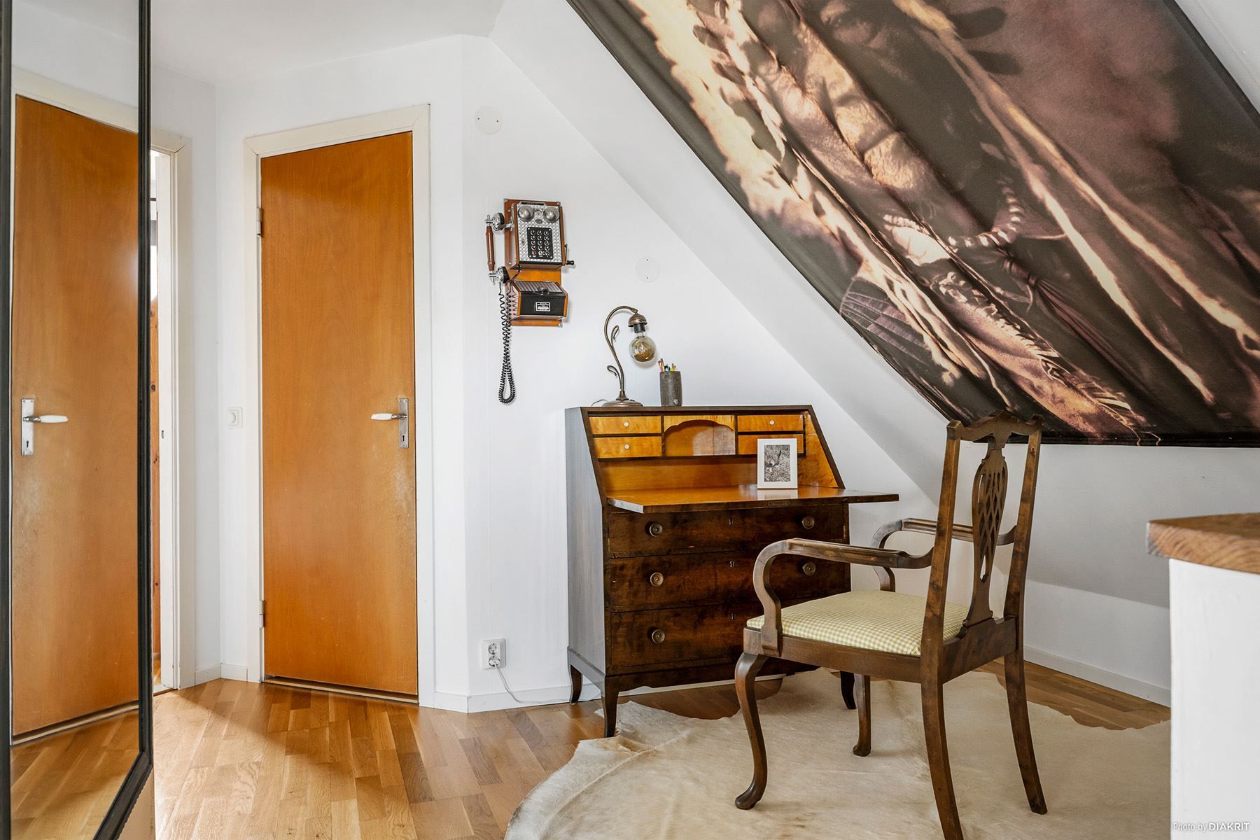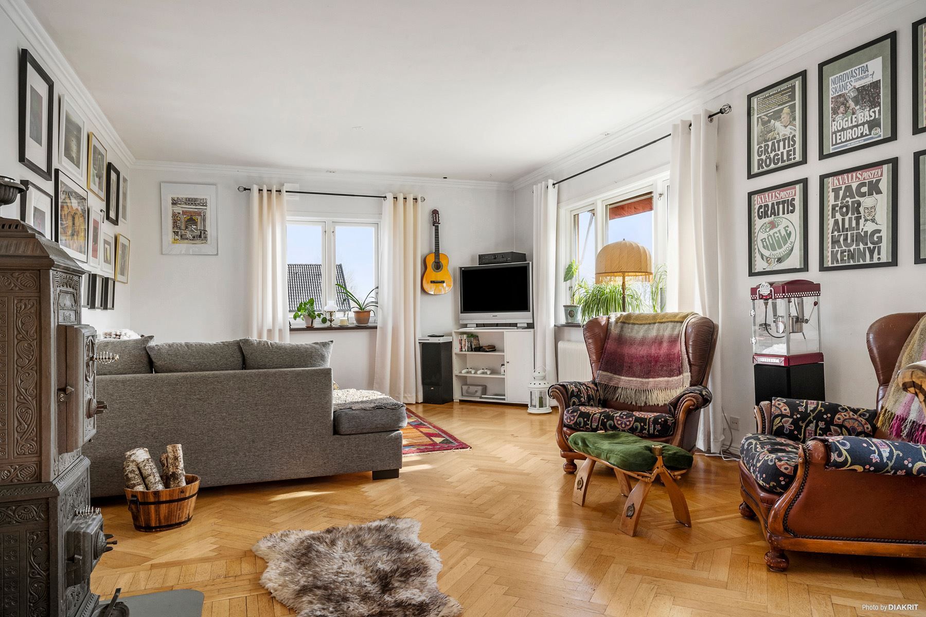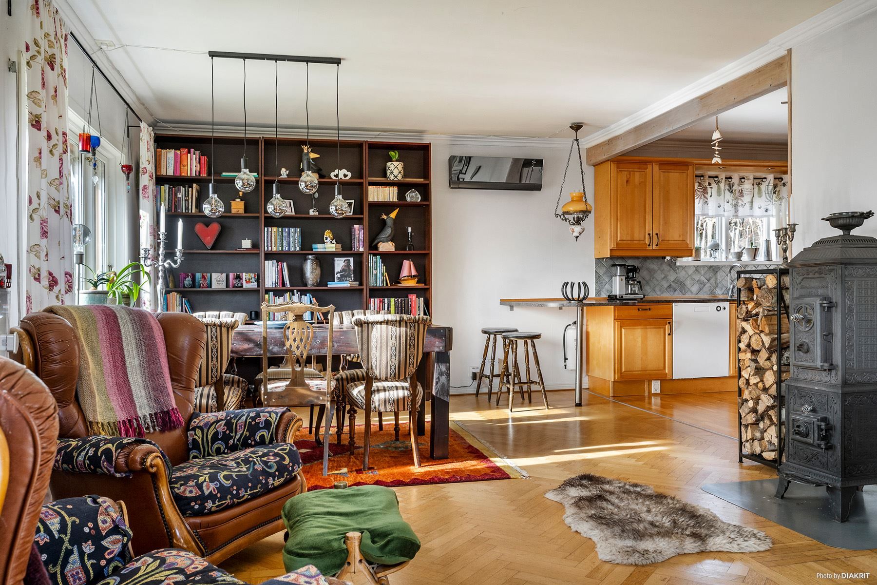 Bostaden präglas av en varm och ombonad känsla, en gjutjärnskamin utgör en stämningsfull mittpunkt och tillför såväl karaktär som behaglig värme. Övre plan ger en naturlig avskildhet för sovrum och ett nytt badrum. Utöver bostadens välplanerade ytor ges extra kvadratmeter genom ett helt källarplan med gott om förvaringsytor, tvättstuga och varför inte ett hobbyrum?
