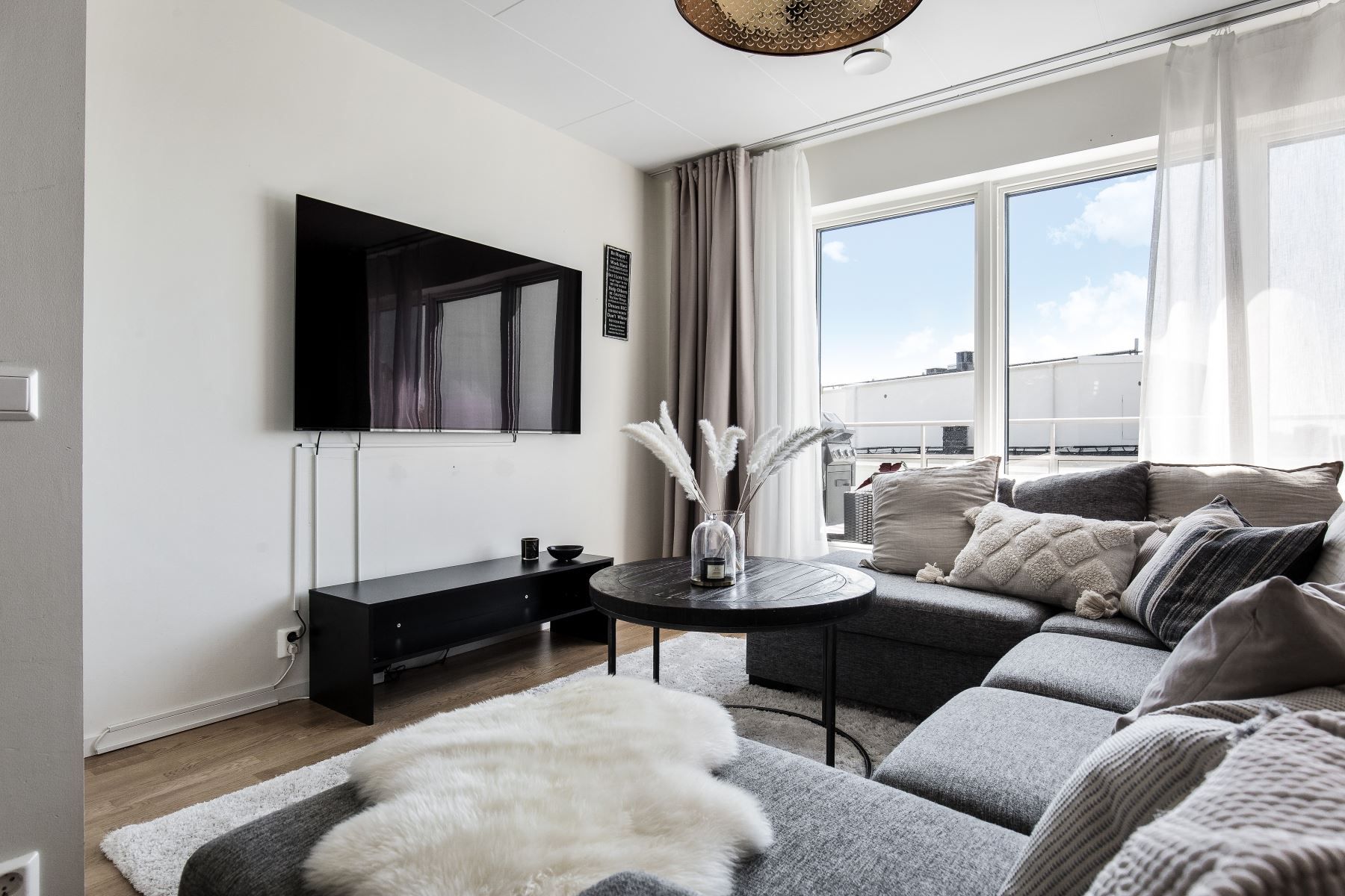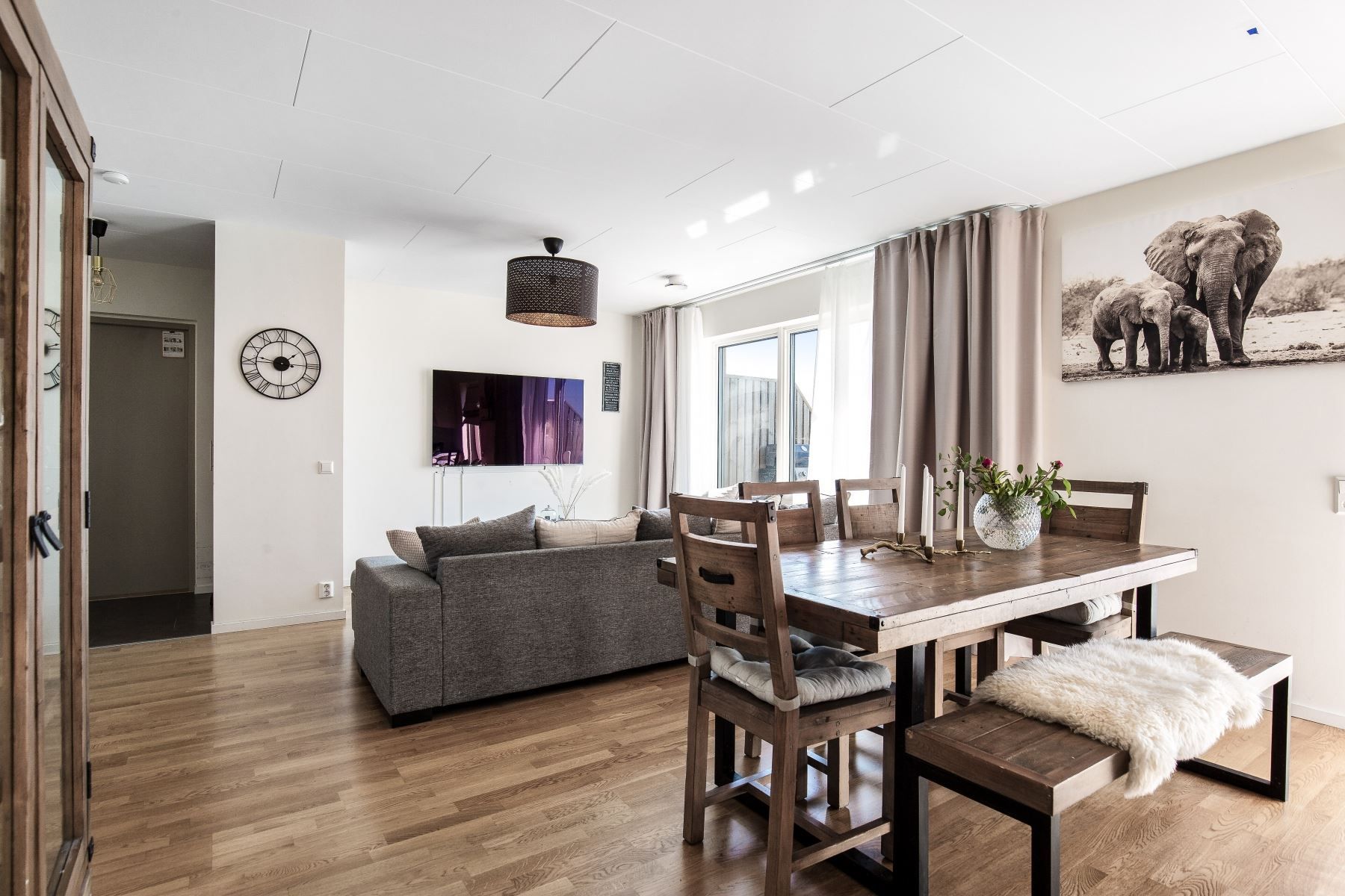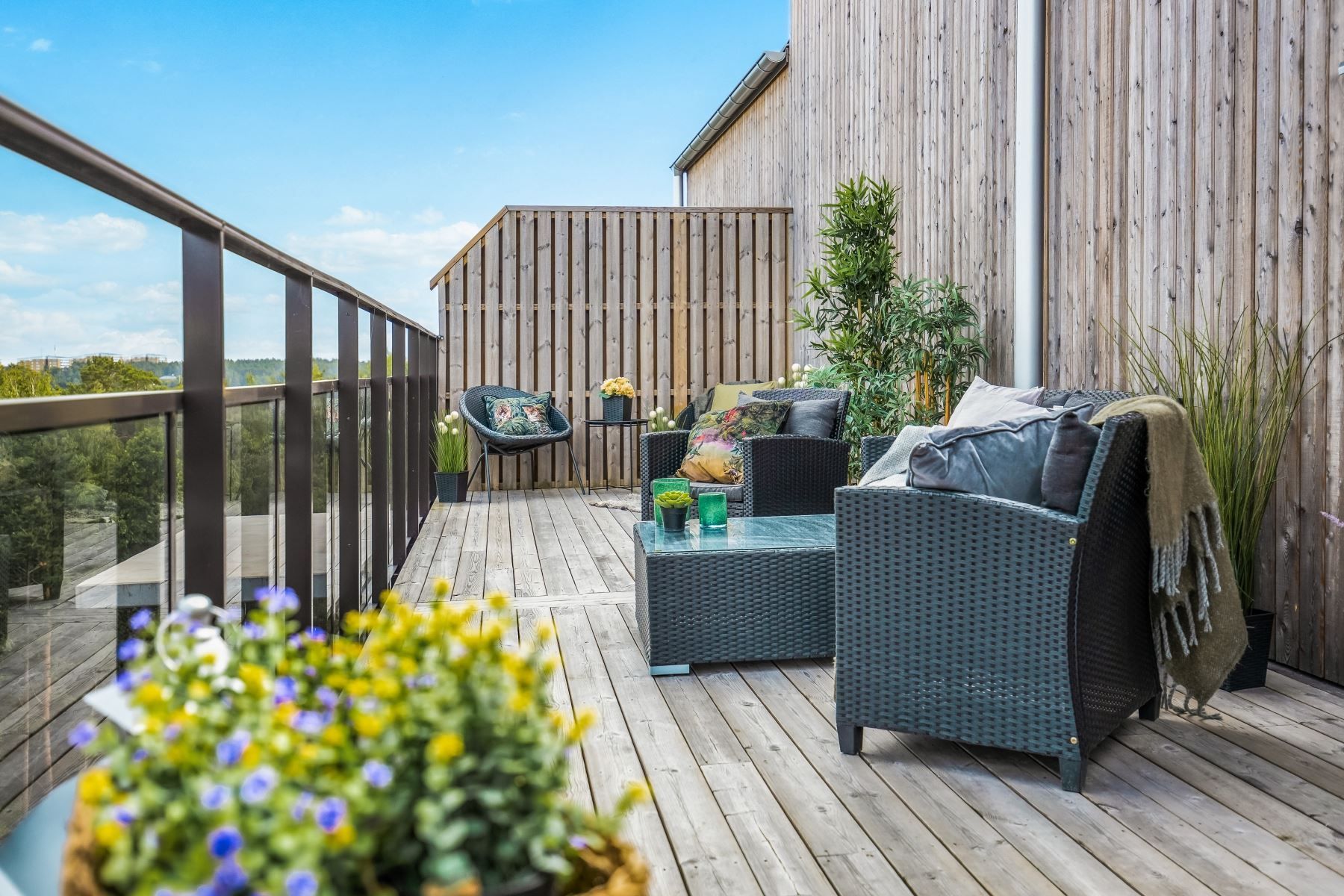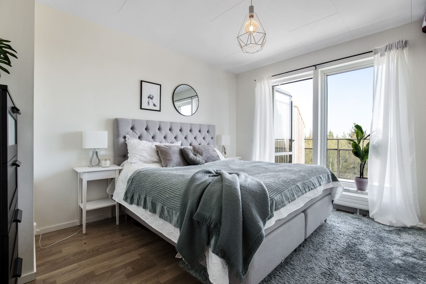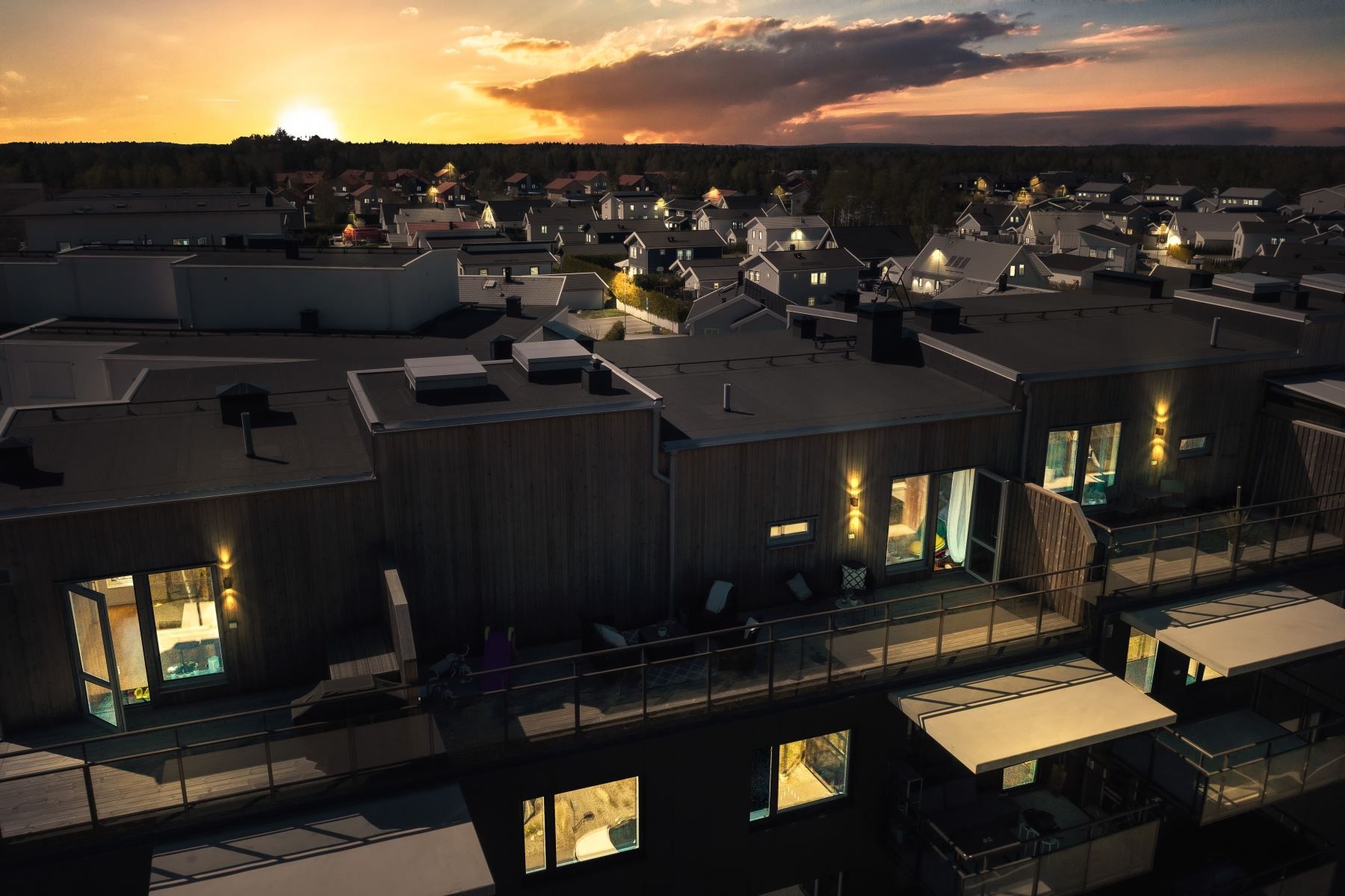 Njut av en helt fantastisk utsikt över omnejd och ogenerat belägen lägenhet högst upp i huset. En bostad att helt enkelt stormtrivas i. Två helt fantastiska terrasser om 29 kvm respektive 19 kvm där du kan möta våren och njuta hela sommaren vare sig du vill ha gassande sol eller njuta i skuggan med familj och vänner. Altanerna inbjuder till sol från tidiga gryning till solnedgång. Lägenheten inhyser ett ljust och modernt kök med sprishäll, ugn, inbyggd micro, spissfläkt och diskmaskin. Genomgående fina parkettgolv och ljusa färgval på väggarna. Badrum med golvvärme, handdukstork och tvättpelare. Rymlig klädkammare som idag är inredd till ett sovrum. Förråd finns i källaren. Upplevs bäst på plats, du kommer att förälska dig i denna lägenhet. Välkommen hem!