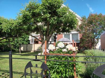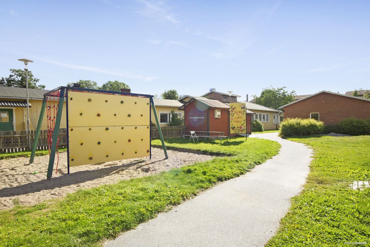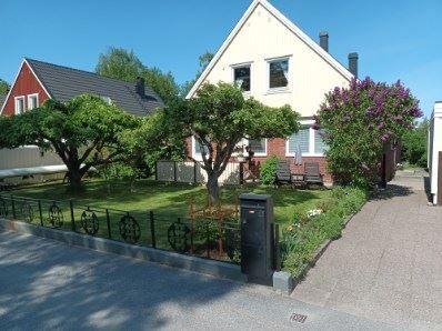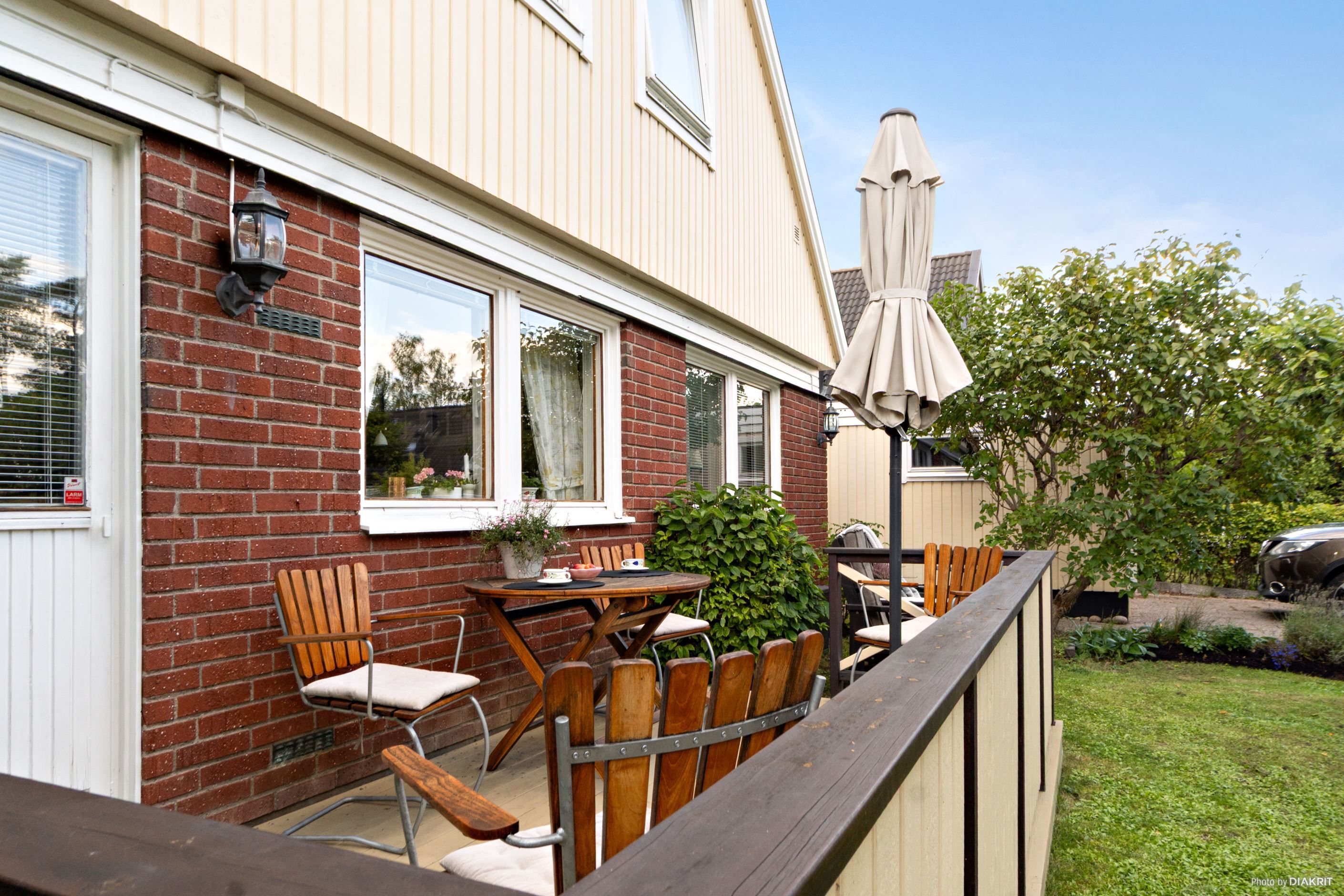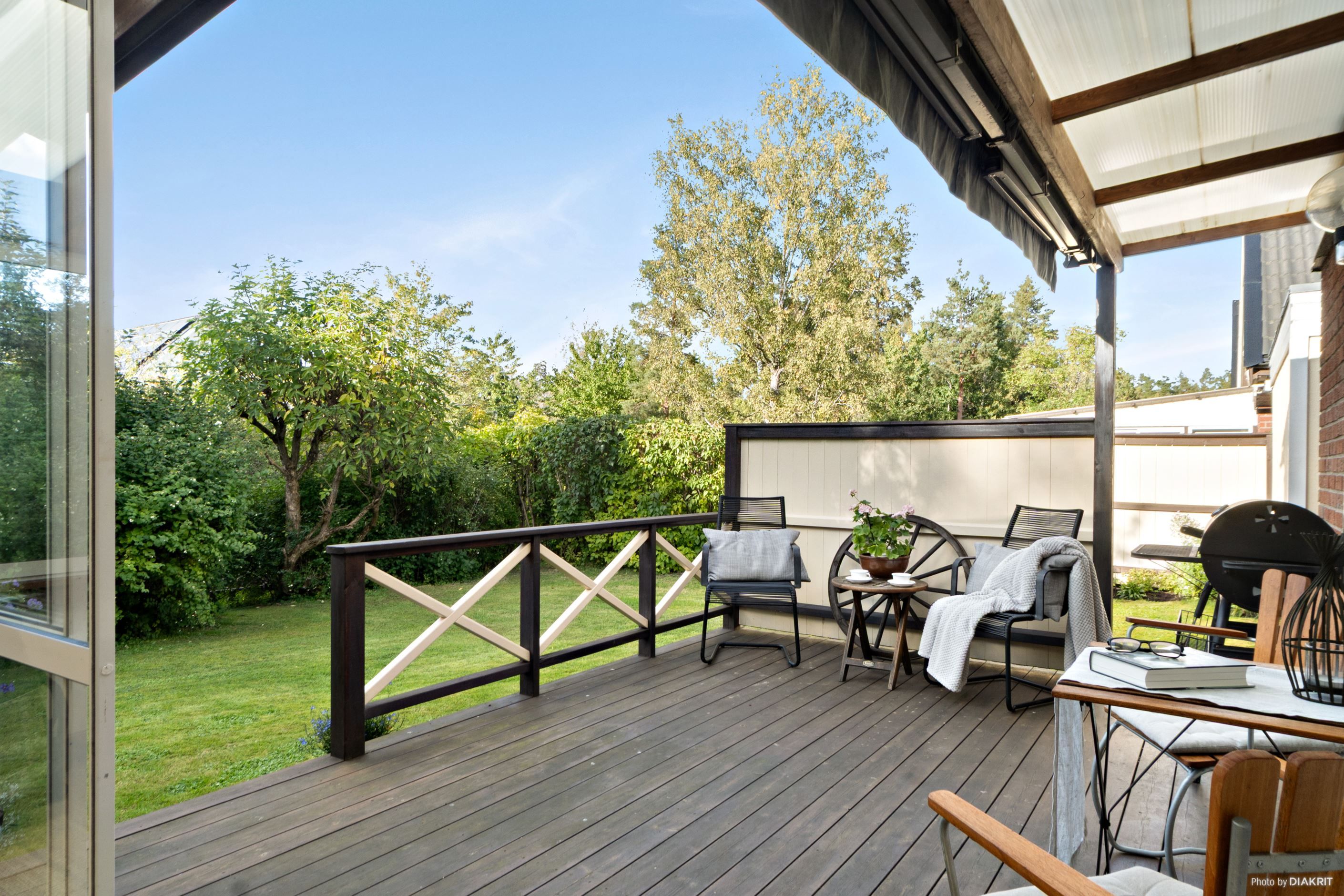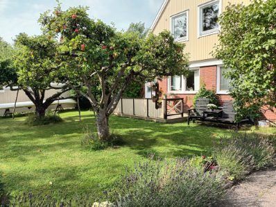 Den mycket välskötta trädgården är en grön oas med fruktträd, bärbuskar, syréner och fina gräsytor både på fram- och baksida. Här finns plats för lek, odling och avkoppling. Altanen på baksidan erbjuder fin kvällssol – perfekt för sommarens grillstunder – och den inglasade delen förlänger säsongen långt in på både vår och höst. Till fastigheten hör även garage och förråd.