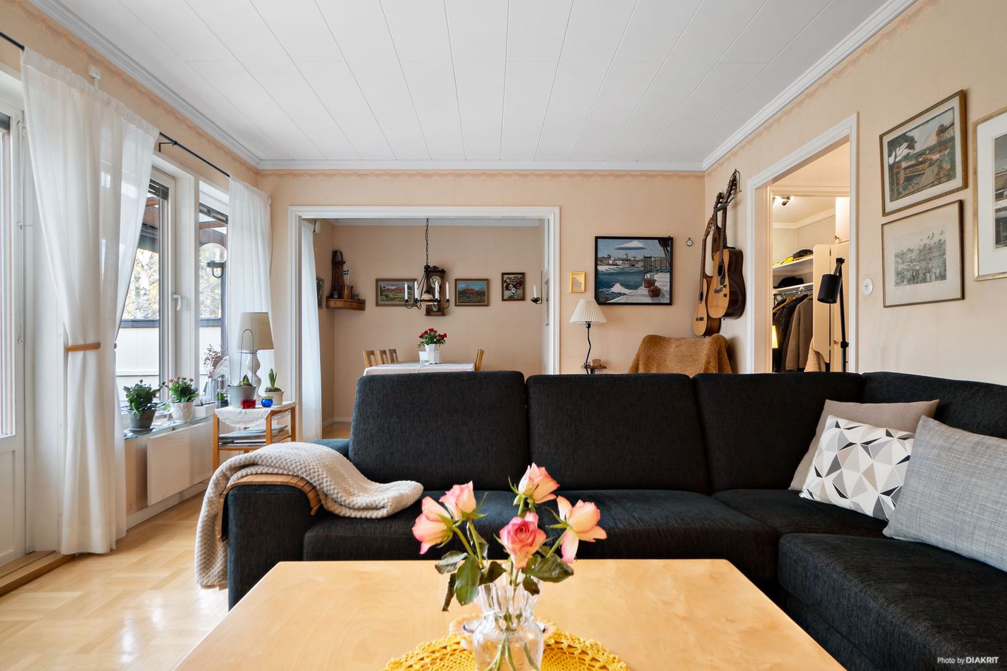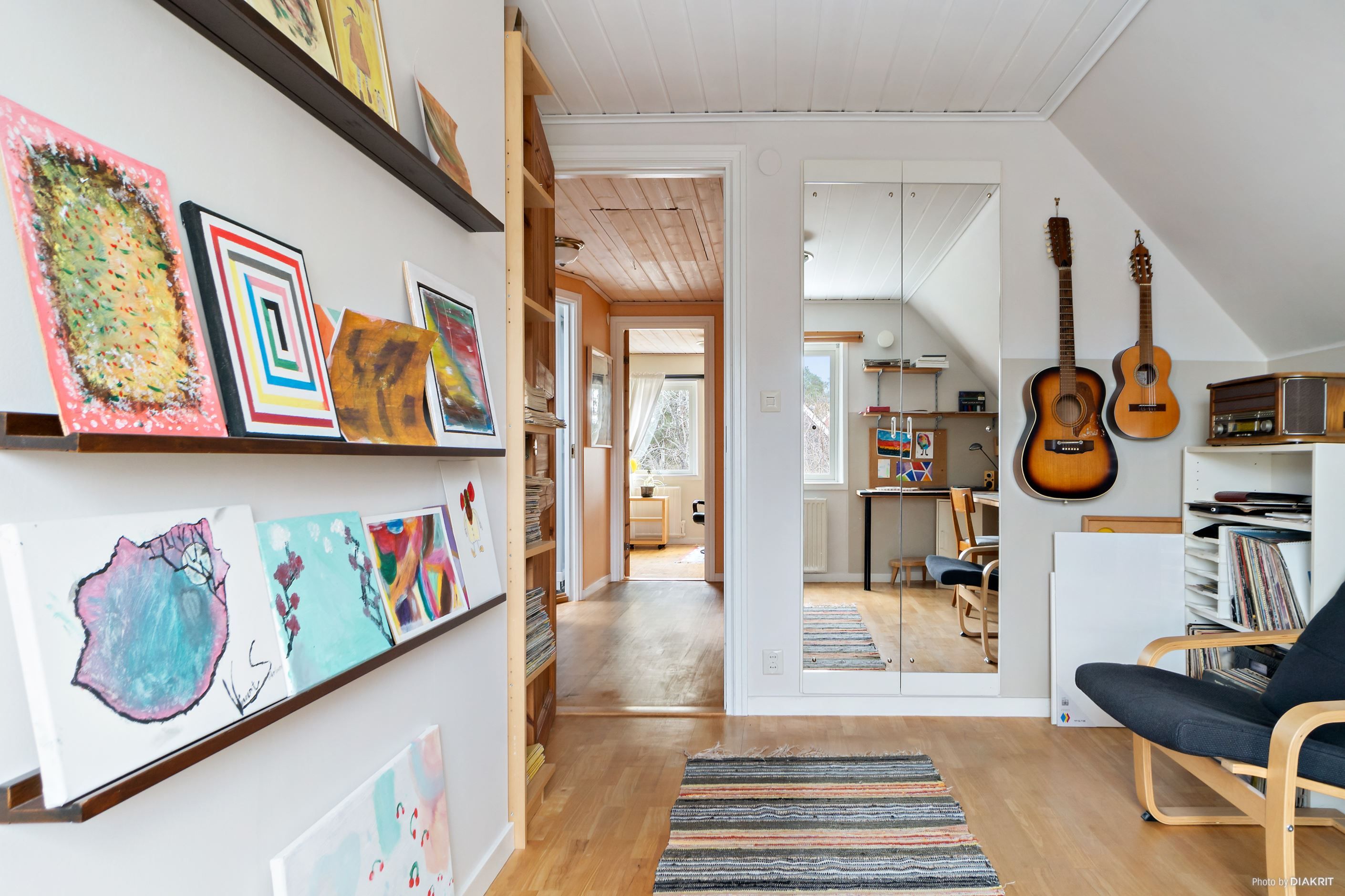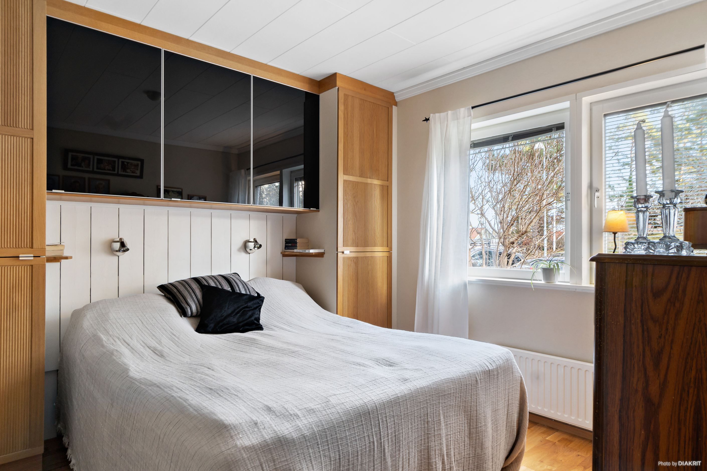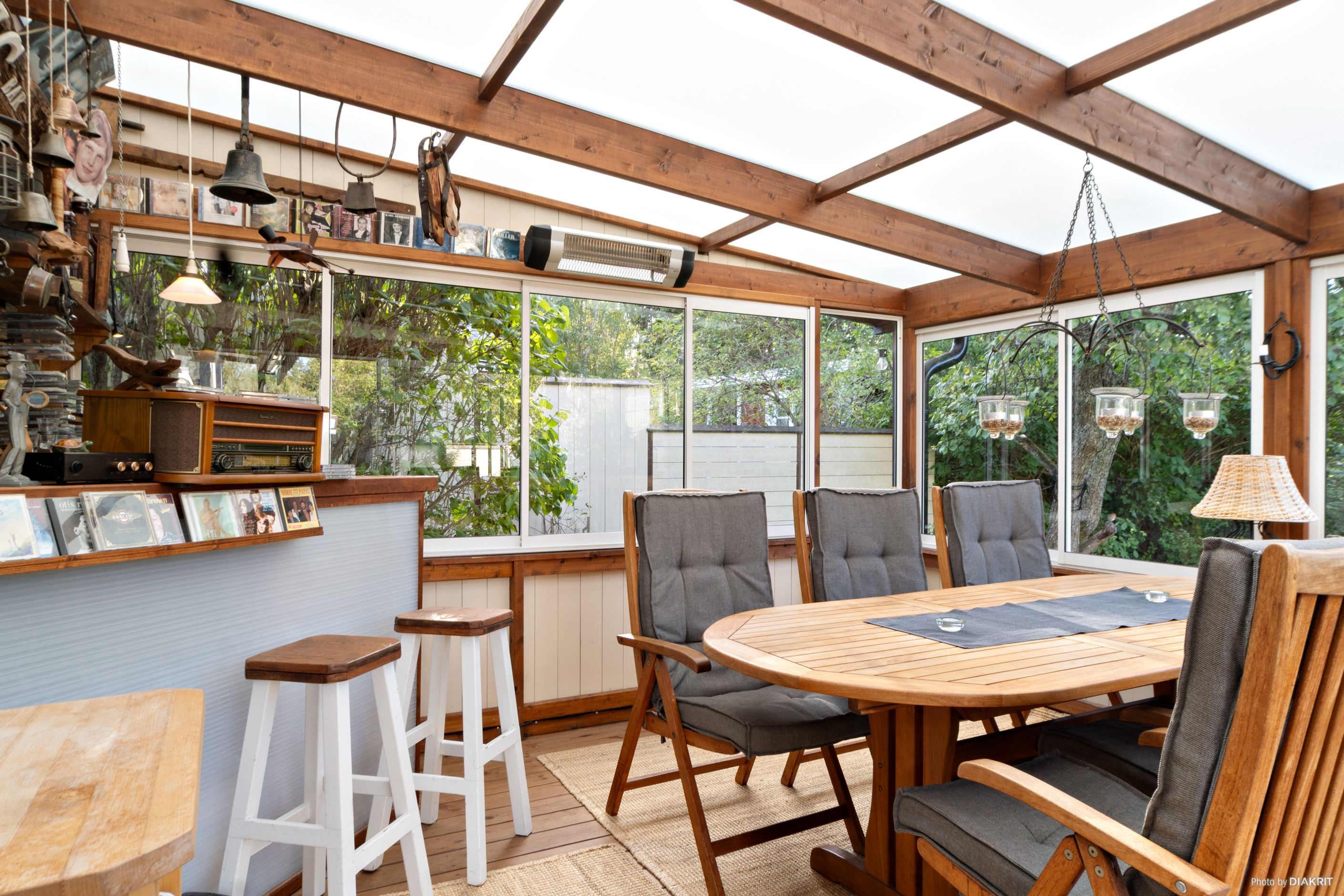 Husets planlösning är smart och väl avvägd med generösa utrymmen och goda förvaringsmöjligheter. Det ljusa vardagsrummet har stora fönsterpartier som släpper in rikligt med ljus och leder ut till en rymlig altan med inglasad uteplats i soligt västläge.