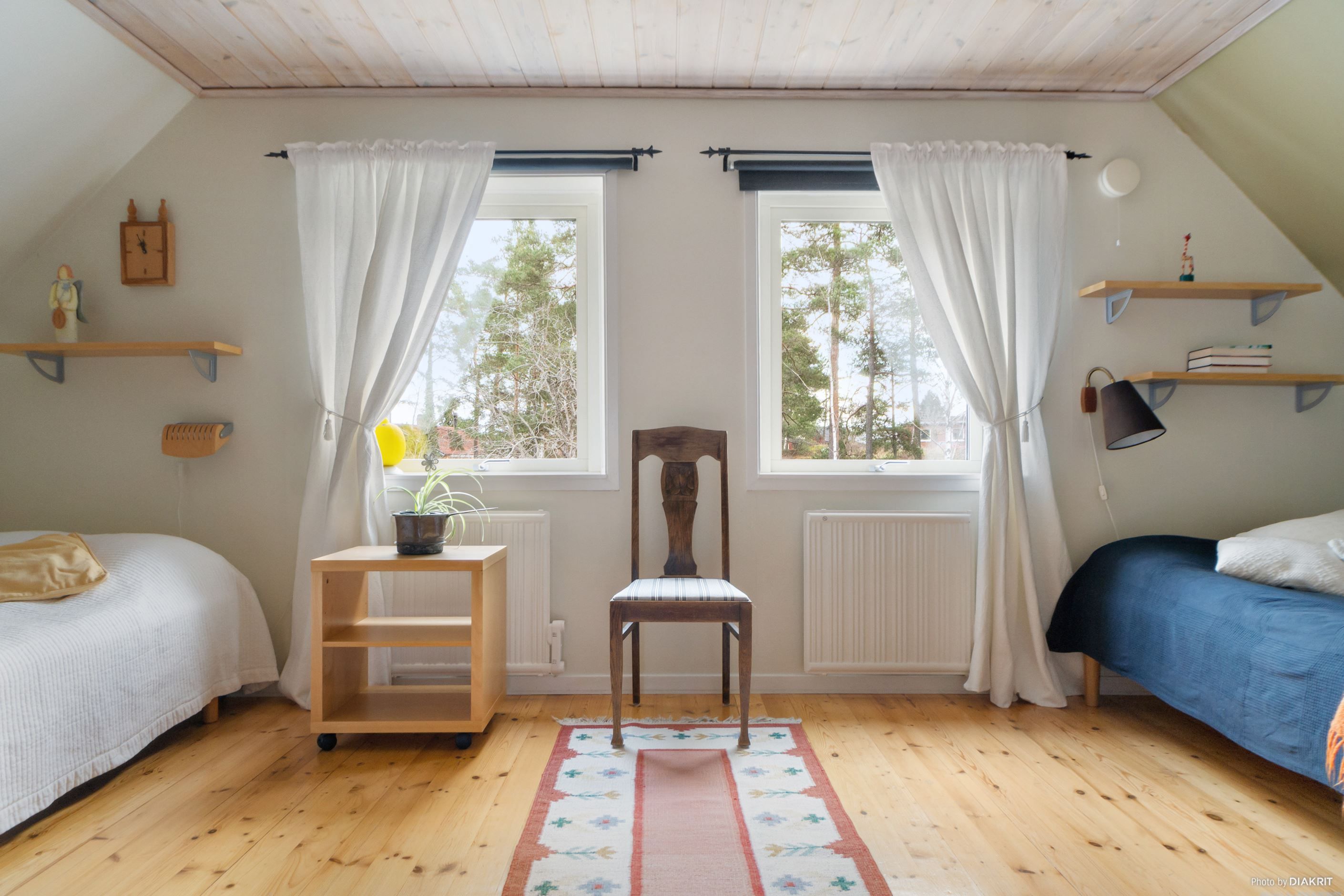 På entréplanet finner vi ett stort master bedroom samt möjlighet att återskapa ytterligare ett sovrum om behov finns. Övervåningen erbjuder flera rymliga sovrum, med flexibilitet att dela av för ännu fler rum vid önskemål. Båda badrummen är fräscha. Huset är renoverat med stor omsorg och hantverksskicklighet av nuvarande ägare som är snickare.