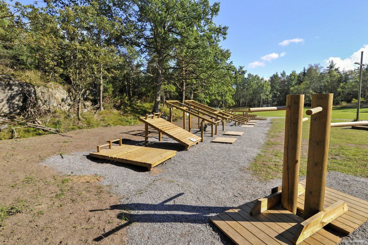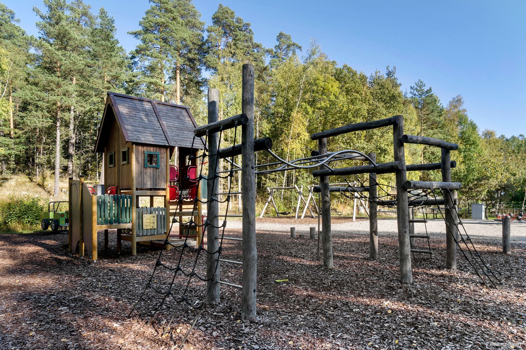Gångavstånd till Nacka golvbanan, Ekedalsspåret och cykelavstånd till badsjö samt Skeviksgården. Några minuters bilfärd till Norra Lagnö samt pendelbåt till City. Genväg till förskola och skola i Munkmora. Nära alla faciliteter i Gustavsbergs centrum.