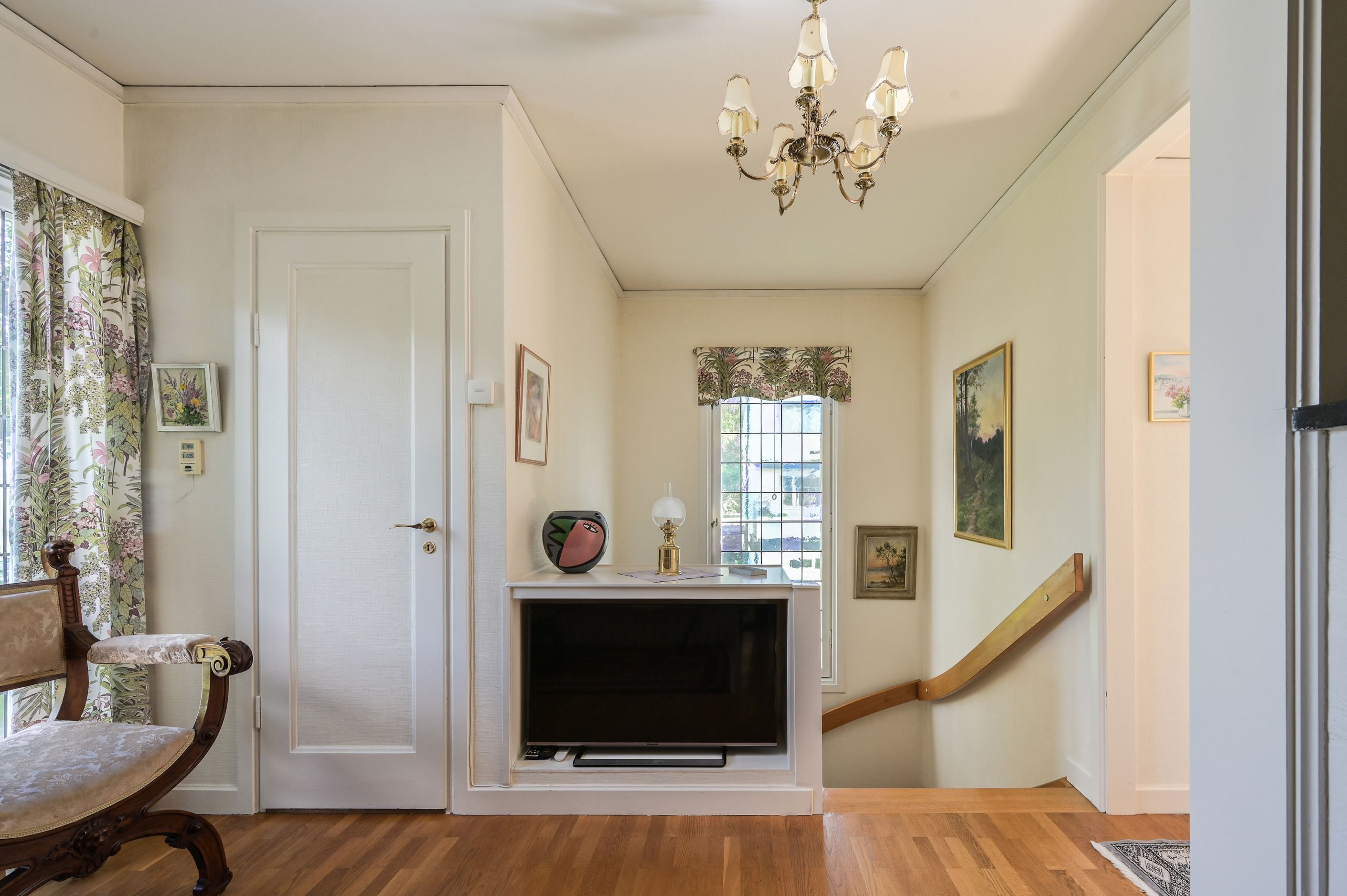 Välhållen och trivsam villa med många vackra detaljer från byggåret såsom generös takhöjd, blyinfattade fönster, två eldstäder och vackra stavlagda trägolv.