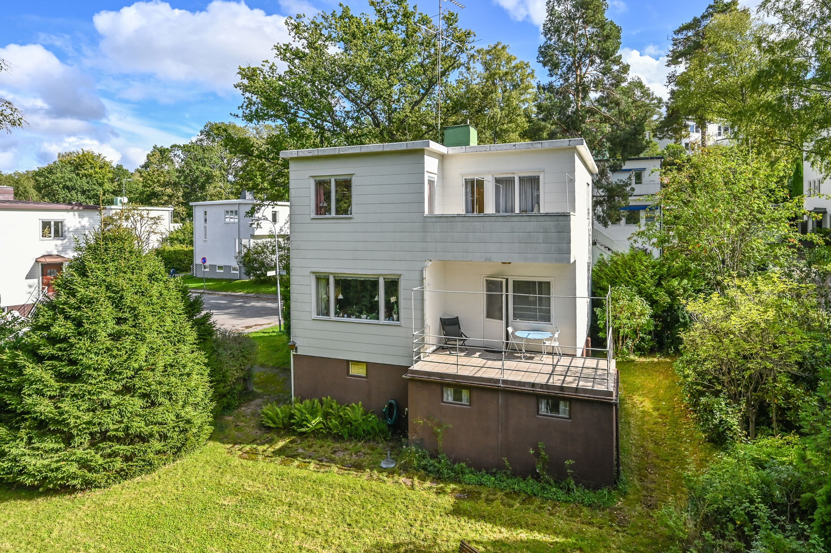 Stilren funkisvilla med hörnläge i idylliska Södra Ängby – Trädgårdsstaden när den är som bäst.