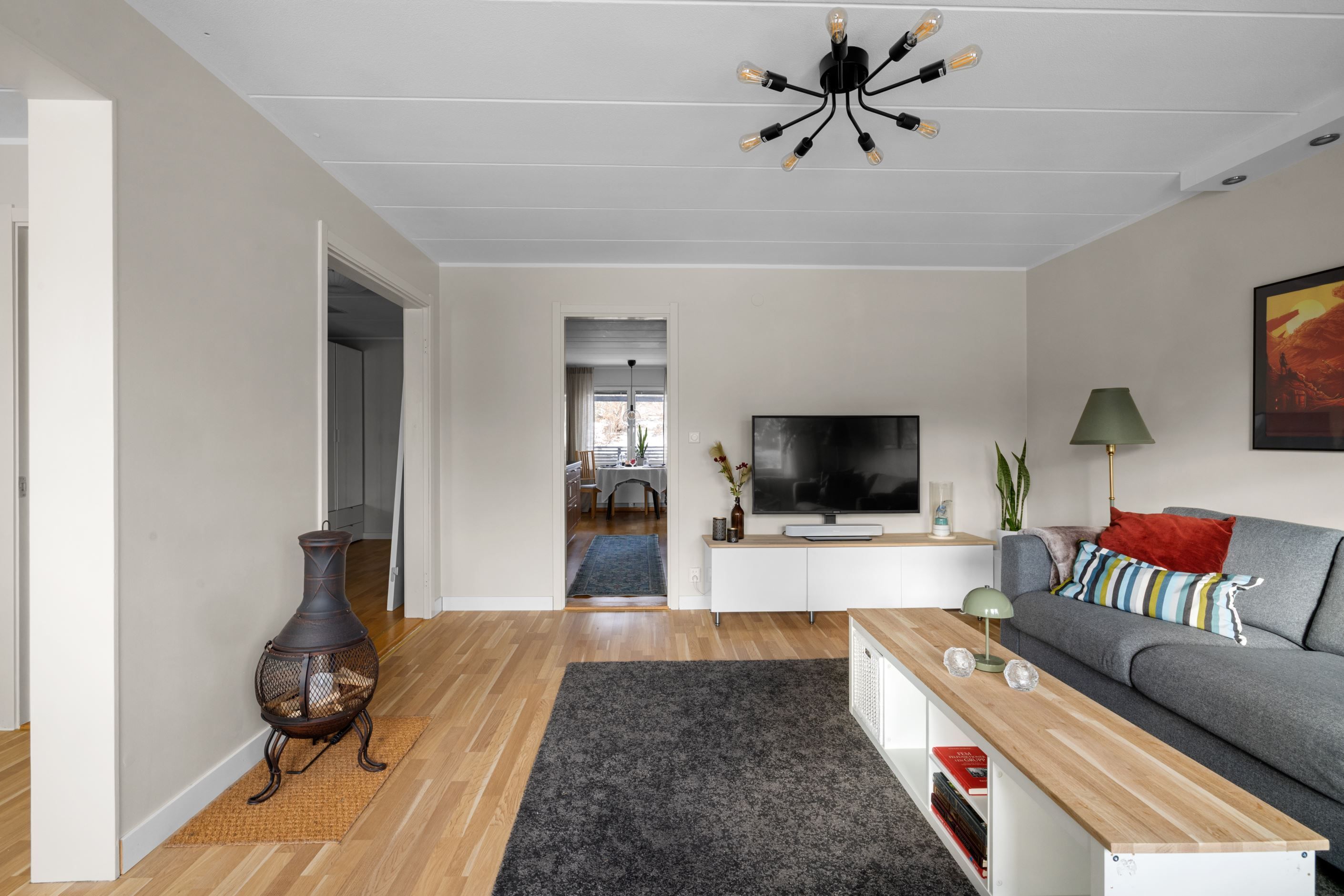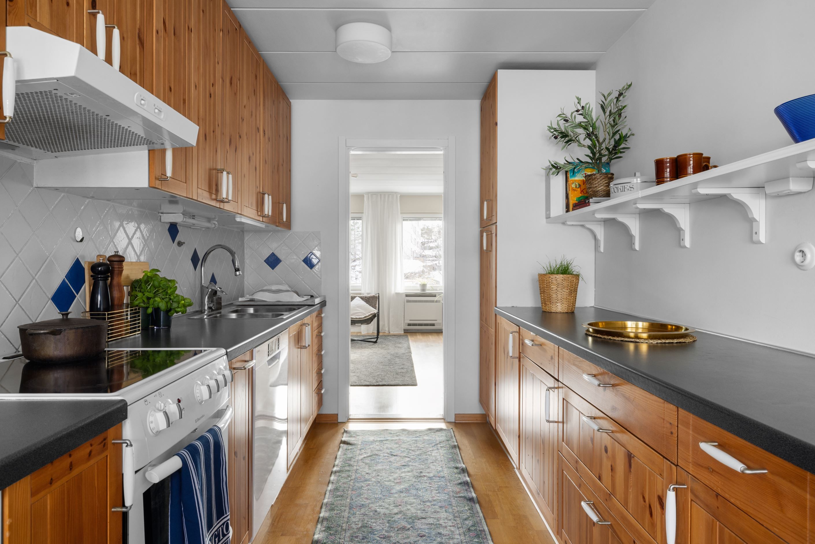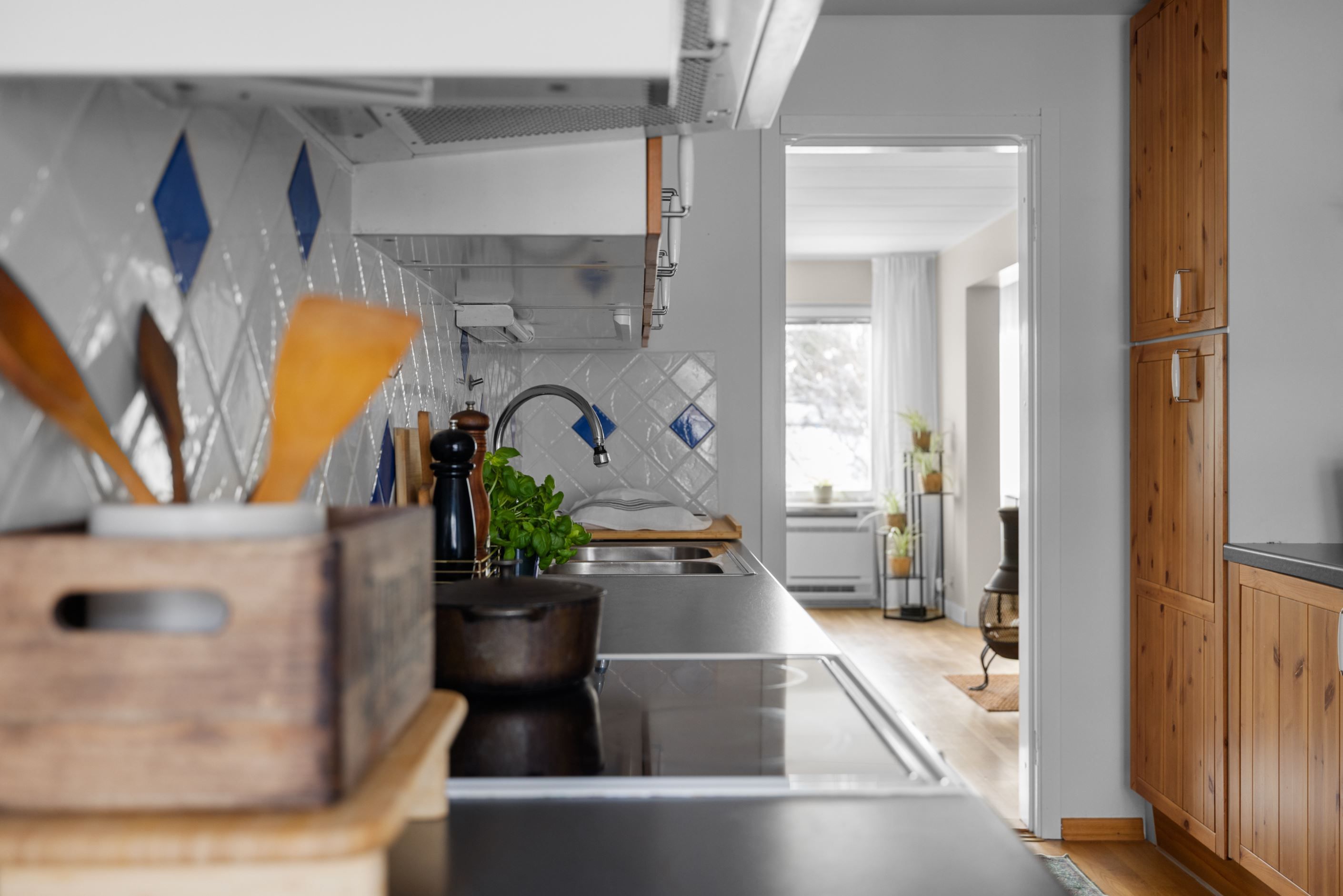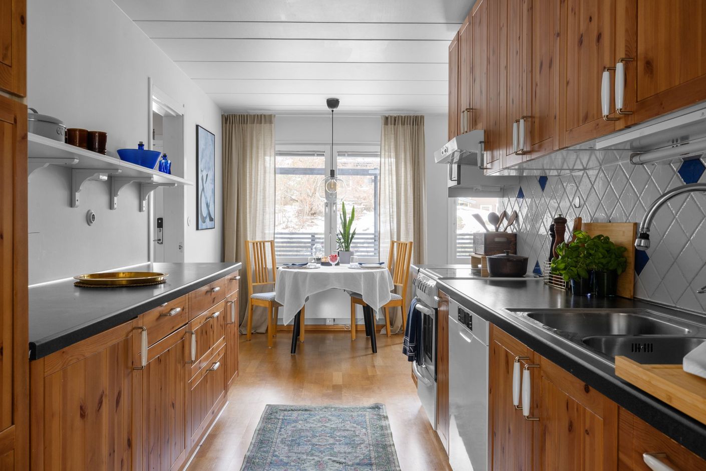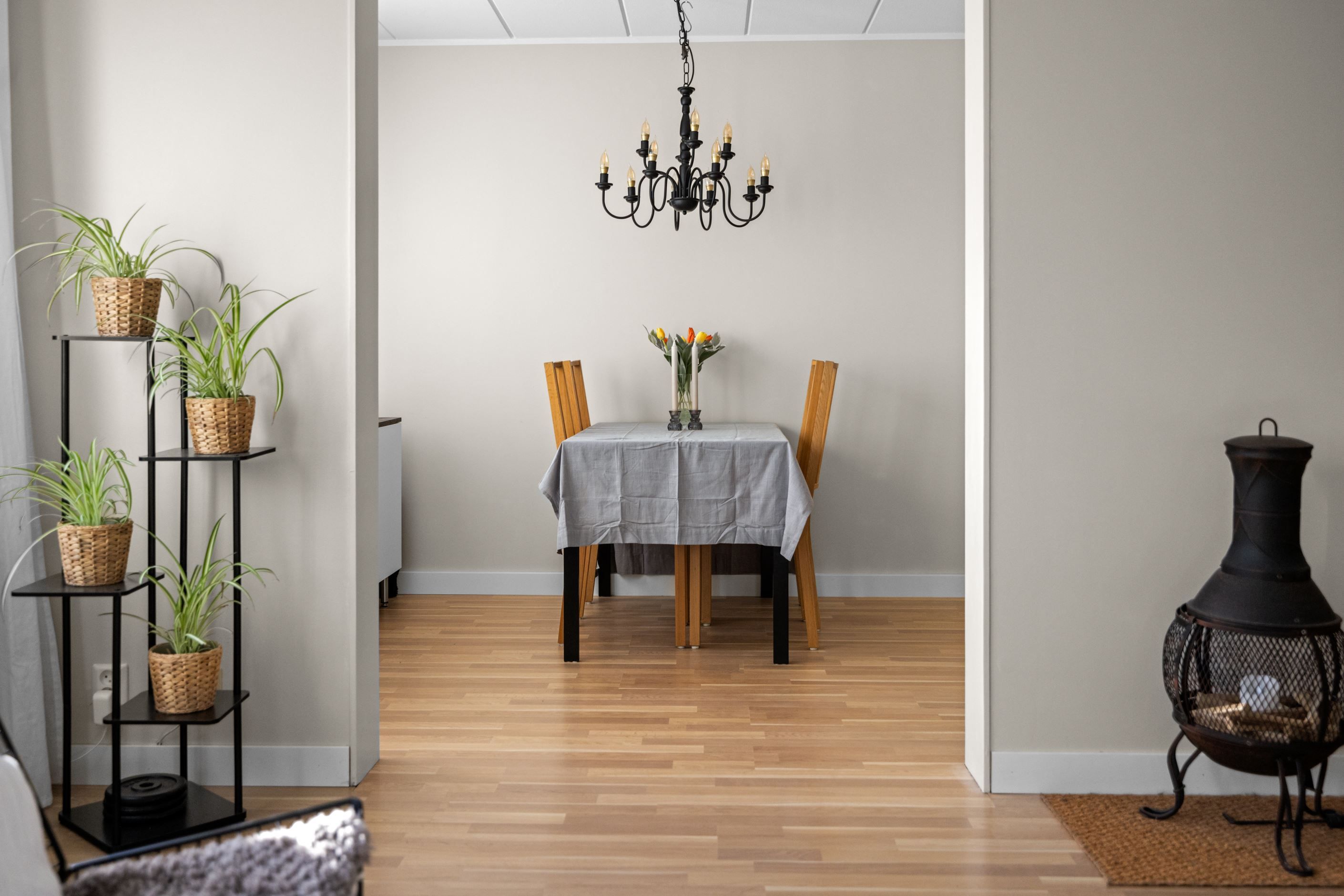 När ni kliver in möts ni av en välkomnande hall med generöst utrymme för förvaring, ett praktiskt skafferi och en WC. Vidare erbjuds ett dubbelsidigt kök i anslutning till vardagsrummet, vilket skapar en trevlig plats för matlagning och samvaro. Intill köket finner ni även tvättstugan. Via köket kan man gå ut till altanen på framsidan. Huset har rikligt med ljusinsläpp via dem väl tilltagna fönsterpartierna och ett högt och fritt läge som tillåter ljuset flöda fritt in i bostaden.