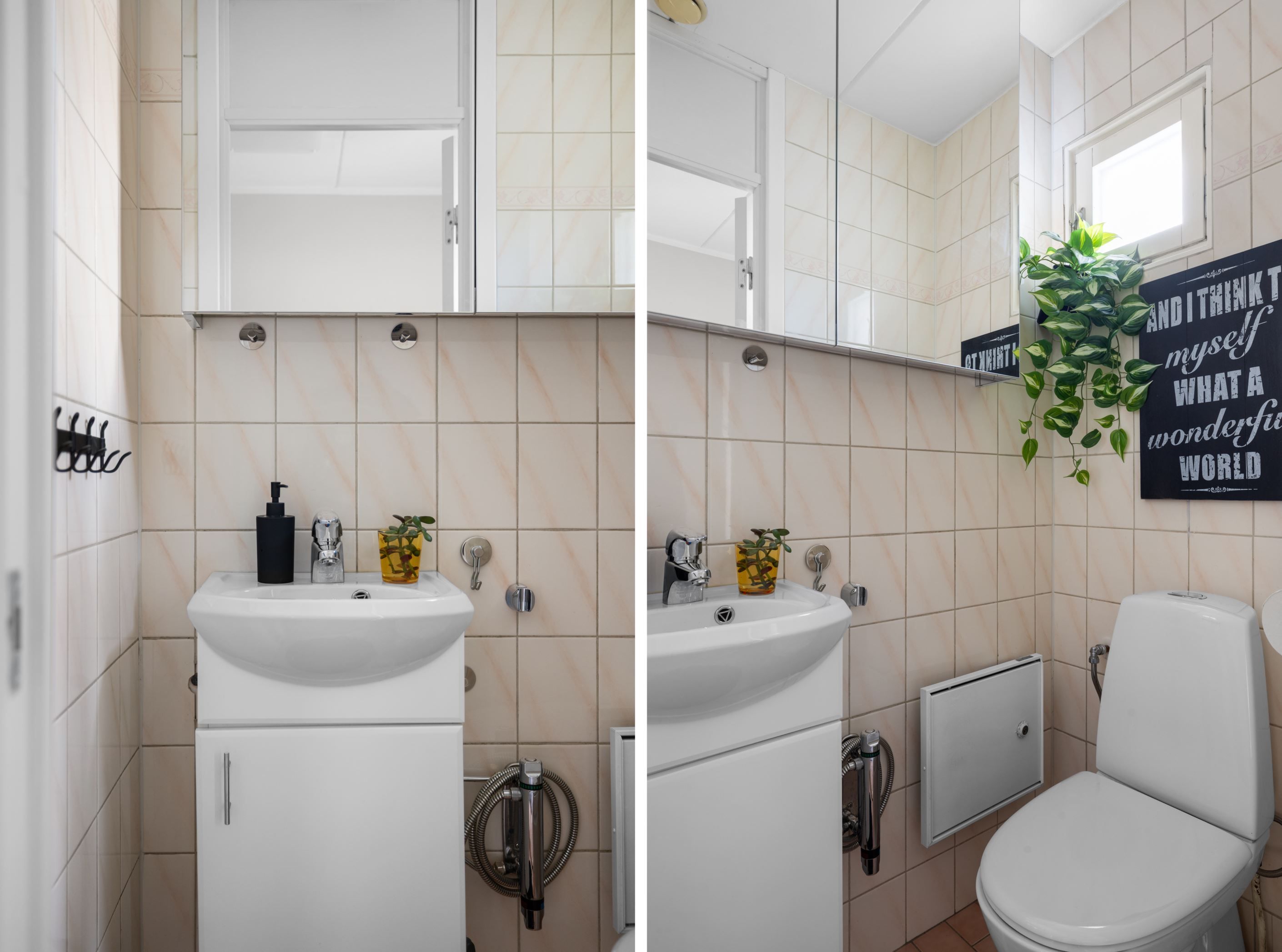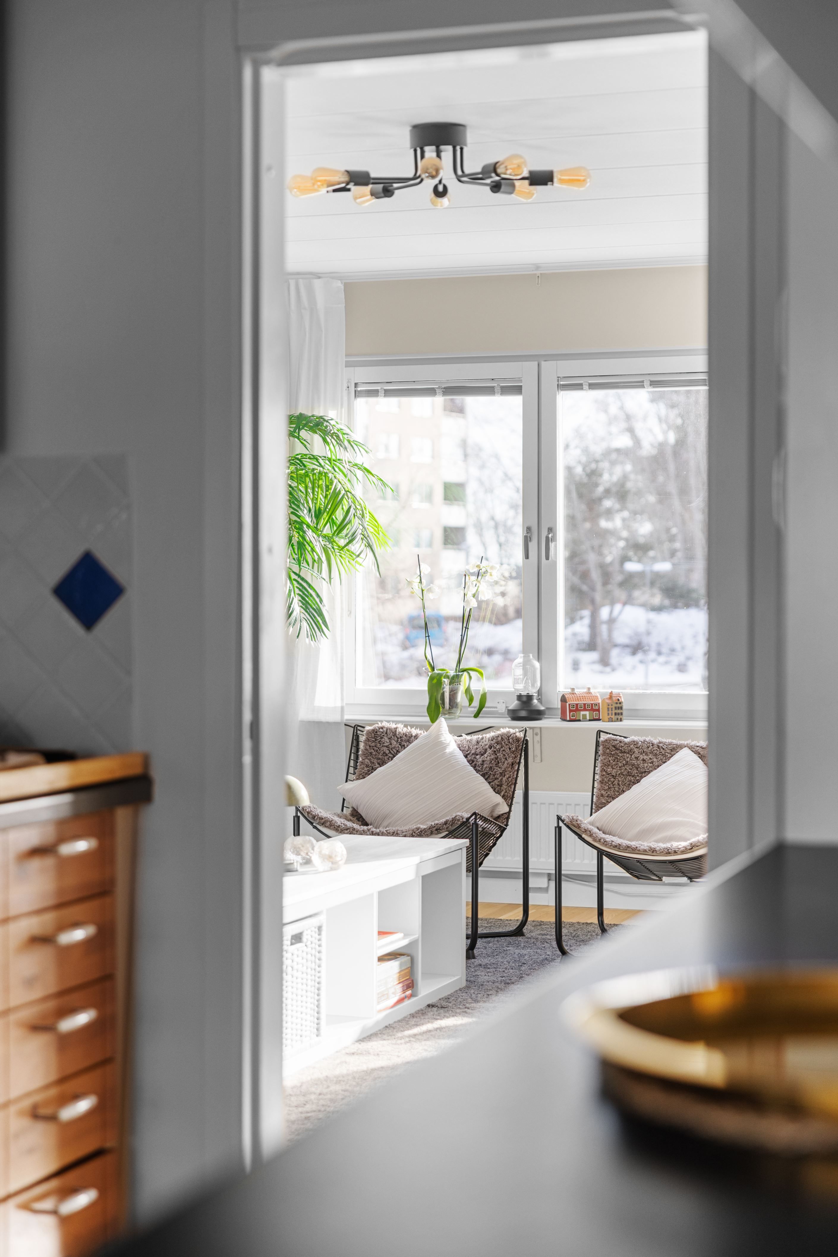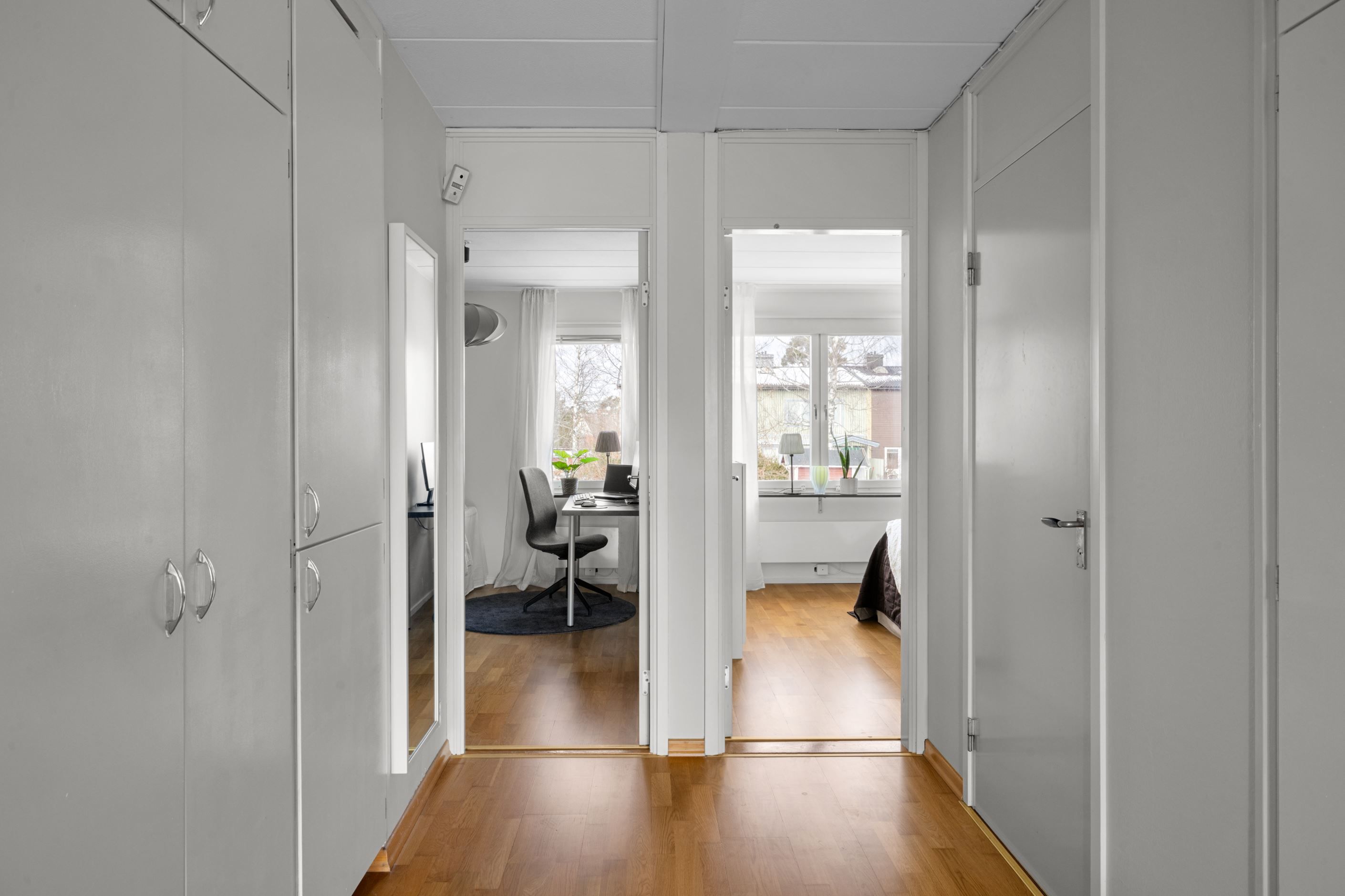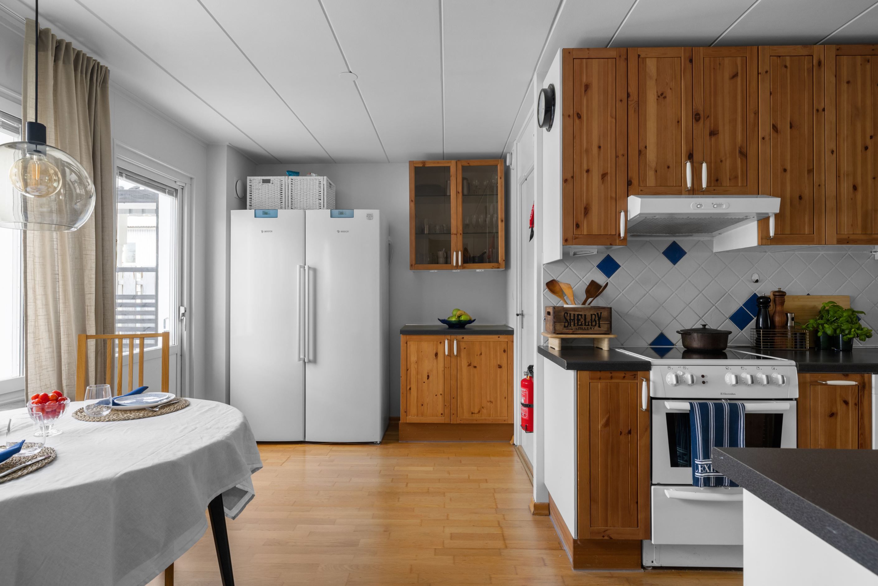 När ni kliver in möts ni av en välkomnande hall med generöst utrymme för förvaring, ett praktiskt skafferi och en WC. Vidare erbjuds ett dubbelsidigt kök i anslutning till vardagsrummet, vilket skapar en trevlig plats för matlagning och samvaro. Intill köket finner ni även tvättstugan. Via köket kan man gå ut till altanen på framsidan. Huset har rikligt med ljusinsläpp via dem väl tilltagna fönsterpartierna och ett högt och fritt läge som tillåter ljuset flöda fritt in i bostaden.