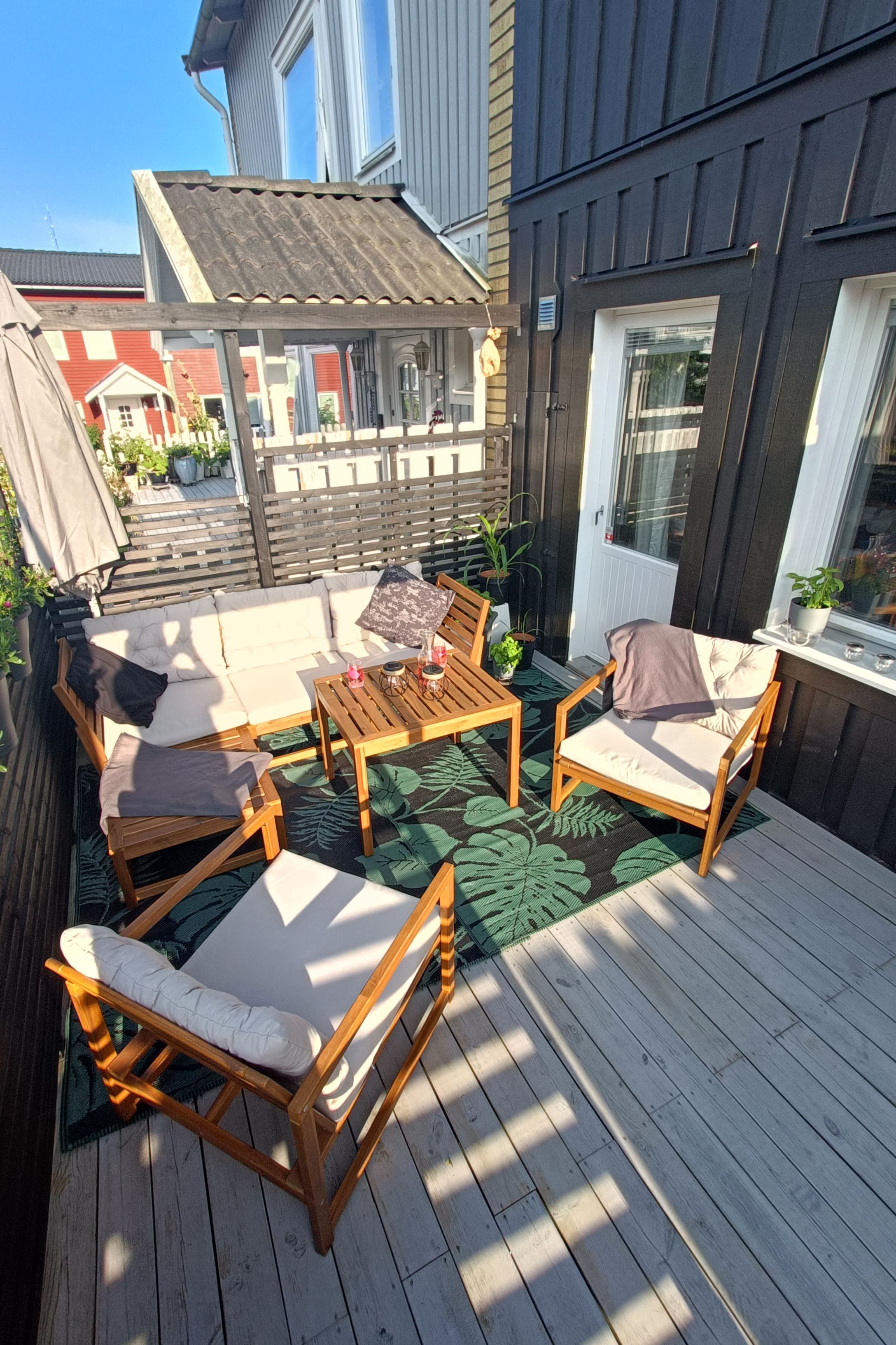 På nedre plan erbjuds ett stort allrum och mängder med förvaringsmöjligheter. Från den nedre hallen har ni även direkt tillgång till den härliga uteplatsen med stort trädäck i direkt söderläge som övergår till en härlig tomt med både frukt och bär. Under äppelträdet finns också ett enklare trädäck som erbjuder skön skugga under varma sommardagar. Det är nedervåningen som ni har möjlighet att göra om till en uthyrningsdel då det finns en separat ingång från uteplatsen.
