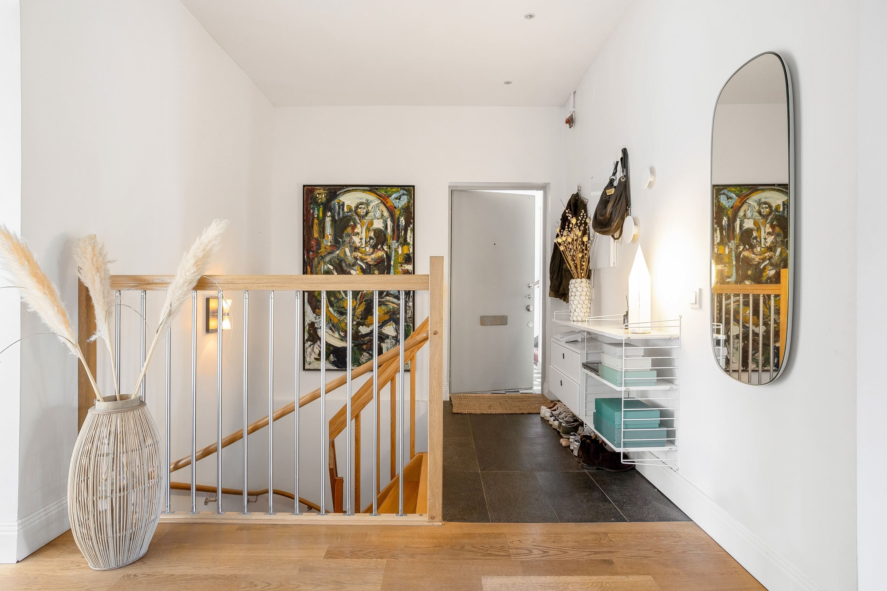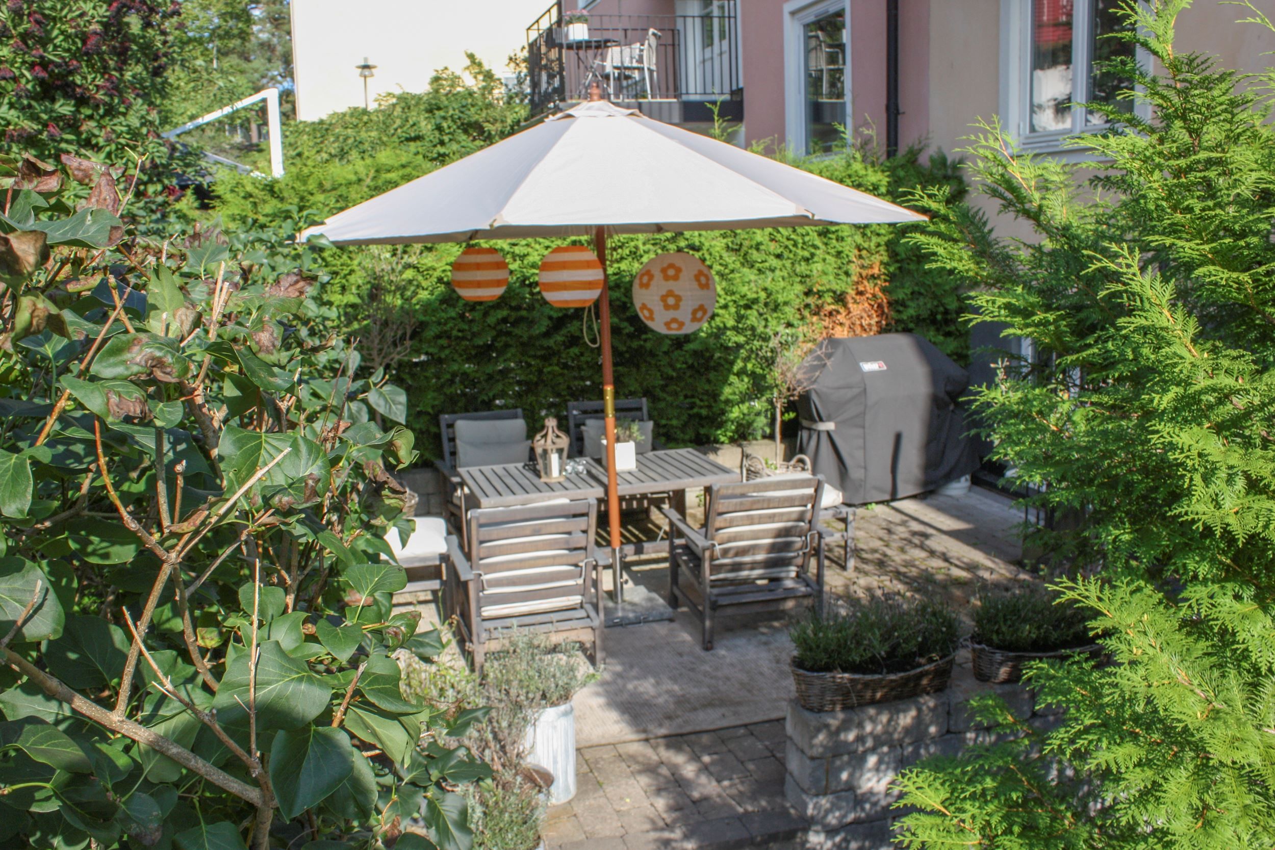 Stilfullt boende idylliskt beläget på vackra Höglandstorget i Bromma. Klassisk 20-talscharm möter moderna smakfulla lösningar i en totalrenoverad etagelägenhet med lite "townhousekänsla". Utgång i två plan till privat stensatt uteplats i SV-läge, med andra ord, sol från tidig eftermiddag till kvällen. Ett otroligt mervärde - en oas i skyddat soldränkt läge som skapar livskvalitet med sin privat atmosfär och används flitigt vår/sommar/höst. Vy över välhållen trädgård som föreningen gemensamt disponerar ger det bästa av två världar. Villans fördelar i soliga rättvända uteplatser med grill och solsängar samt vy över välskött trädgård, men utan alla tråkiga måsten som ofta följer med villaägande. Fastigheten på Höglandstorget 9 är stilfull, gedigen och välbelägen. Huset har genomgått en totalrenovering. Lägenheterna har fått nya planlösningar för att skapa ett förstklassigt boende med exklusiva materialval för att uppfylla dagens högt ställda krav. I föreningen finns alltså totalt fem exklusiva och välplanerade lägenheter.