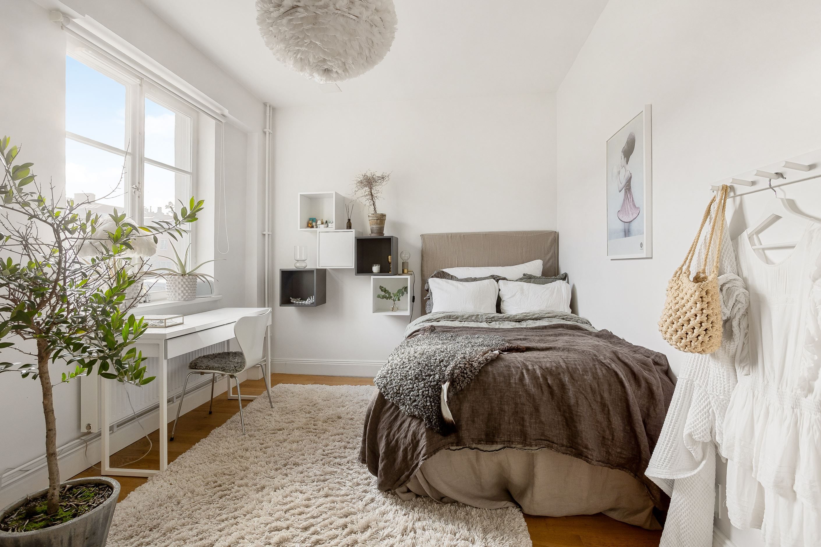 SOVRUM 3 - Med fönster mot uteplatsen. Ca 10,7 kvm Oljat ekparkettgolv. Garderob . Vitmålade väggar.