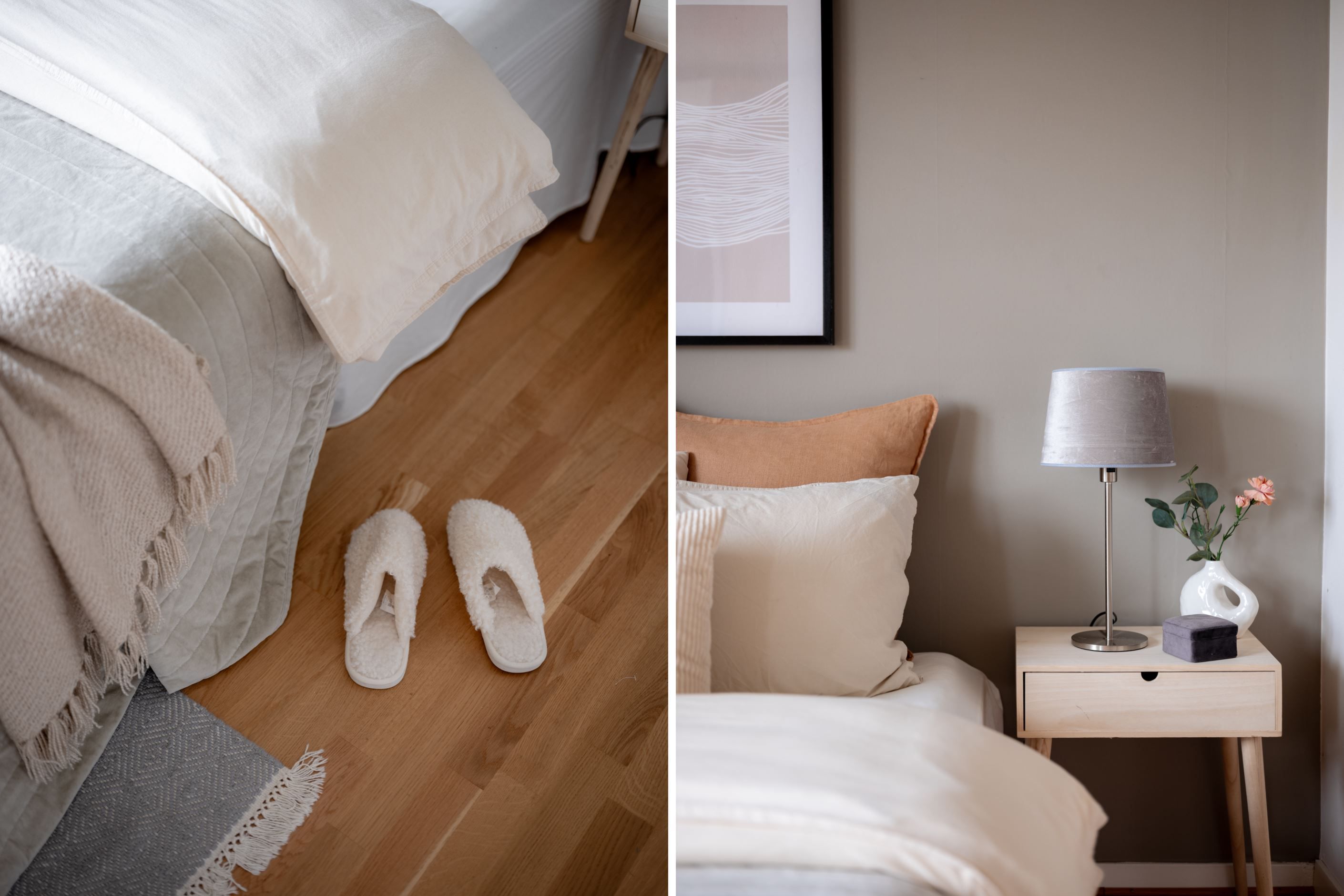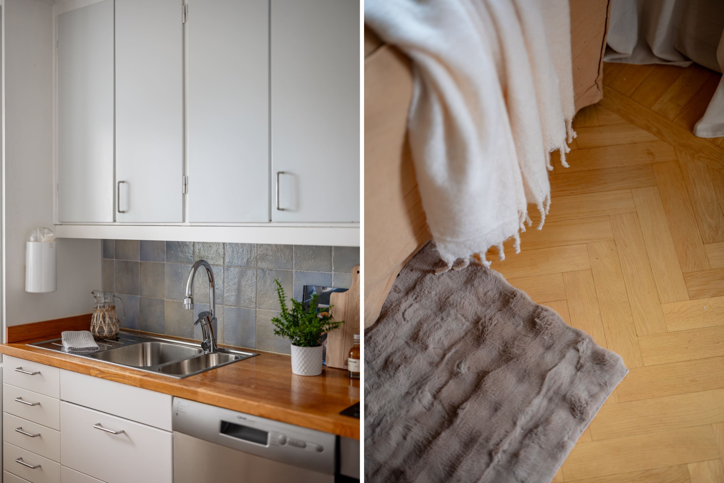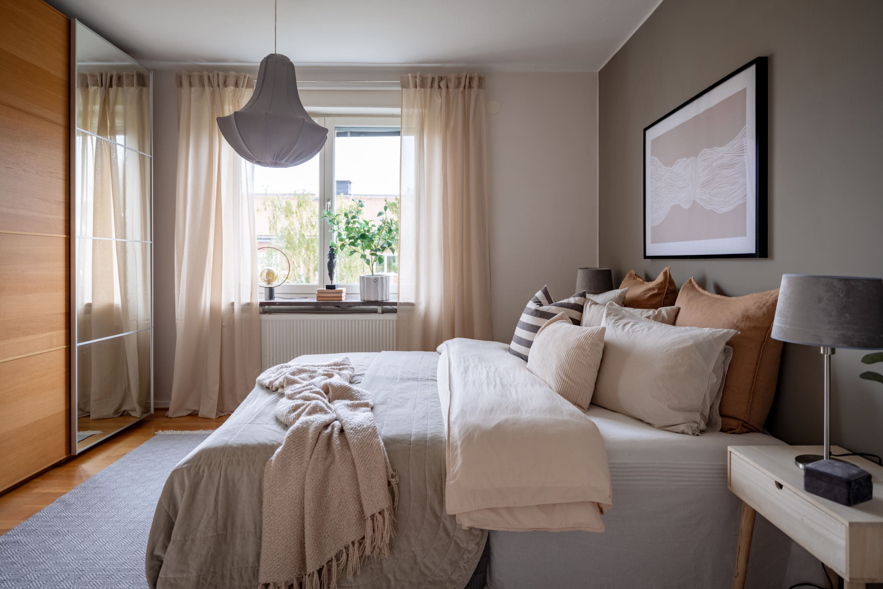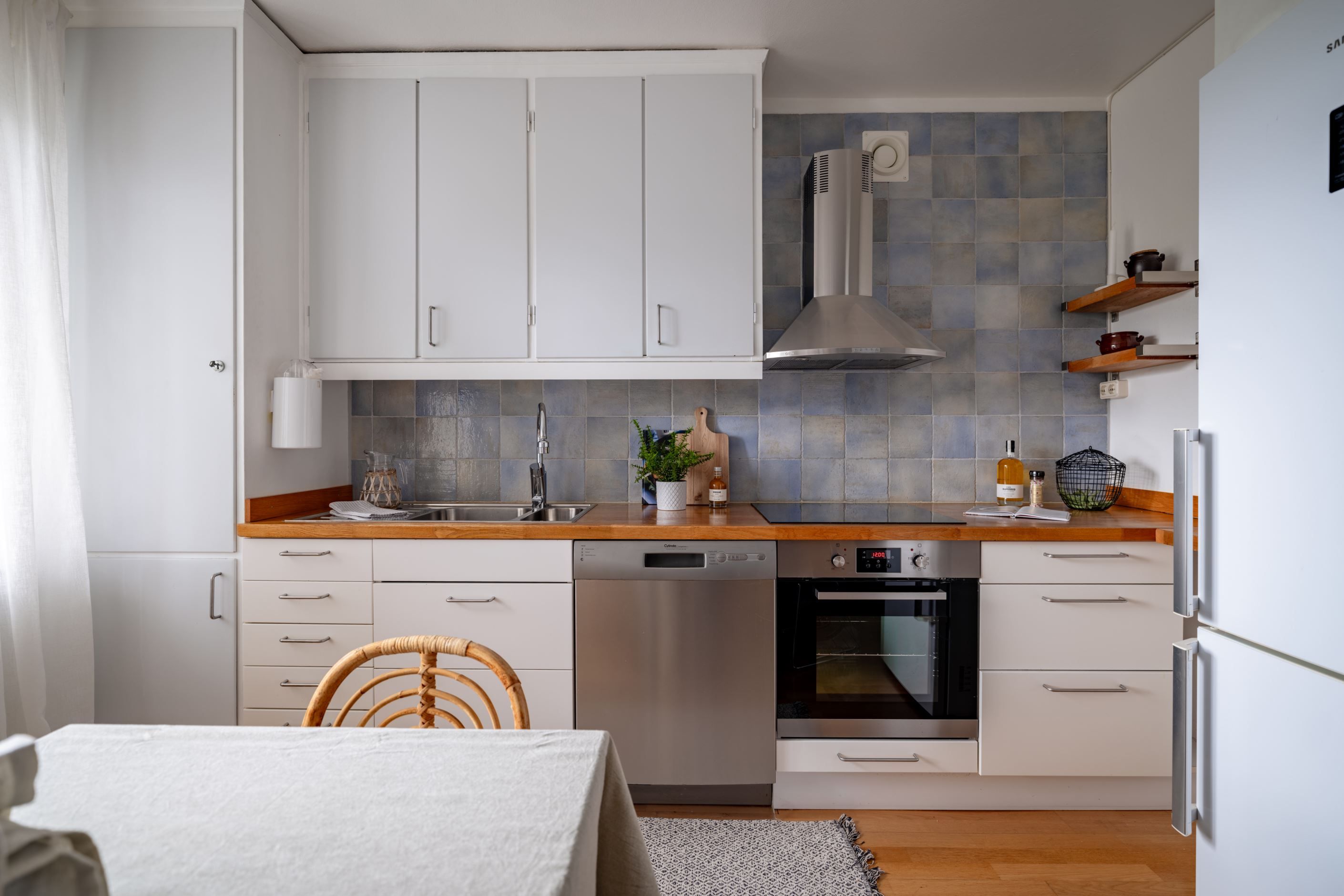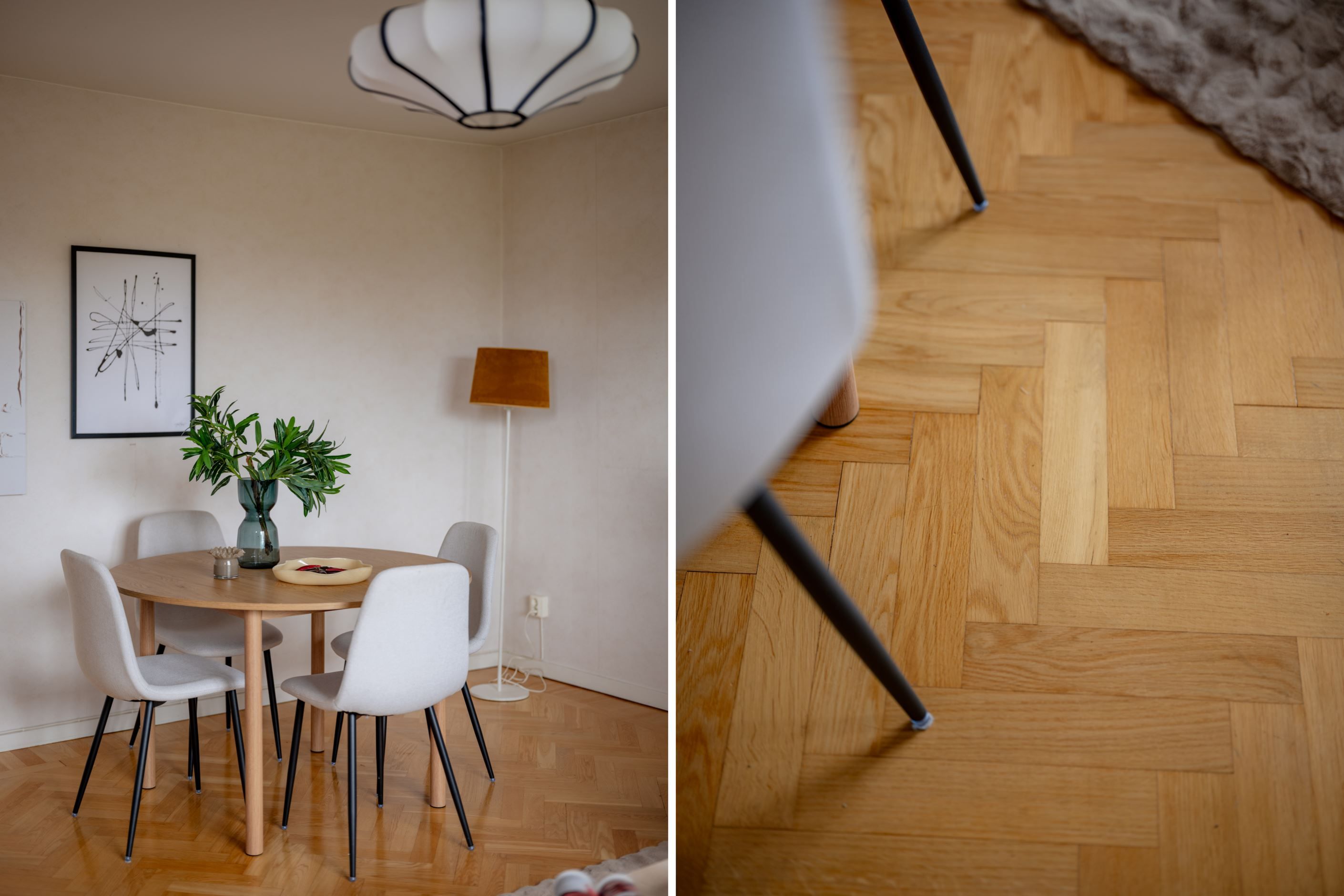 Lägenhetens planlösning är både genomtänkt och flexibel. Det stora vardagsrummet ger plats för både soffgrupp och matsalsdel, medan köket har utrymme för ett matbord vid fönstret. För den som önskar går väggen mellan kök och vardagsrum att ta ner och skapa en modern, social planlösning. Två rymliga sovrum rymmer enkelt dubbelsäng och garderober, och i den inre hallen finns utrymme för läshörnan eller en praktisk arbetshörna. Lägenheten har dessutom dubbla ingångar, vilket möjliggör en separat uthyrningsdel – en extra fördel för dig som vill kombinera ett bekvämt boende med smart ekonomi.