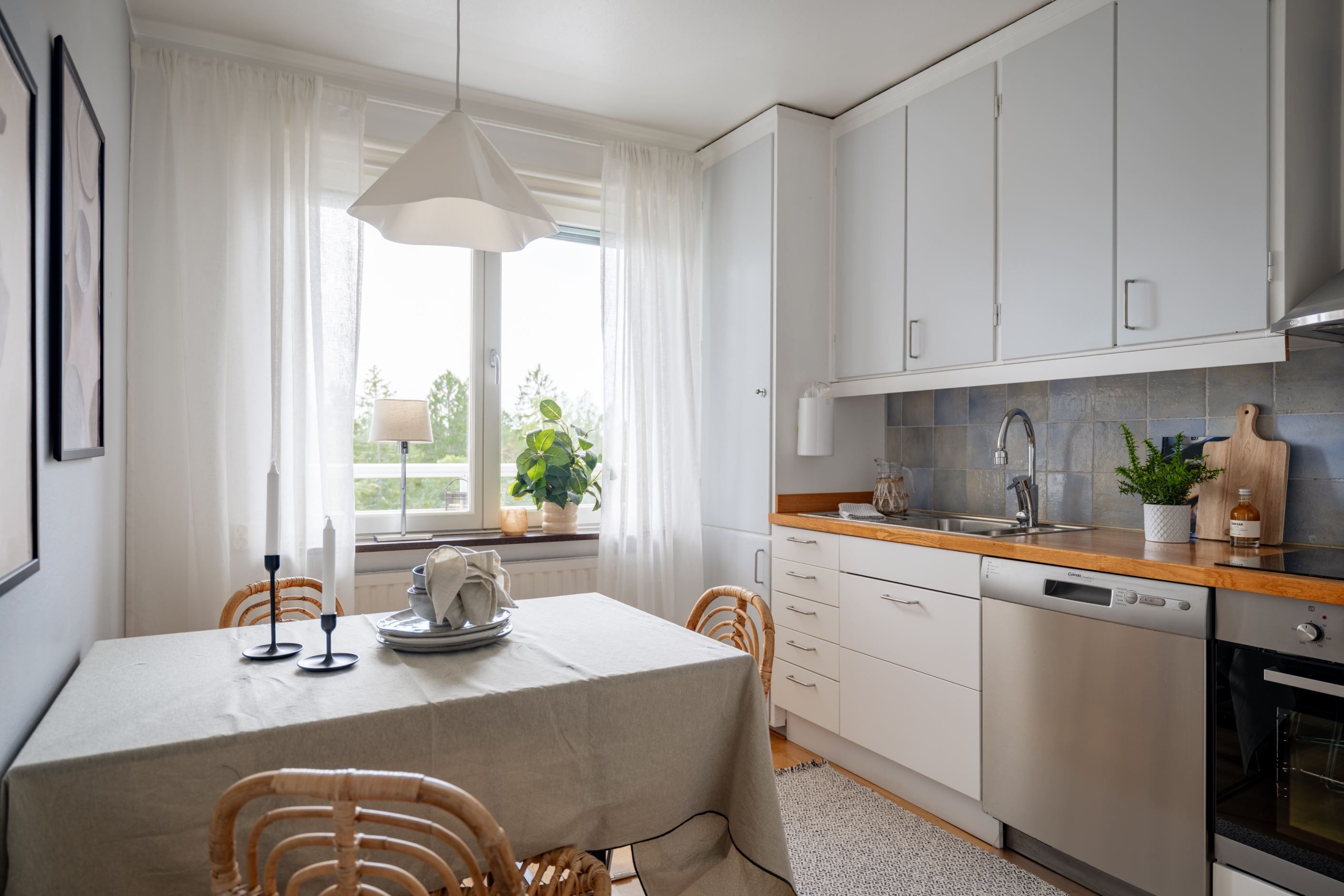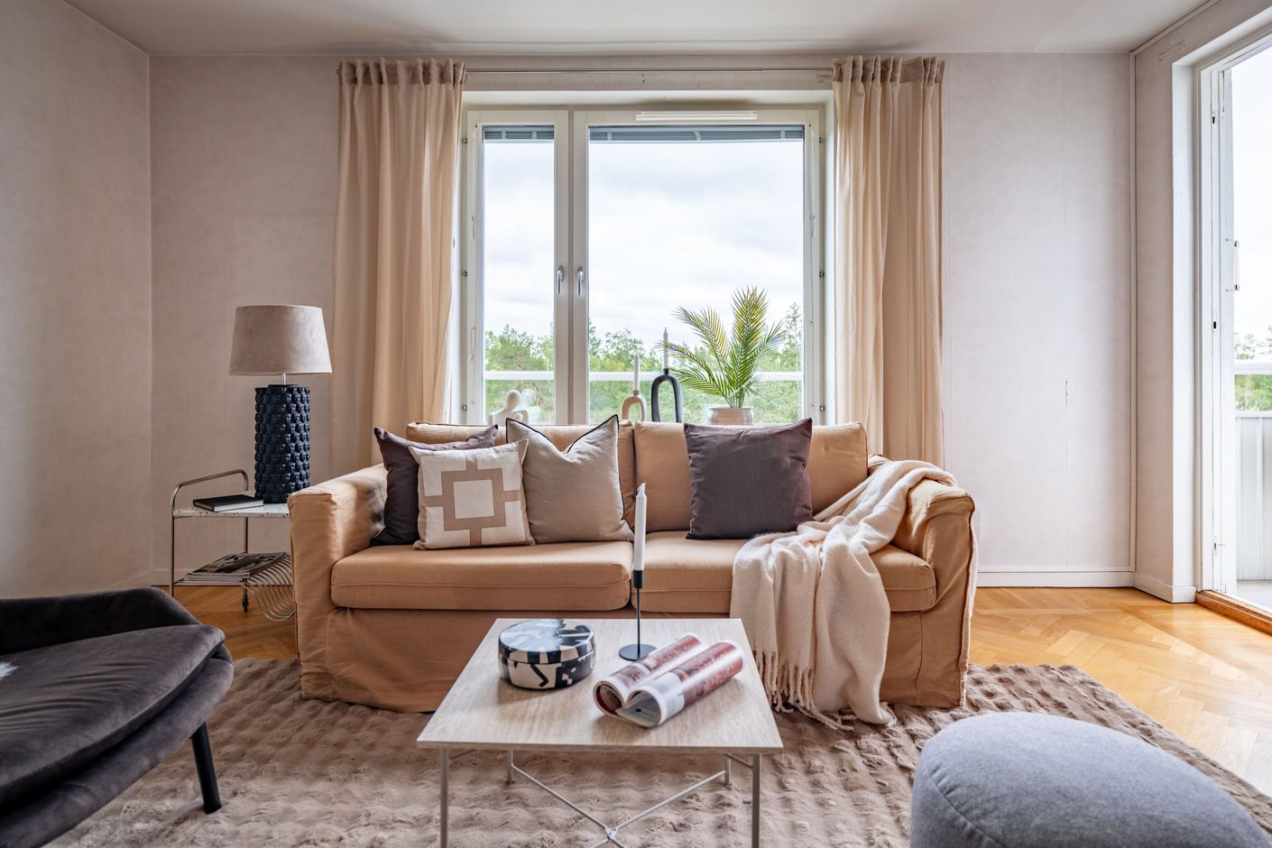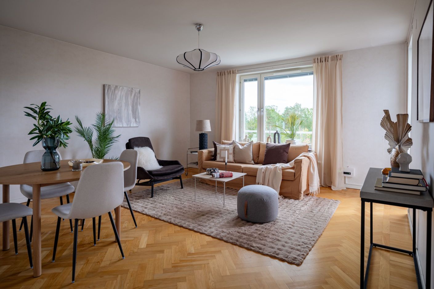 Högst upp i huset på attraktiva Näset väntar denna ljusa och välplanerade hörnlägenhet om tre rum och kök – ett hem som erbjuder både rymd, flexibilitet och ett privat läge utan insyn. Här möts du av generösa ytor, klassiska detaljer som fiskbensparkett och en solig balkong i rakt söderläge, perfekt för långa stunder utomhus med utsikt över de grönskande omgivningarna.
