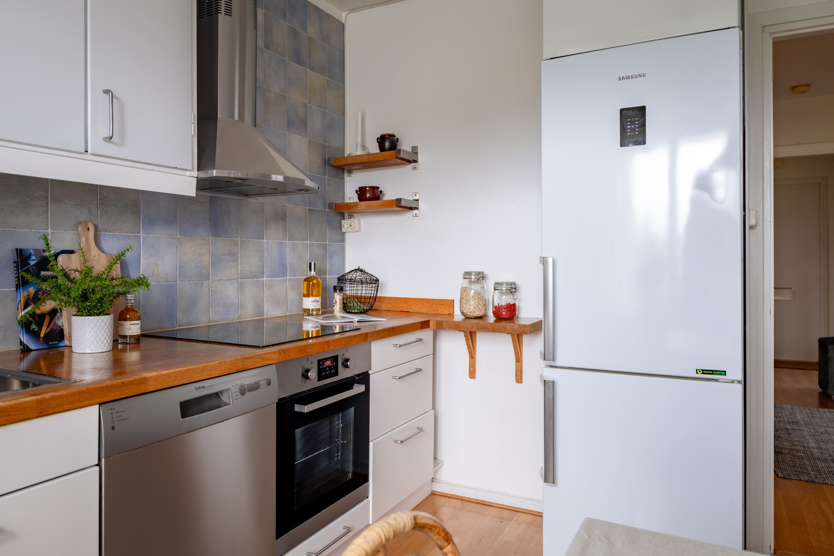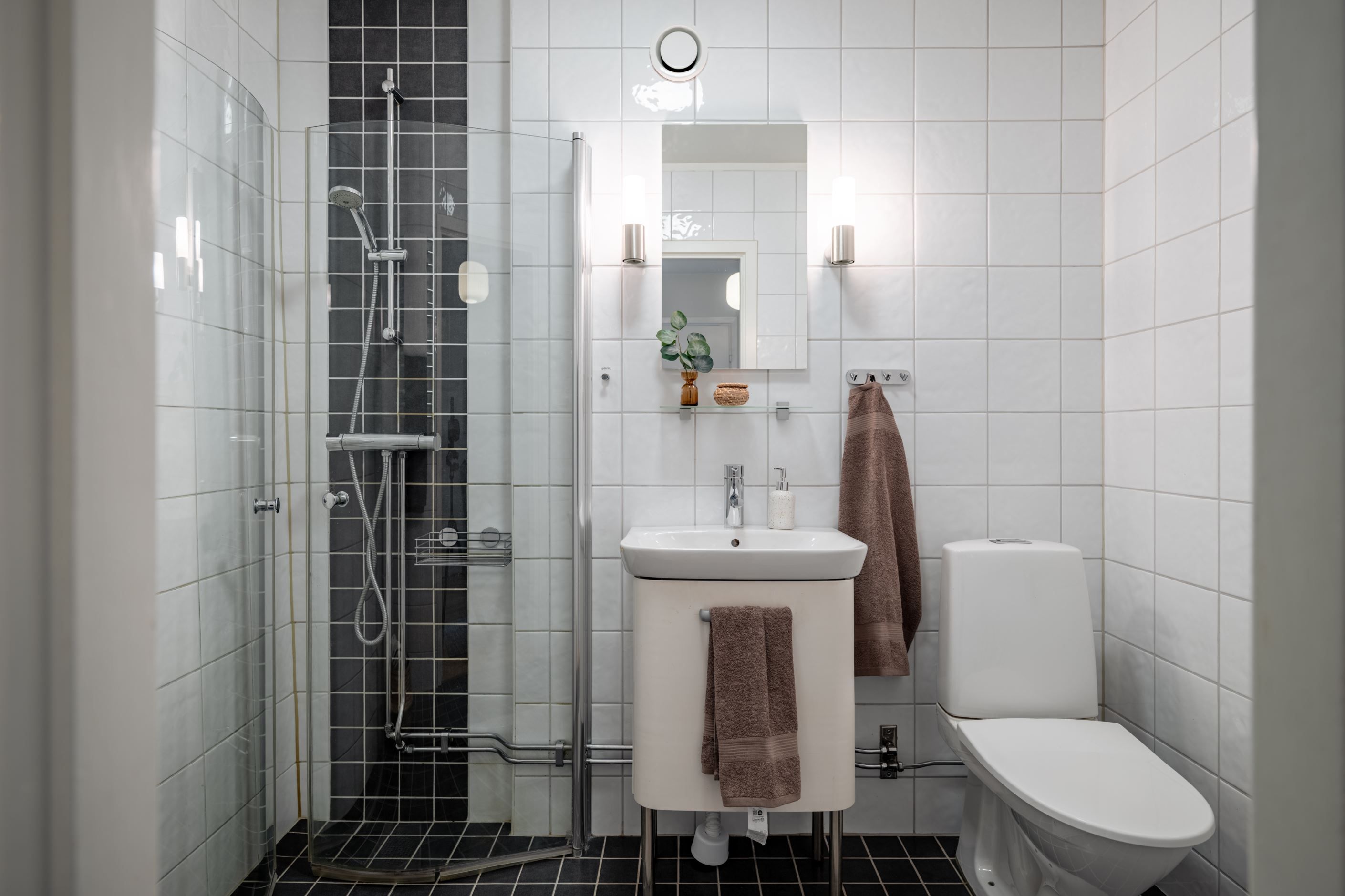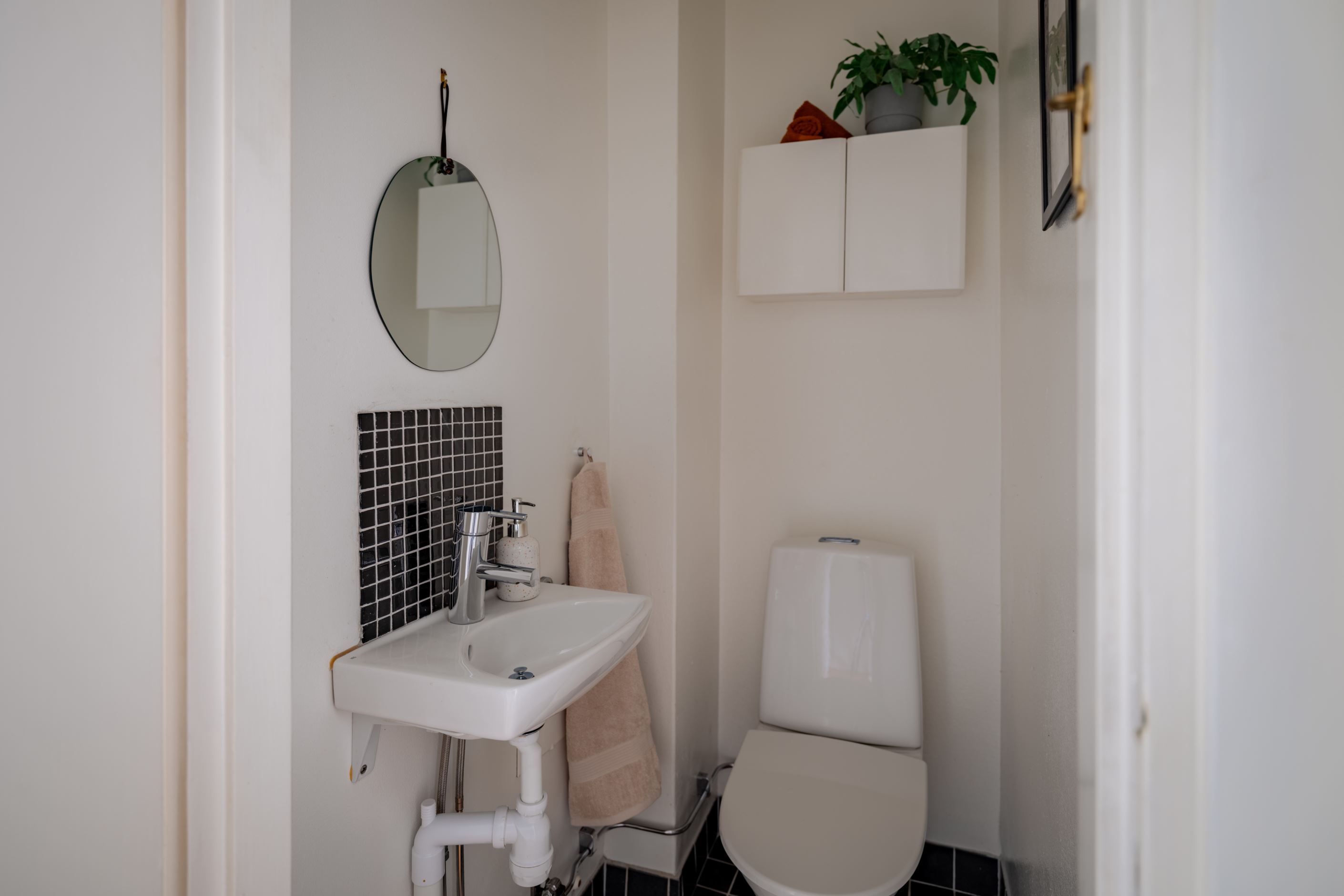 Det helkaklade badrummet är stambytt och kompletteras med en gäst-wc i hallen, vilket gör vardagen extra smidig. Förvaringsmöjligheterna är mycket goda med både klädkammare i lägenheten samt att vindsförråd och matkällare disponeras. Föreningen är välskött med mycket god ekonomi och låg belåning samt många genomförda renoveringar. Garage- och parkeringsplatser finns att hyra. Bredband och TV ingår i avgiften, och i huset finns även hiss och tvättstuga.