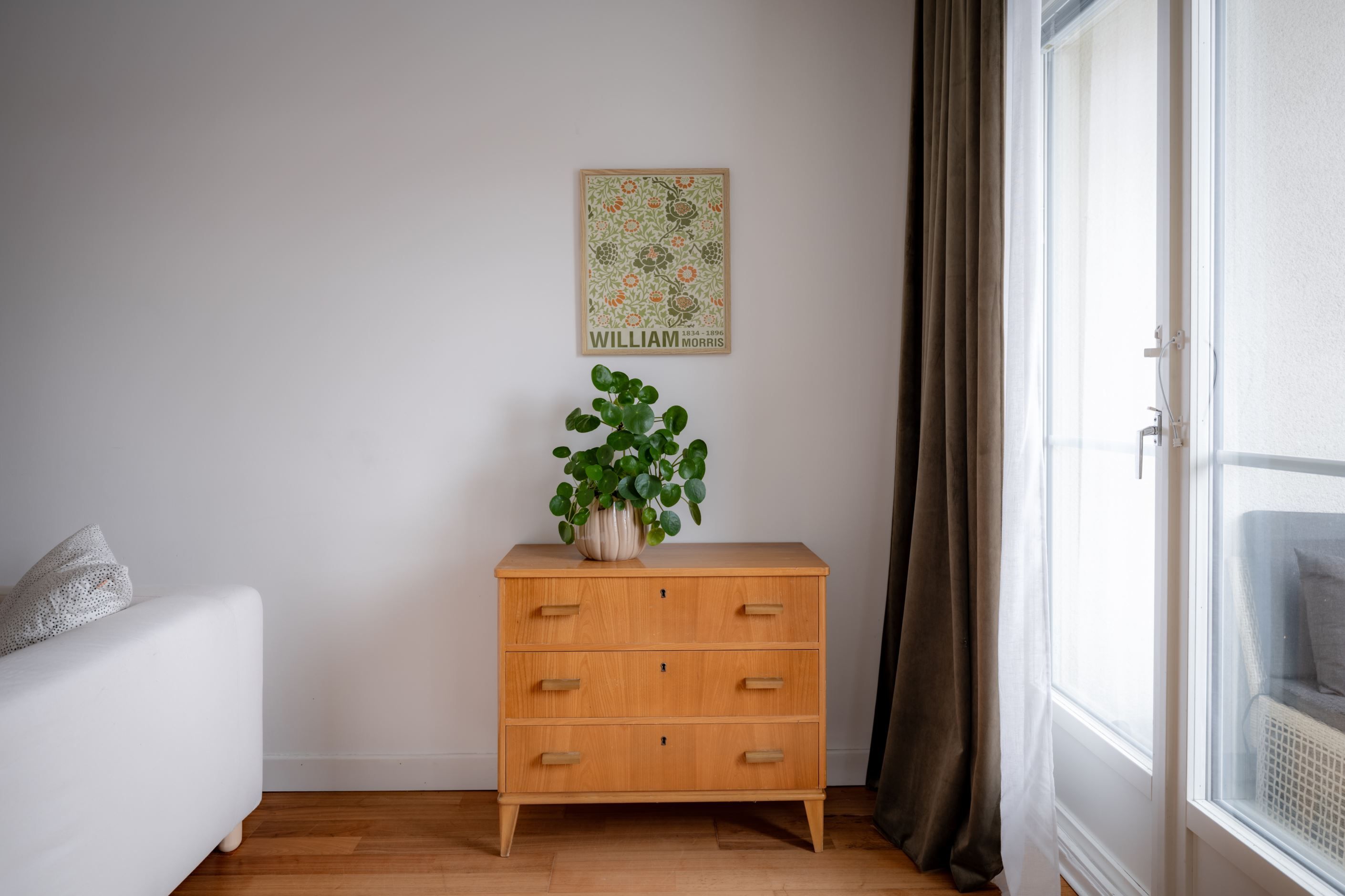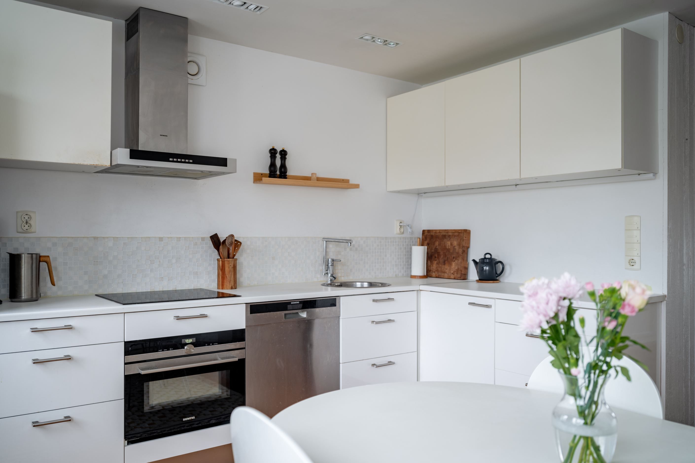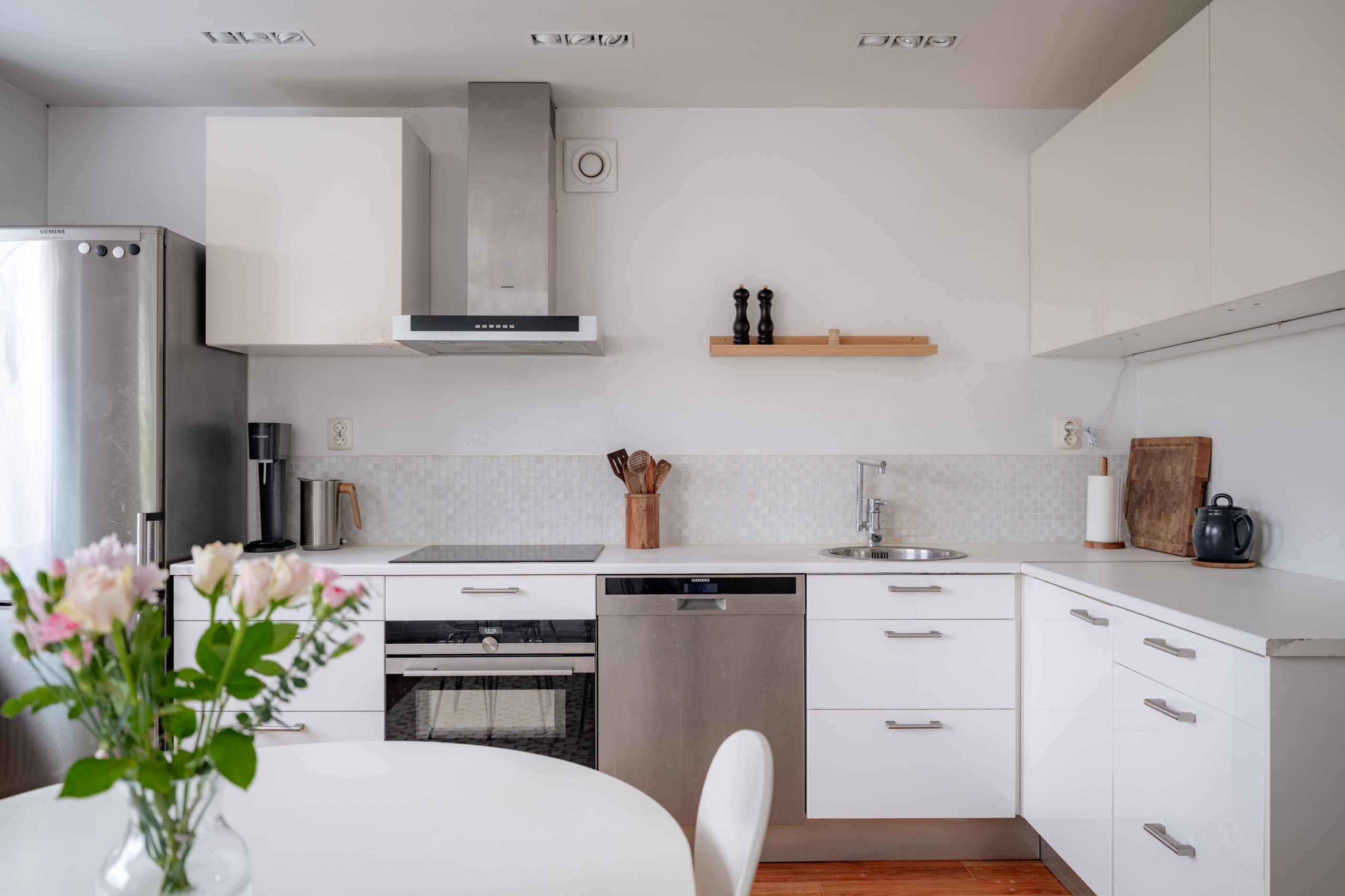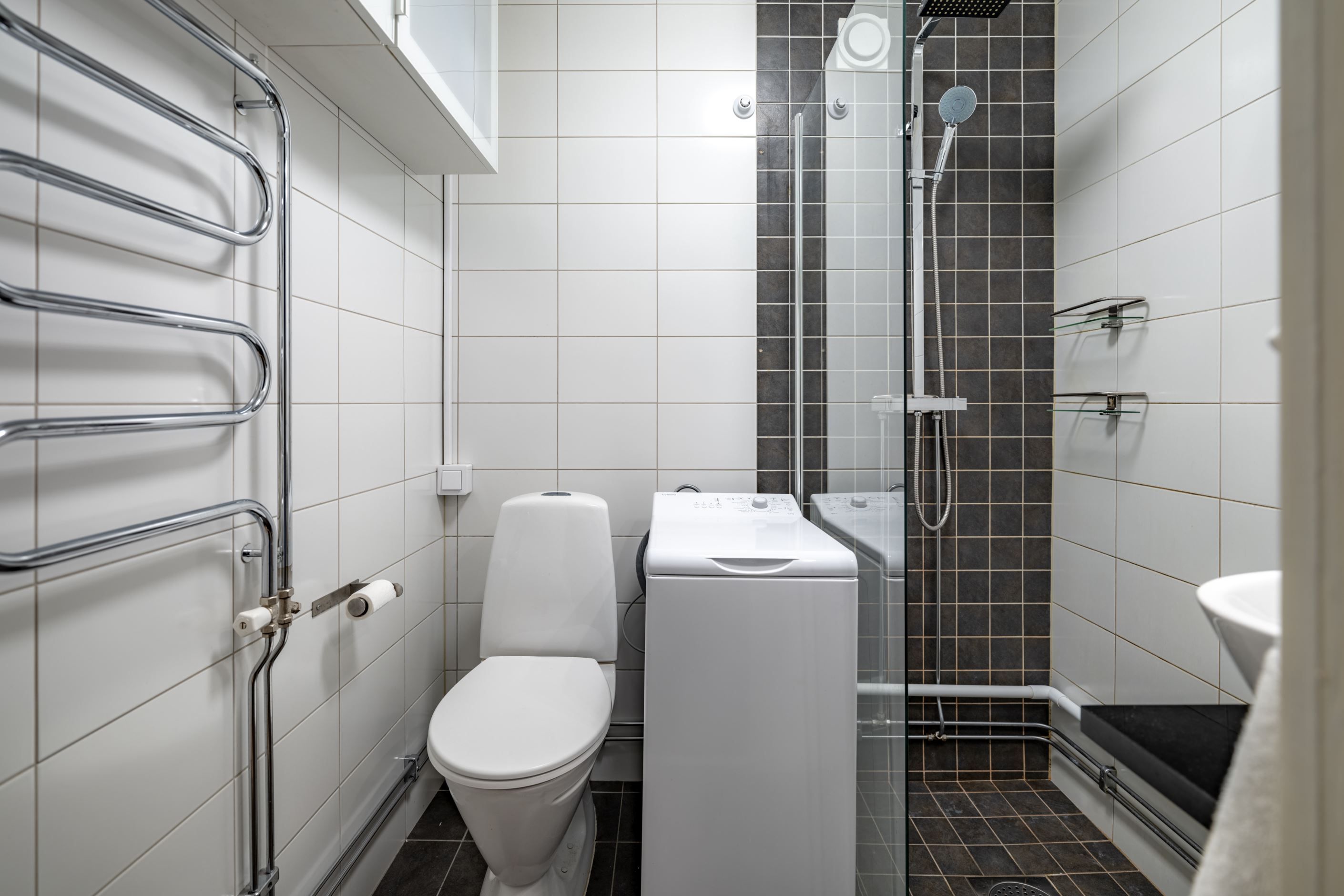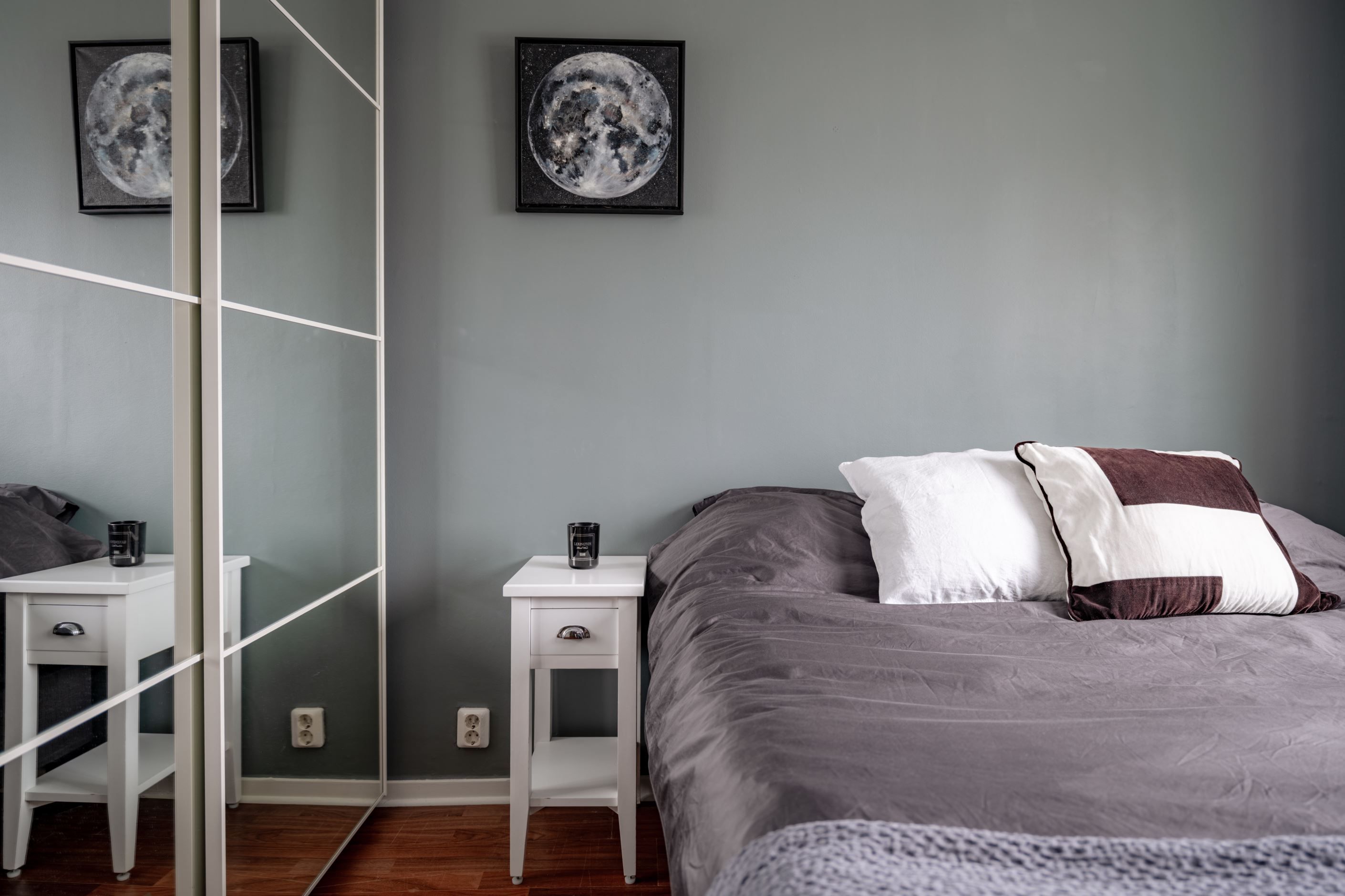 Här finns vidare gott om bra förvaring och ett modernt helkaklat badrum. Med stora fönster, ljusa väggar och bra ljusinsläpp framkommer en ljus känsla genom hela lägenheten, inkluderat sovrummet. Köket går även att dela av för att skapa ett extra sovrum/kontor vid behov.