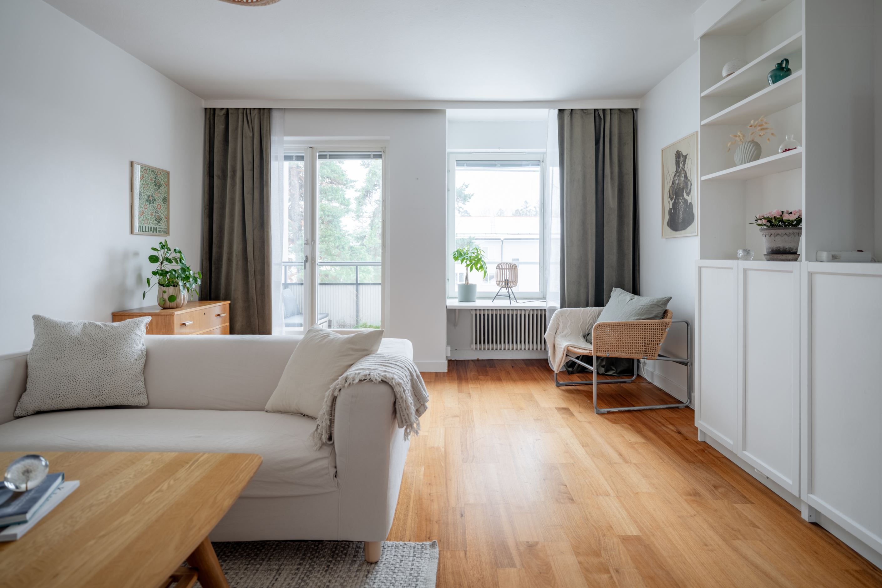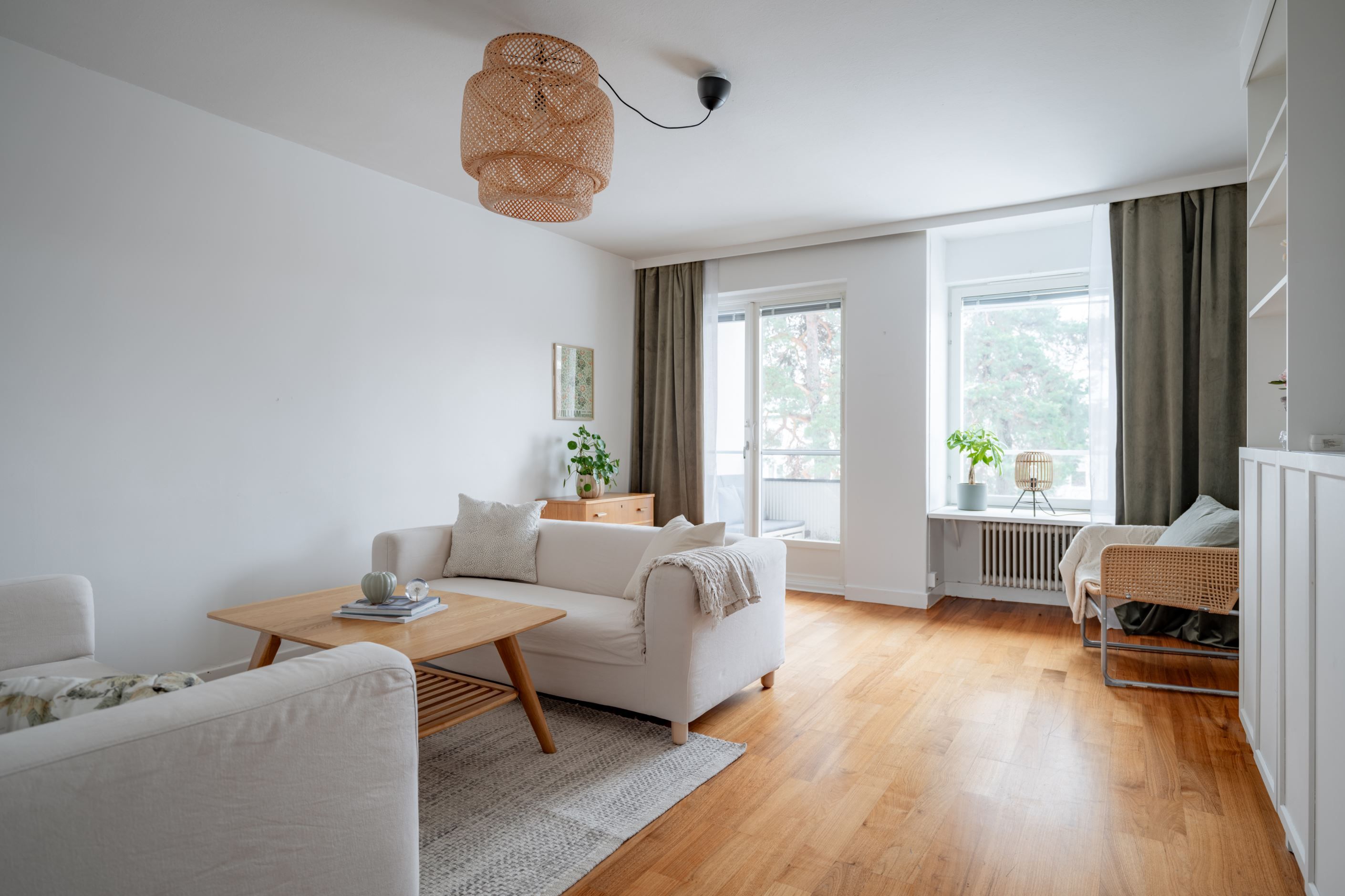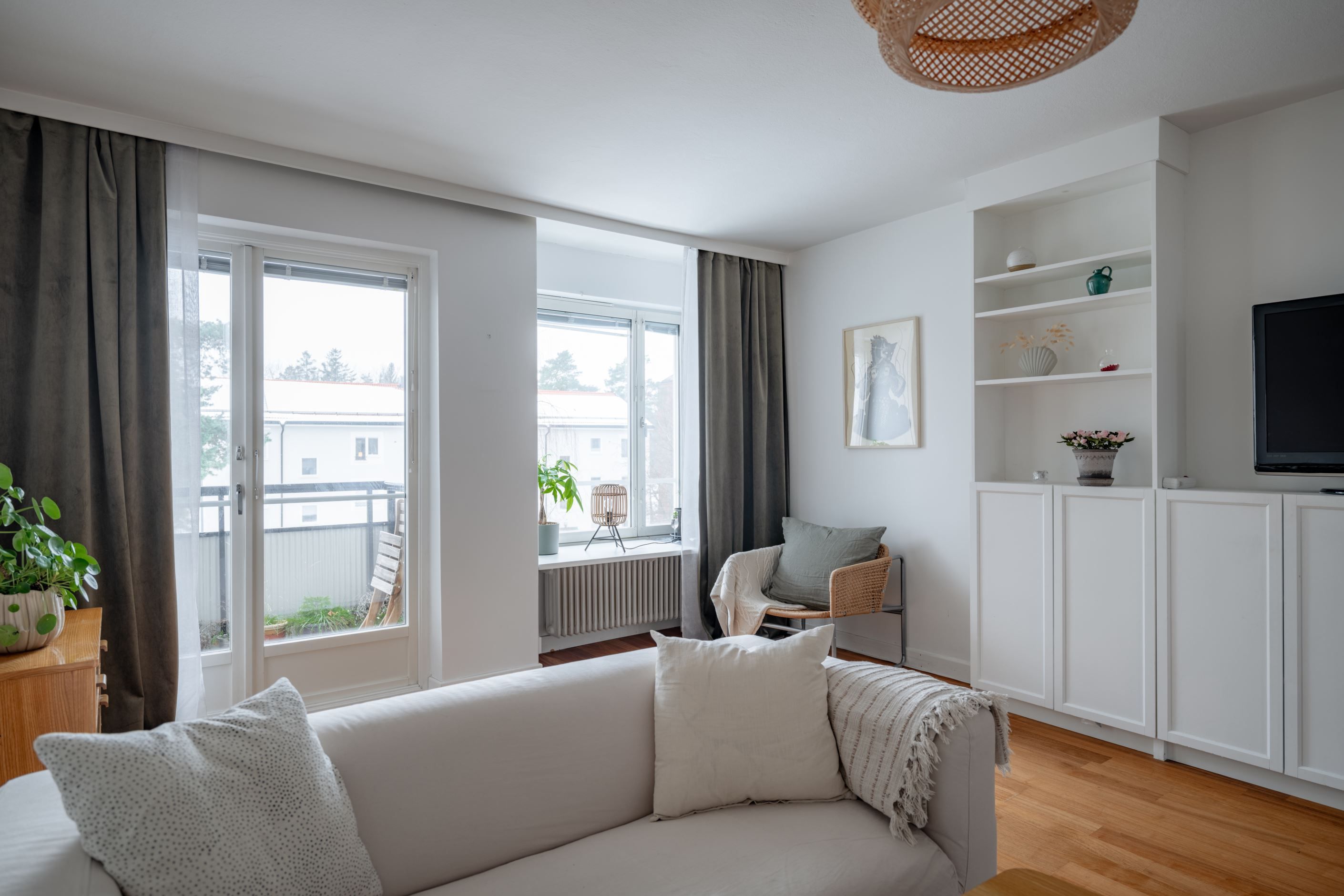 Välkommen till denna härliga och stora tvåa belägen på lugn återvändsgata med privat läge och rogivande vy! Denna lägenhet om dryga 60 kvm omfamnas av en ljus och rymlig balkong i söderläge med anknytning till det rymliga vardagsrummet och en öppen känsla till det välplanerade köket. Från både balkong och kök har man en fin utsikt i ett privat läge mot naturen som innergård.