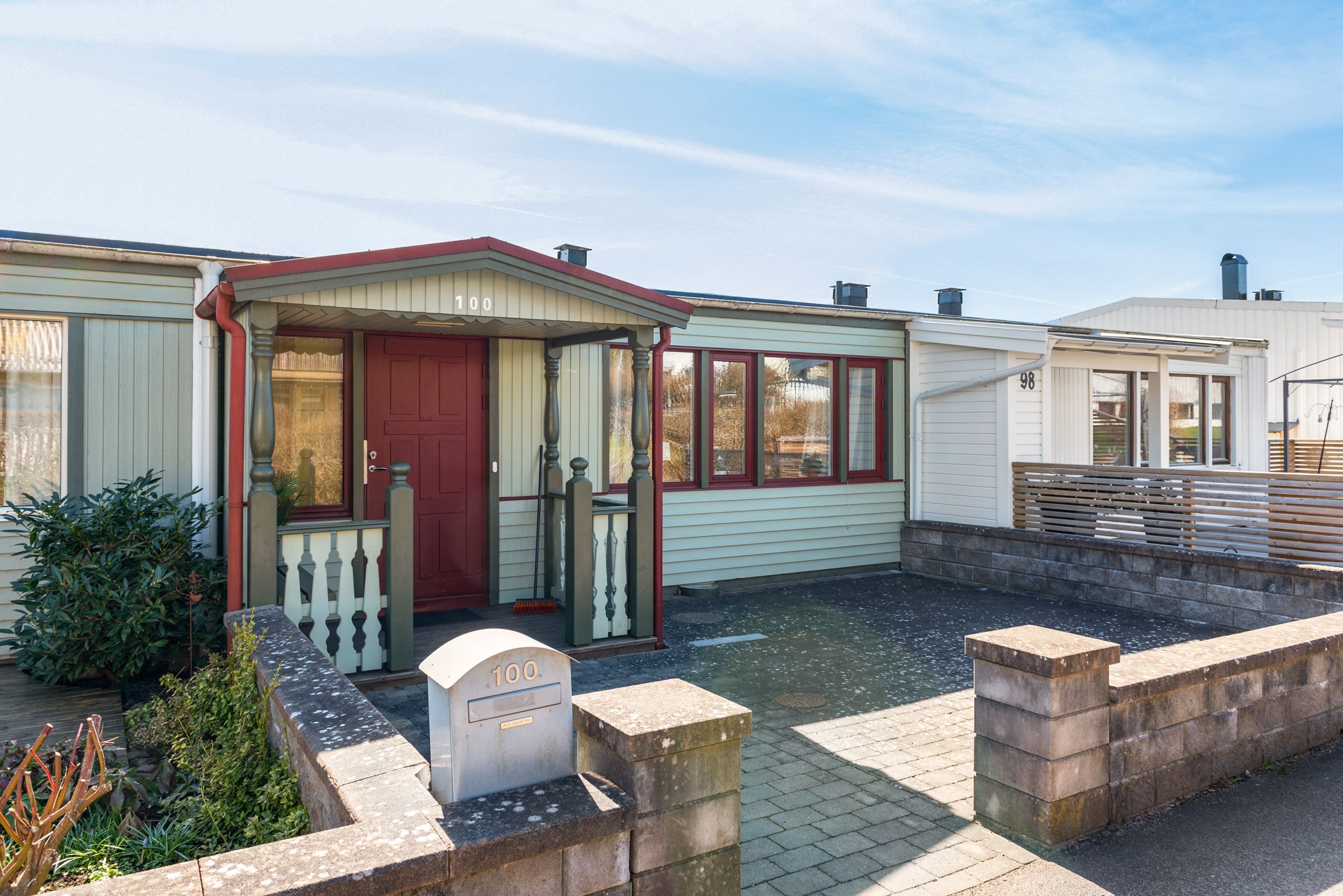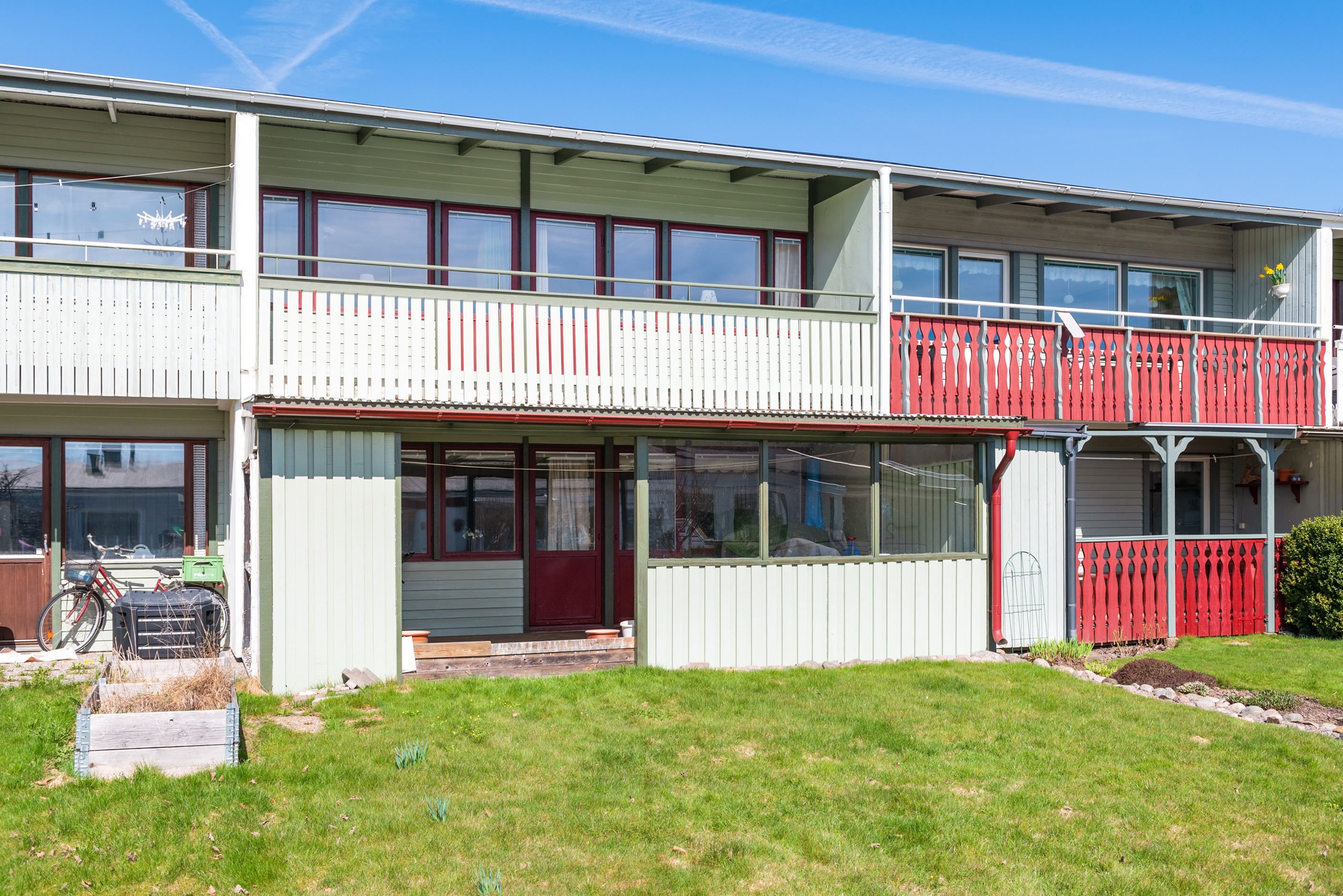 Här på Höjdenvägen 100 finner du ett mycket trevligt radhus i suterräng med en totalyta på 128 kvm med uteplats i två väderstreck. Radhuset erbjuder en bra planlösning med kök, WC, vardagsrum och ett sällskapsrum som enkelt kan göras om till ett till sovrum på bostadens entréplan. Detta gör bostadens övre plan till en social och trevlig yta, med stora fönster som ger ljusinsläpp ifrån två håll. Från entréplan når du den stora balkongen på husets baksida.