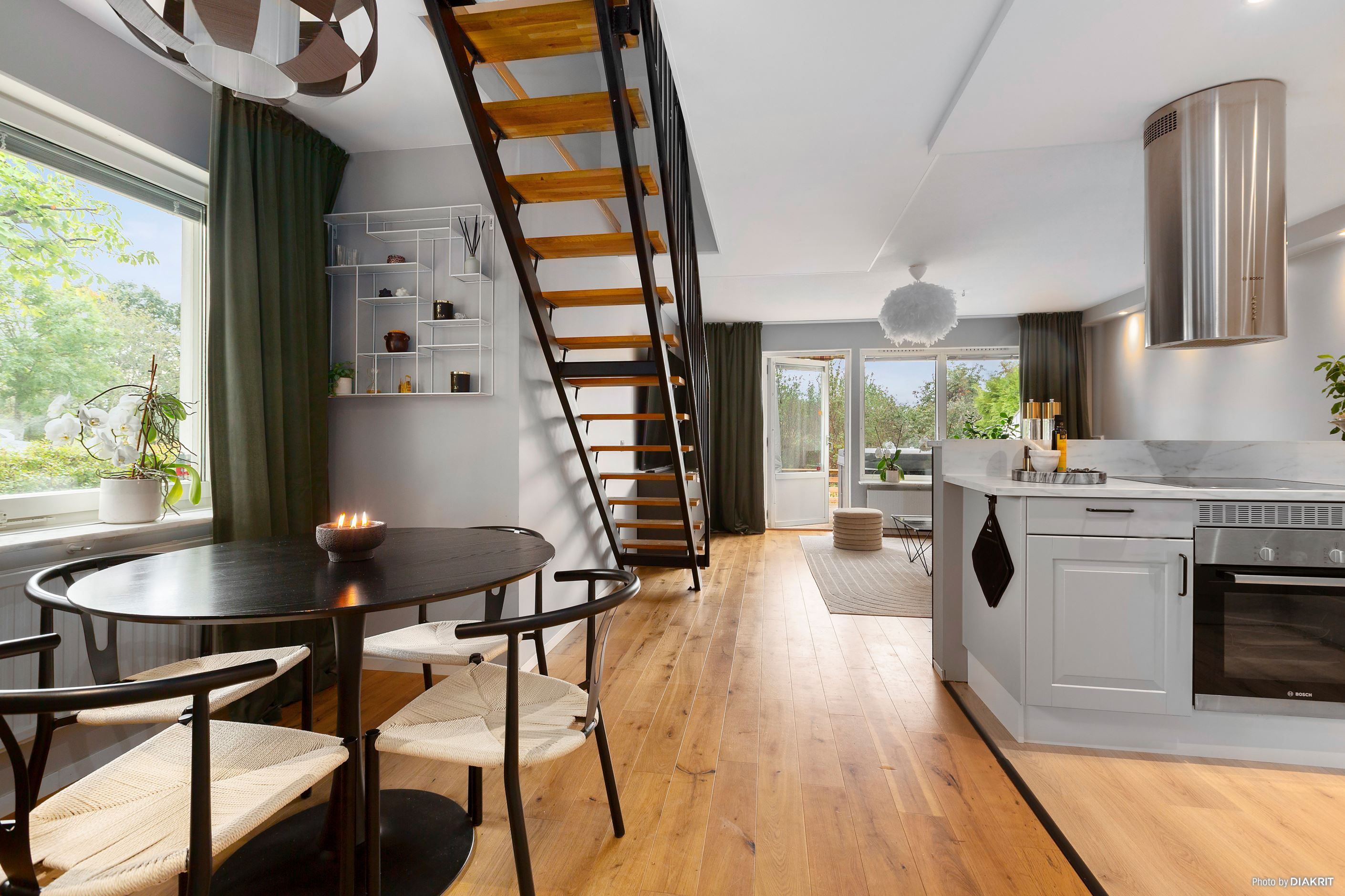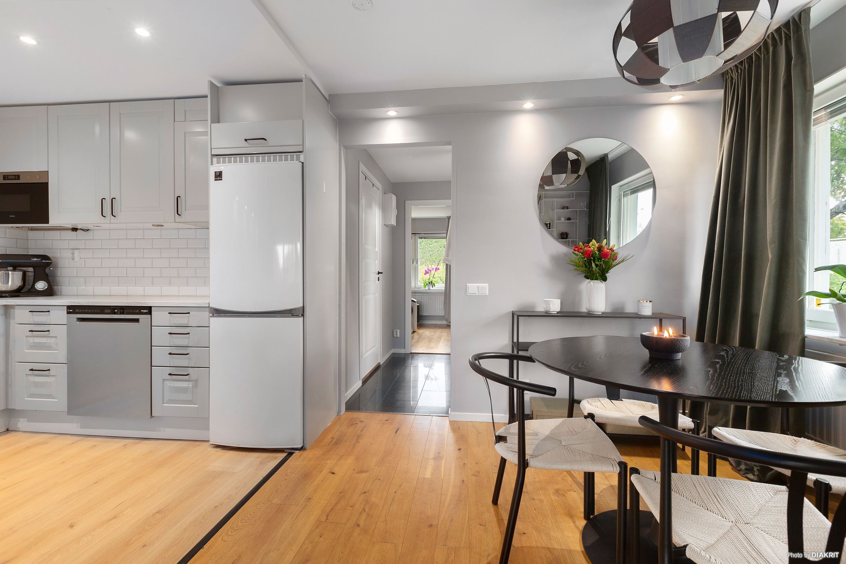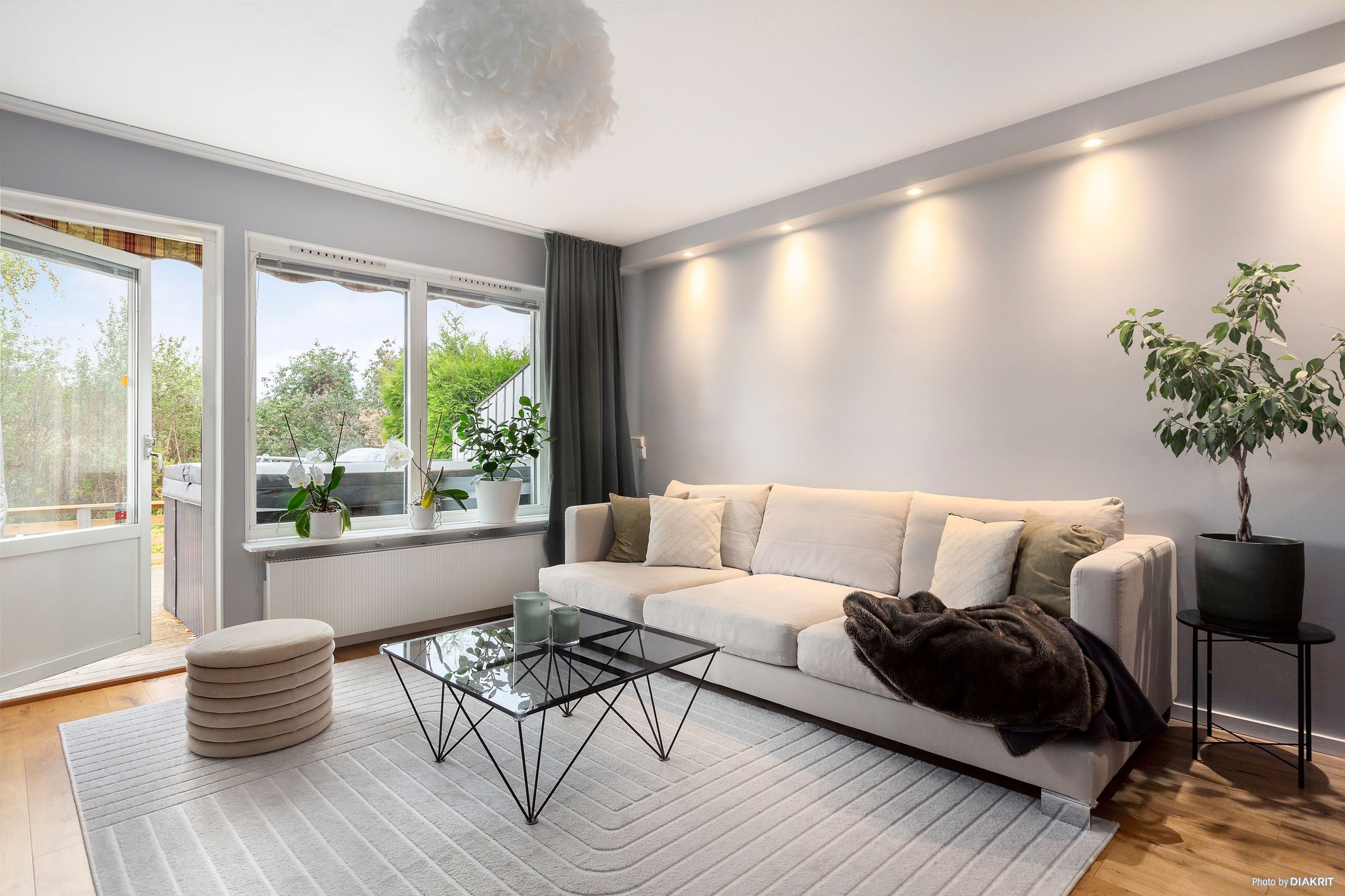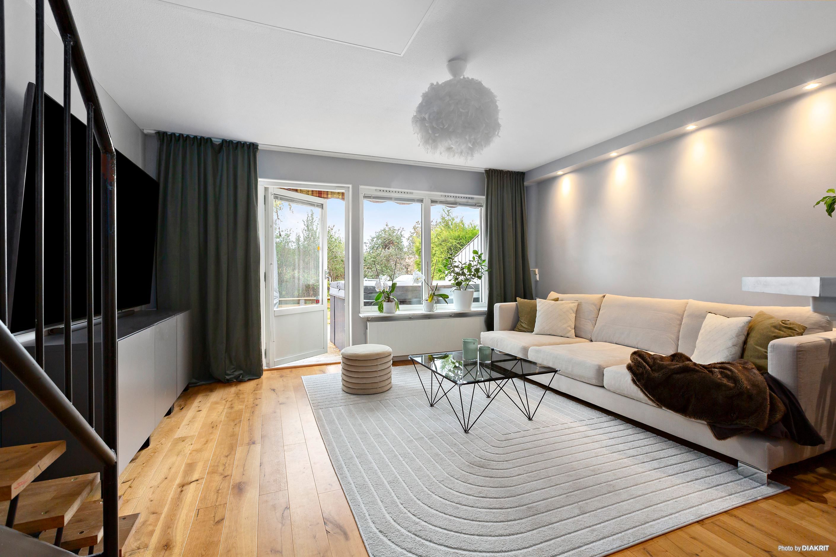 Charmigt radhus på totalt ca 90 kvm med 3 rok varav 1–2 sovrum i ett lugnt område med parkering utanför. Renoverat kök år 2016, badrum år 2020 med golvvärme och vardagsrum med utgång till solig, insynsskyddad uteplats i sydväst. Övervåningen erbjuder allrum och extra sovrum/kontor. Tomt på 221 kvm med plats för lek, odling och avkoppling. Ett lättskött hem nära grönområden och service – perfekt för familjen eller den som vill ha praktiska ytor i lugnt läge. Separat garage i länga med lås, ca 3 kvm.