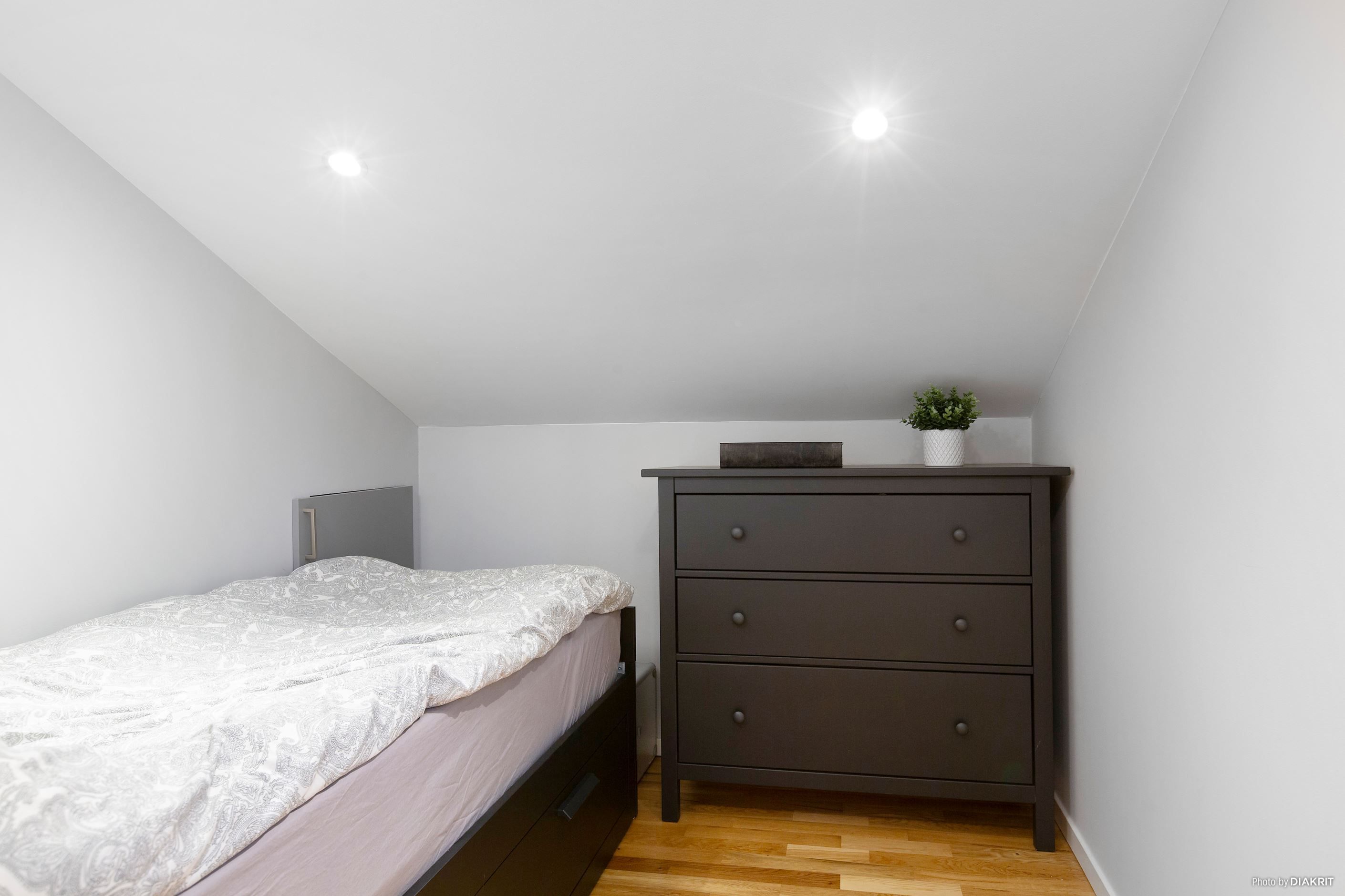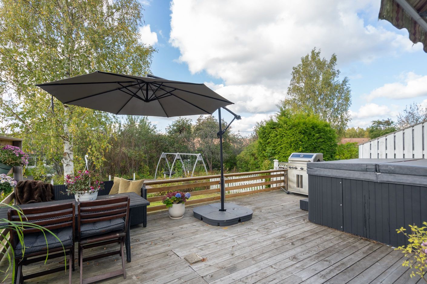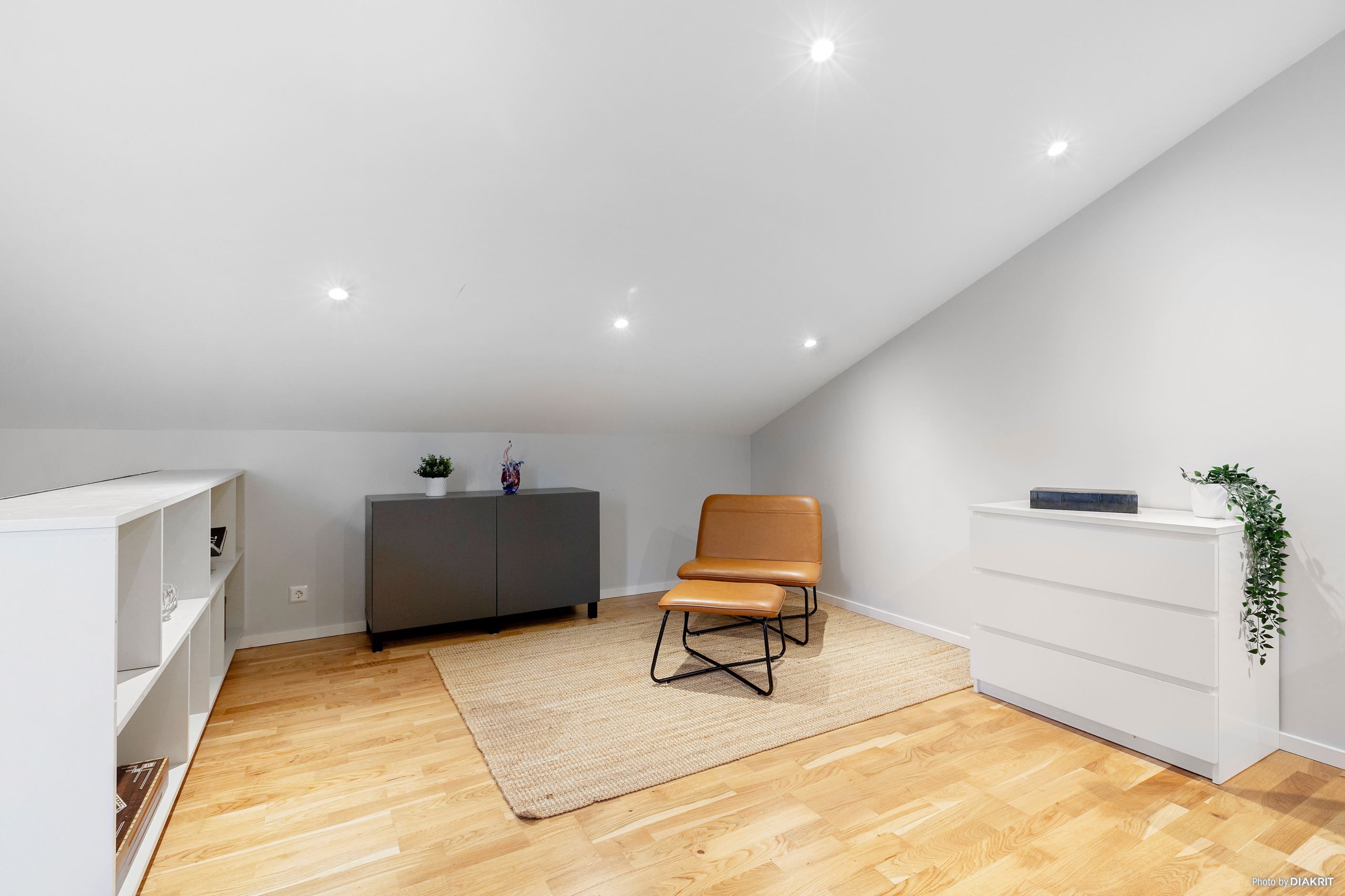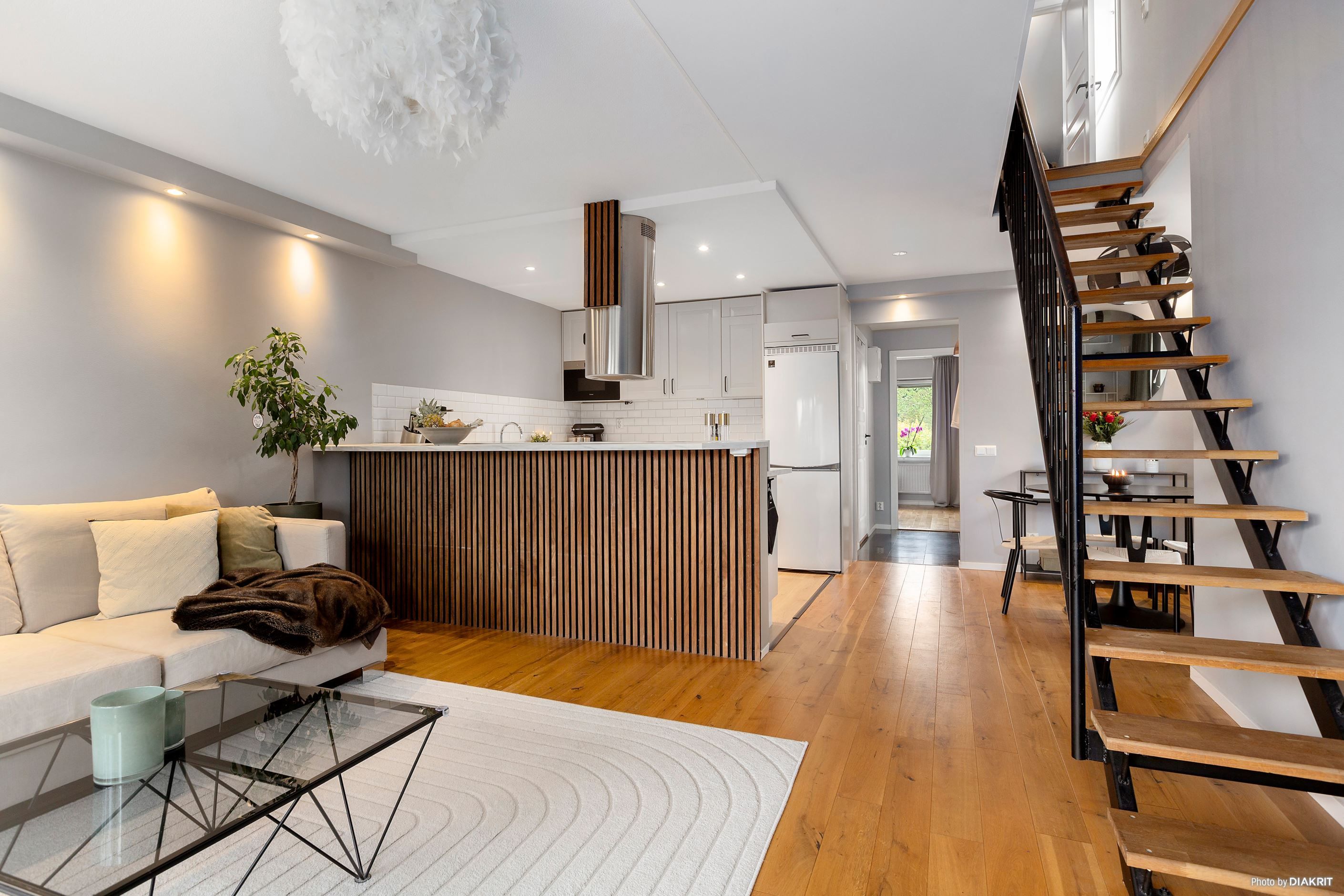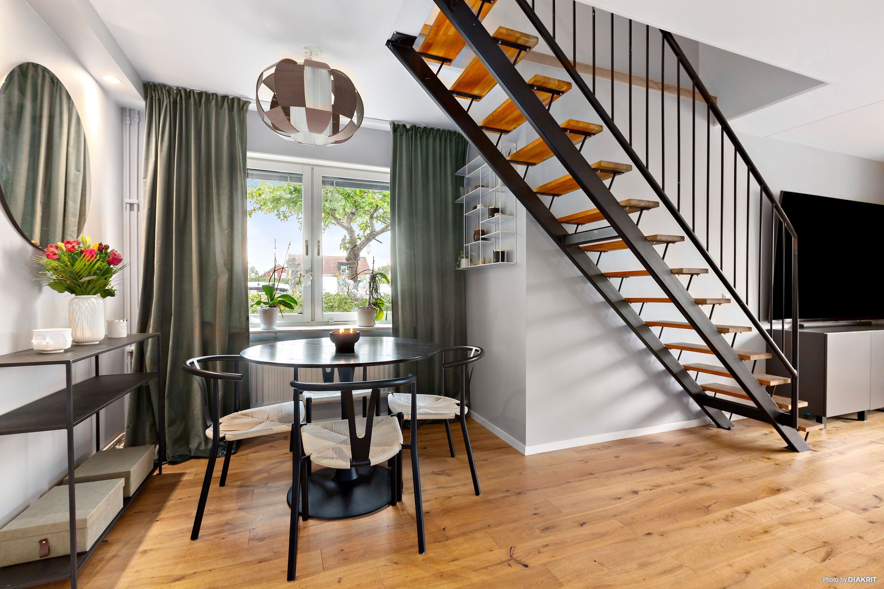 Charmigt radhus på totalt ca 90 kvm med 3 rok varav 1–2 sovrum i ett lugnt område med parkering utanför. Renoverat kök år 2016, badrum år 2020 med golvvärme och vardagsrum med utgång till solig, insynsskyddad uteplats i sydväst. Övervåningen erbjuder allrum och extra sovrum/kontor. Tomt på 221 kvm med plats för lek, odling och avkoppling. Ett lättskött hem nära grönområden och service – perfekt för familjen eller den som vill ha praktiska ytor i lugnt läge. Separat garage i länga med lås, ca 3 kvm.