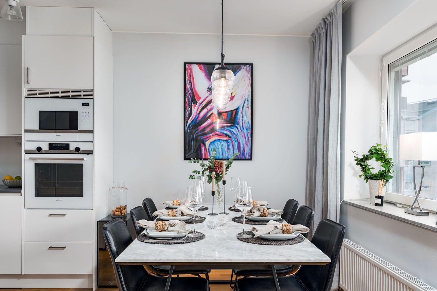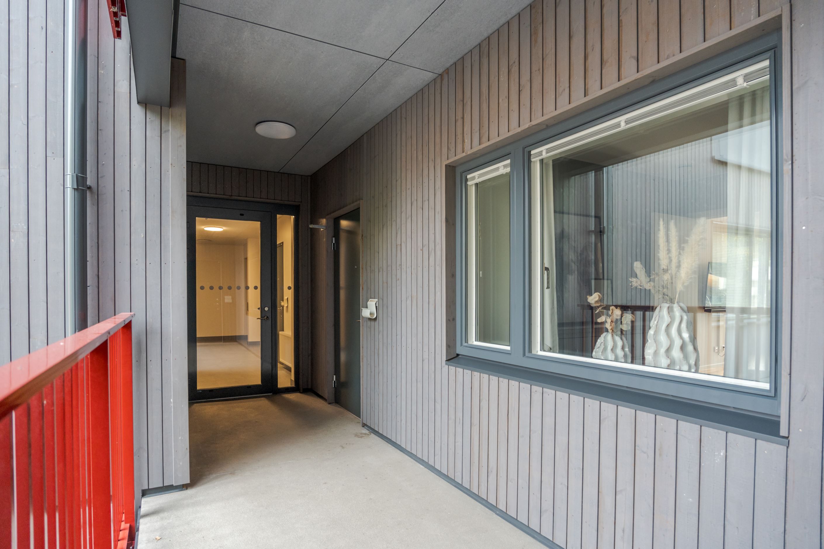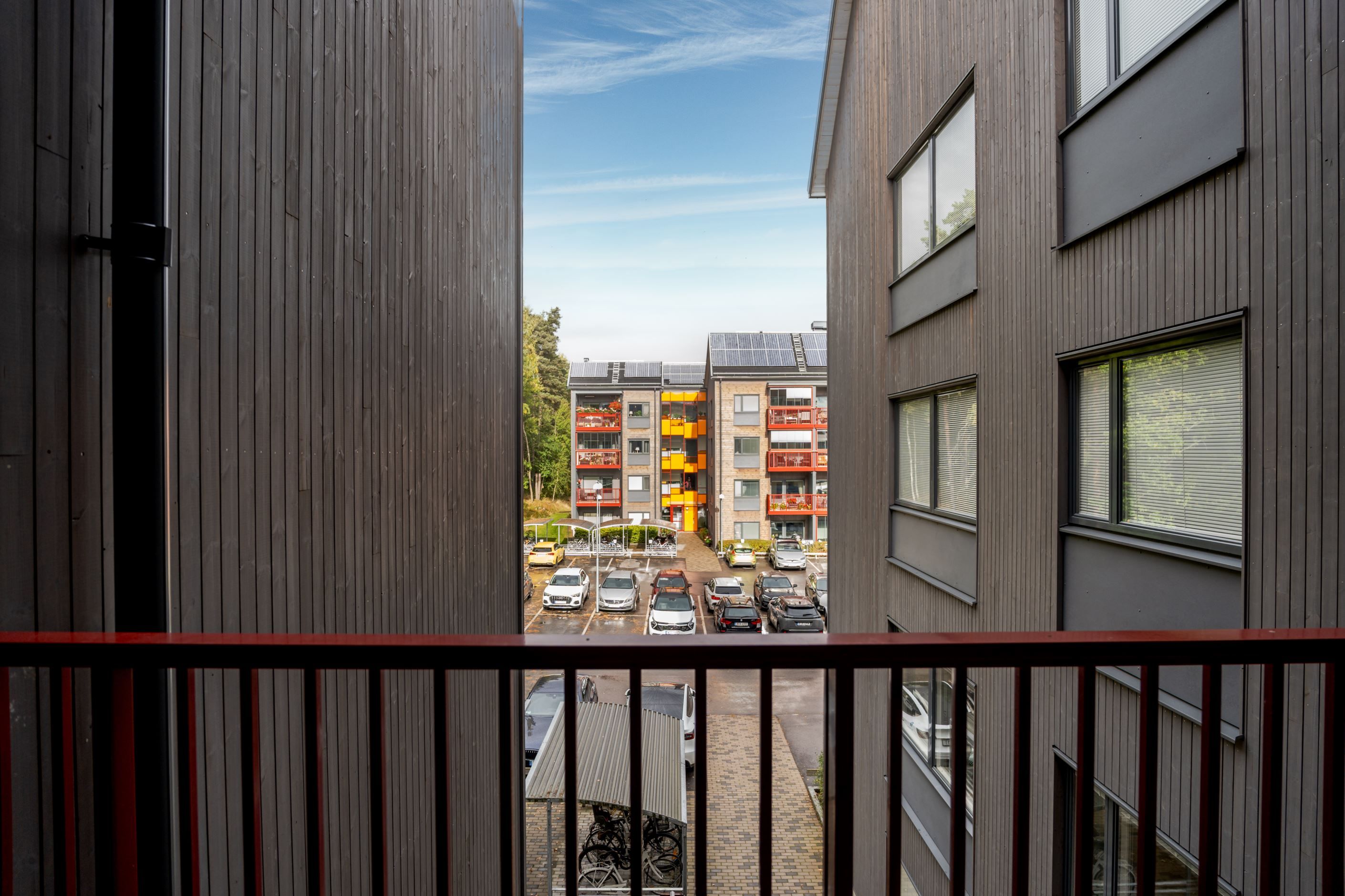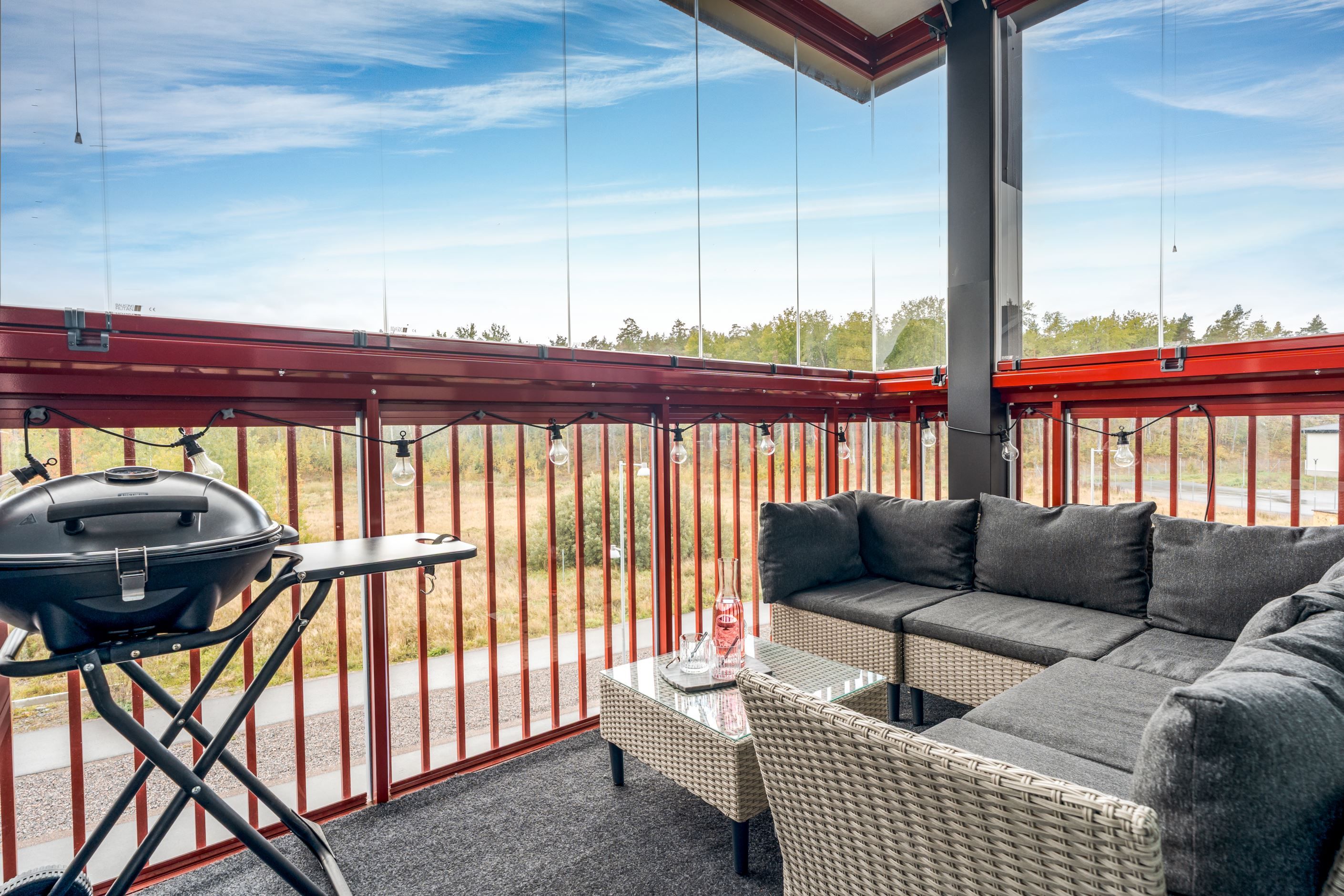 Den inglasade balkongen blir ett extra rum större delen av året och bjuder på en fin utsikt samt ett riktigt bra solläge – perfekt för avkoppling och sociala stunder.