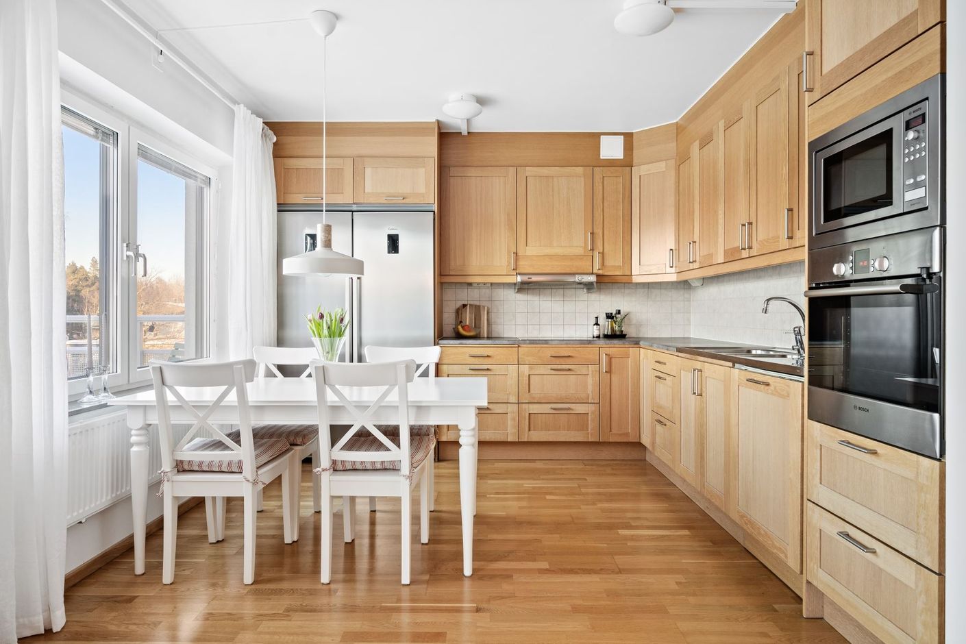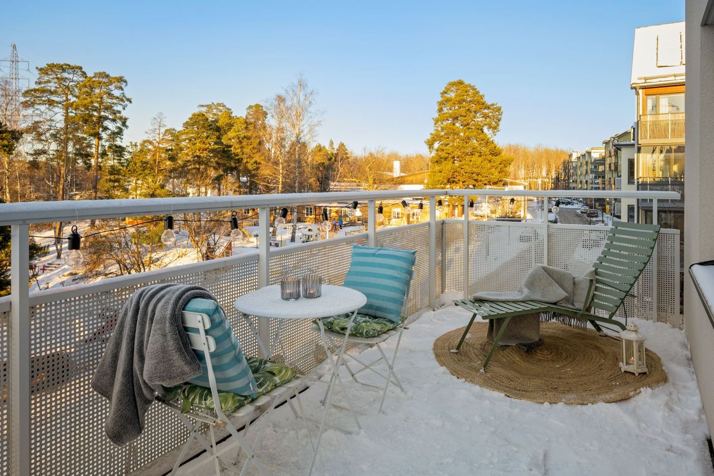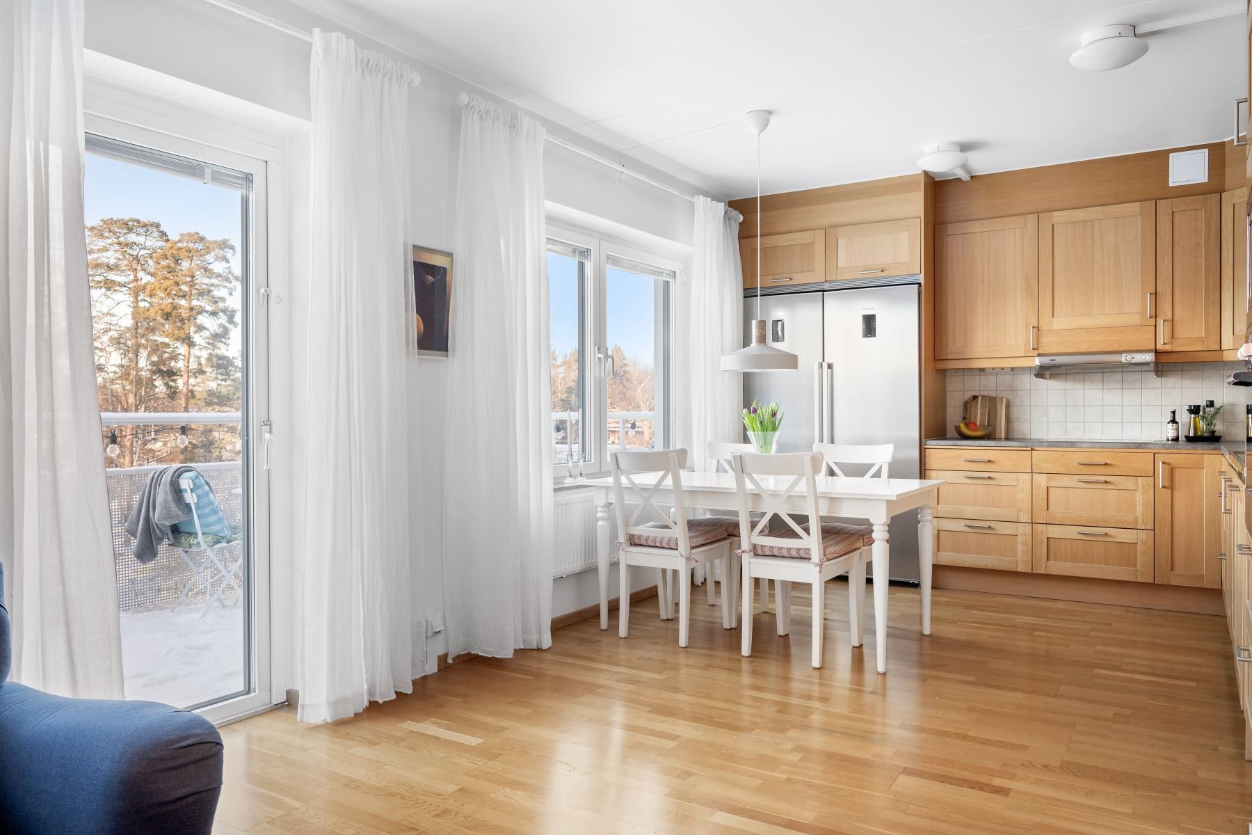 Solig gaveltrea högst upp med stor balkong i väst och fri parkutsikt!