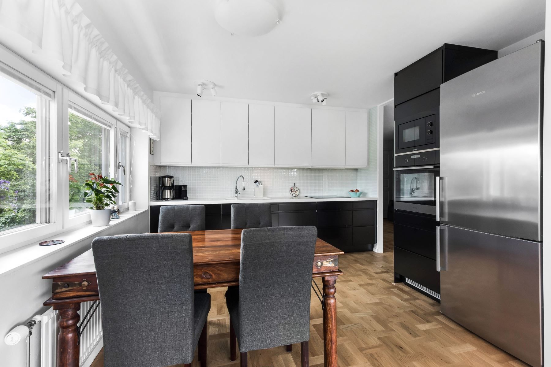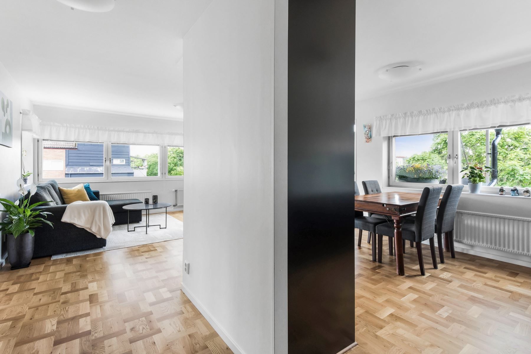 Högst upp i huset finner ni denna totalrenoverade 4:a som numera är ombyggd till en stor 3:a. Bostaden har tagits väl omhand av nuvarande ägare med genomtänkta materialval, stilren design och inredning. Trivsam öppen planlösning som bjuder in till sociala sammankomster. Stabil bostadsrättsförening med ordnad ekonomi, närhet till goda kommunikationer och grönområden. En bostad som måste upplevas på plats! Varmt välkommen på visning!