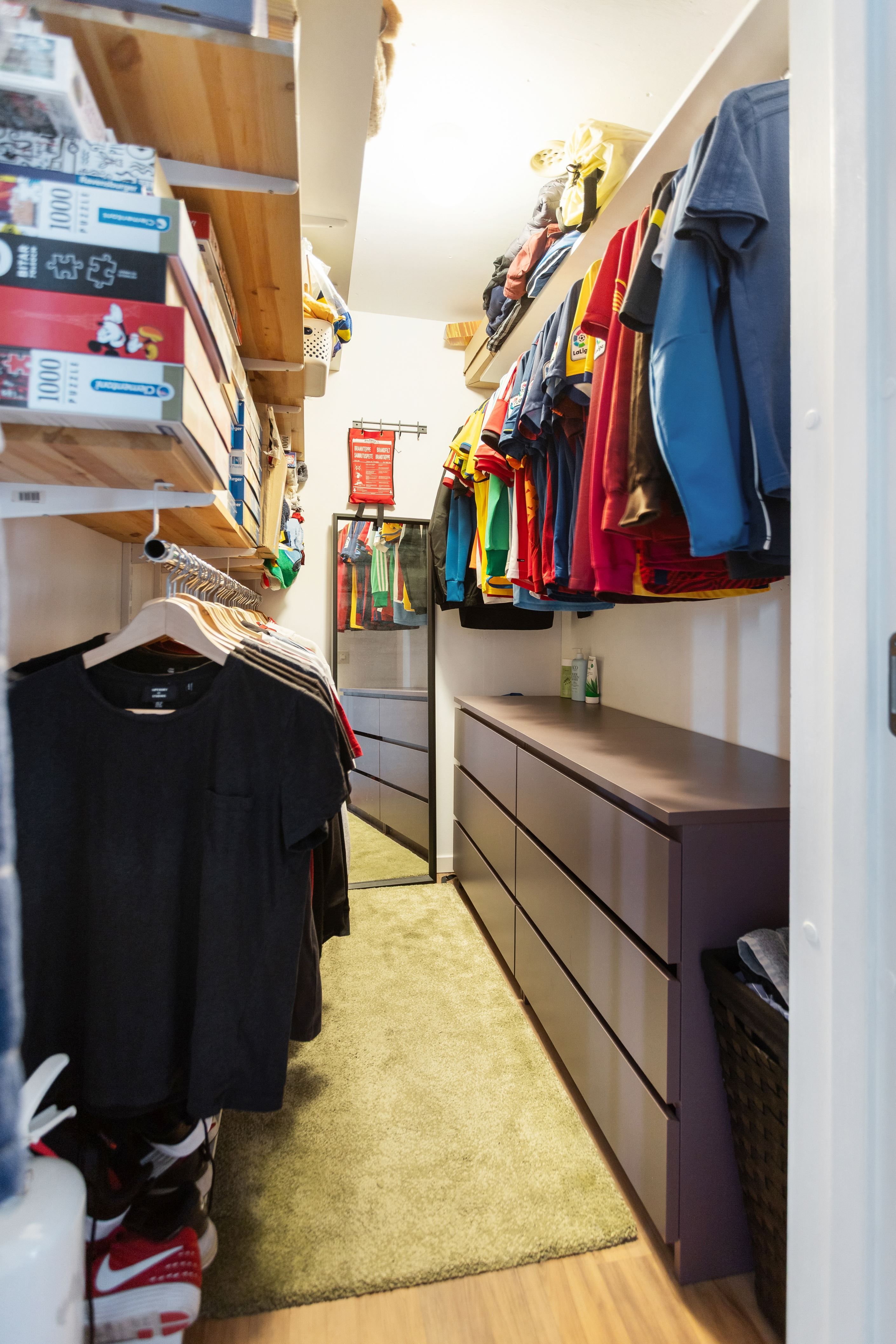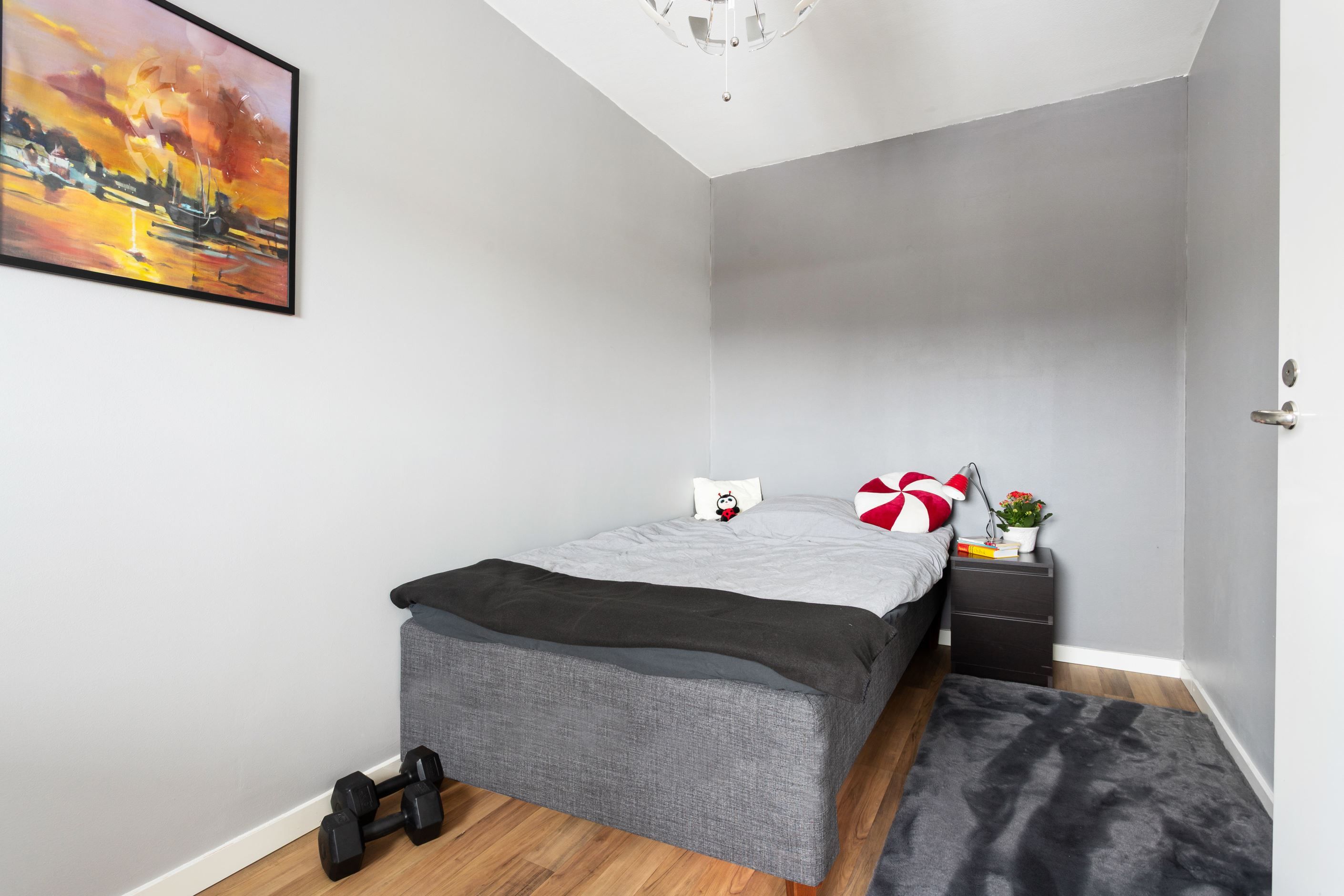 Sovrummet har plats för dubbelsäng och förvaringsutrymmena är mycket goda i en rejäl klädkammare med praktisk förvaringsinredning.