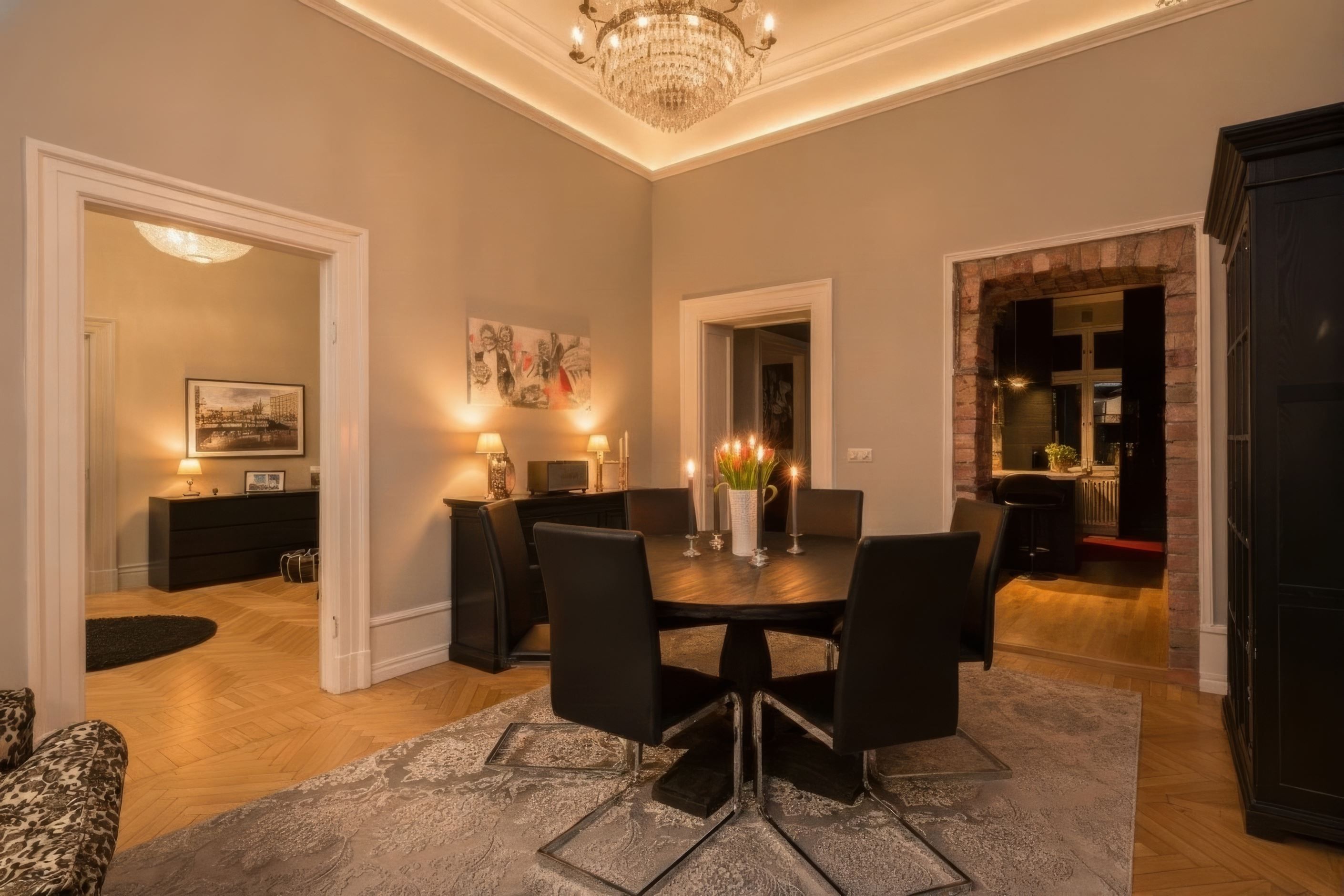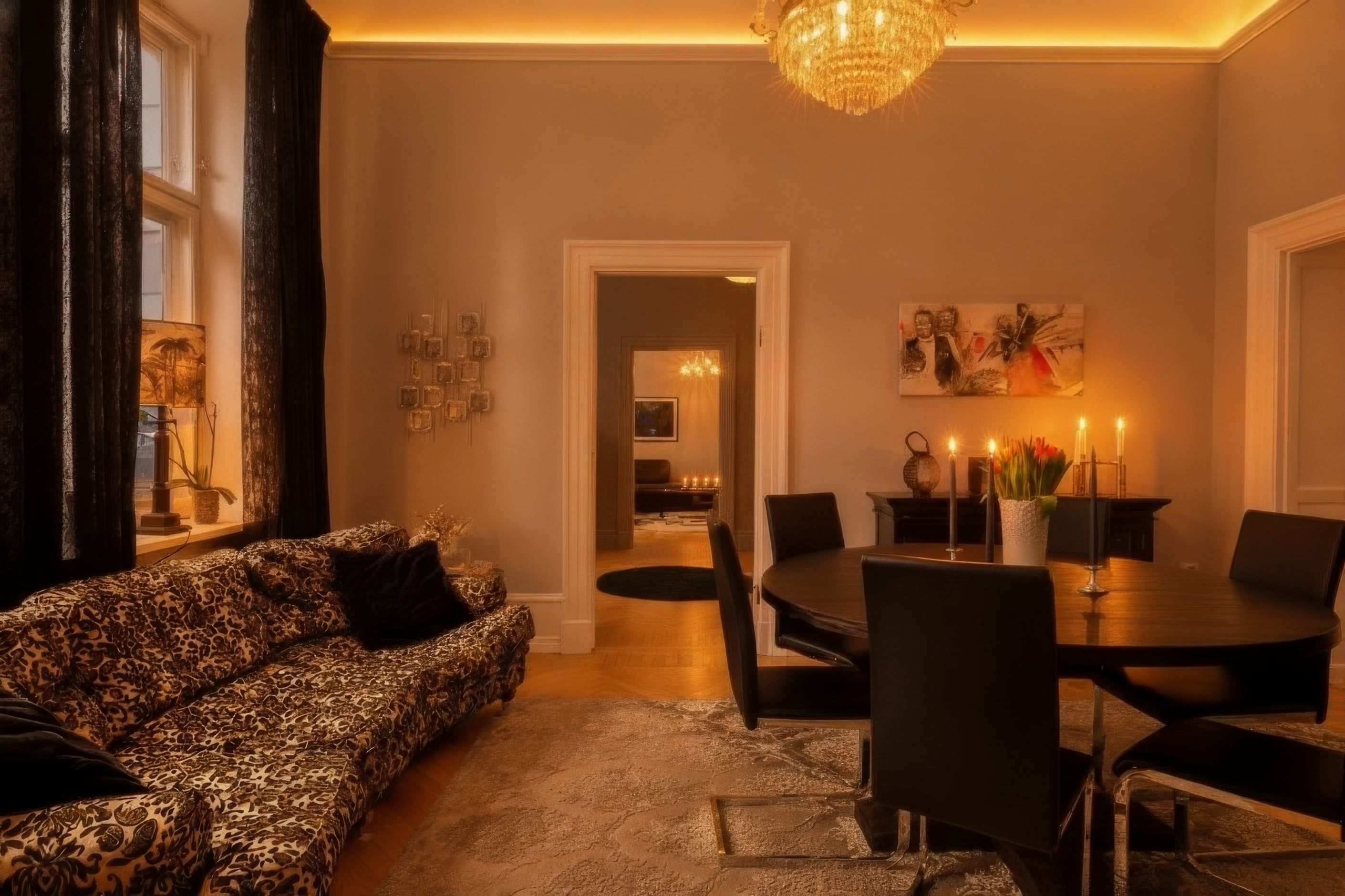 Välkomna till ett drömmigt boende på Hörngatan 5A, där varje detalj andas den oemotståndliga charm som bara ett sekelskifte kan erbjuda. Tänk er ett liv där varje rum berättar en historia med sin unika karaktär – från den eleganta fiskbensparketten och de ståtliga stuckaturerna till de charmiga och de förtjusande fönstren.