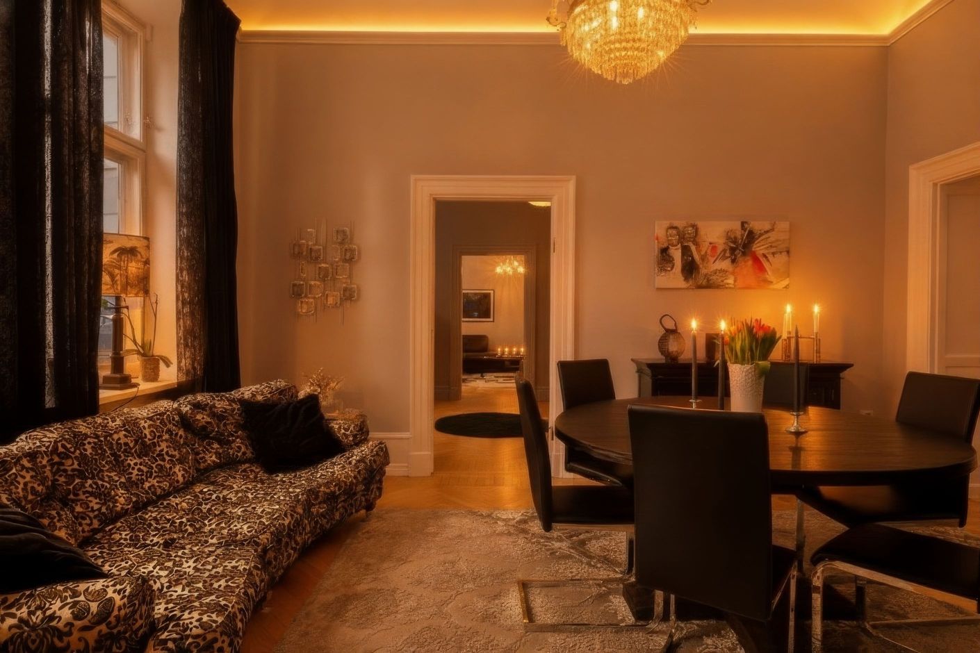 Denna exklusiva lägenhet bjuder på en genomtänkt planlösning badande i ljus från fönster placerade i två väderstreck. Boendet är generöst tilltaget med ett luftigt vardagsrum, en matsal som följer i rum i fil, en inbjudande salong med en ögonfångande dekor, och 2 rymliga sovrum. Samtliga sovrum erbjuder gott om förvaringsutrymmen. Köket kombinerar tidlöshet med modernitet och kompletteras av ett rymligt badrum med dusch och badkar.
