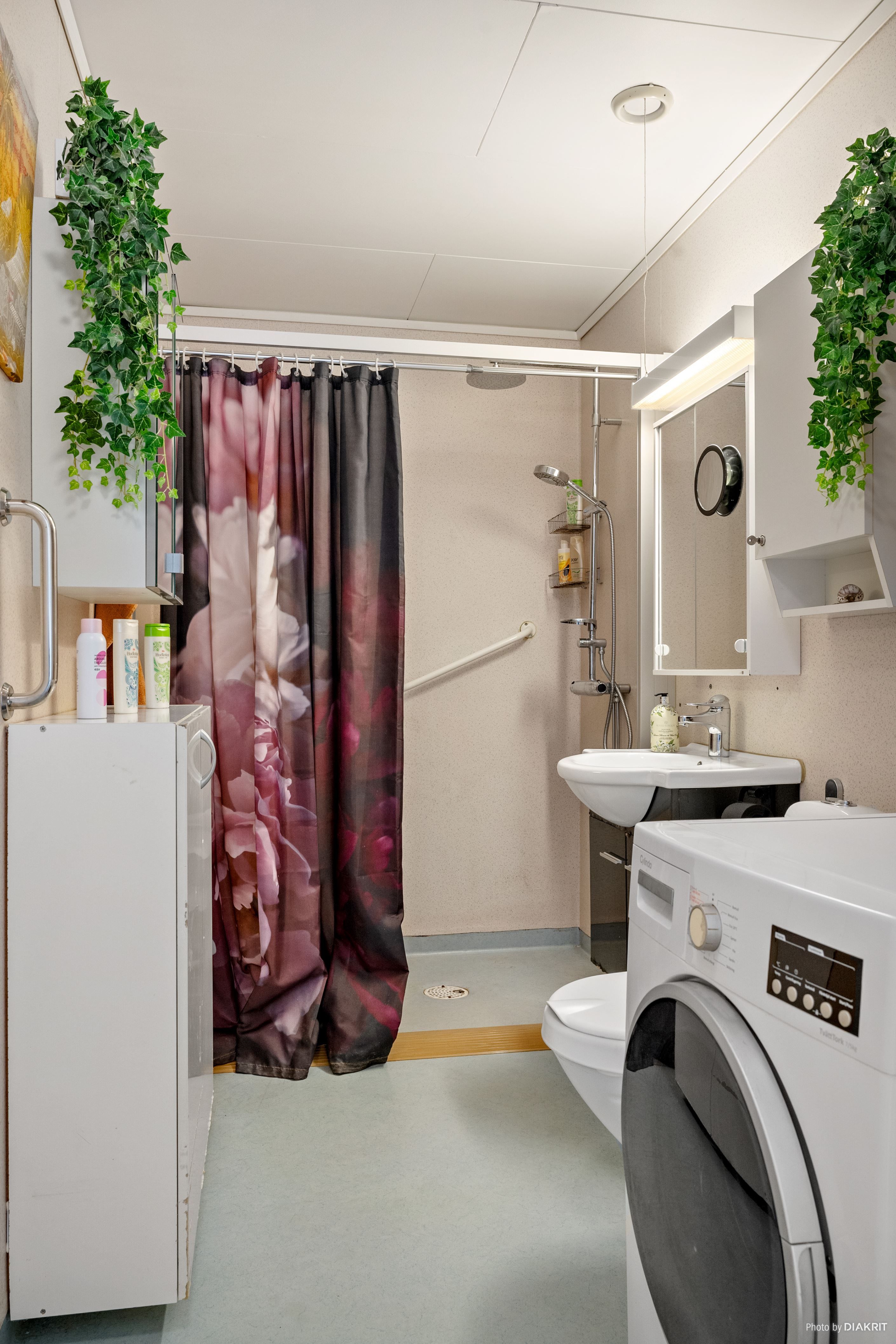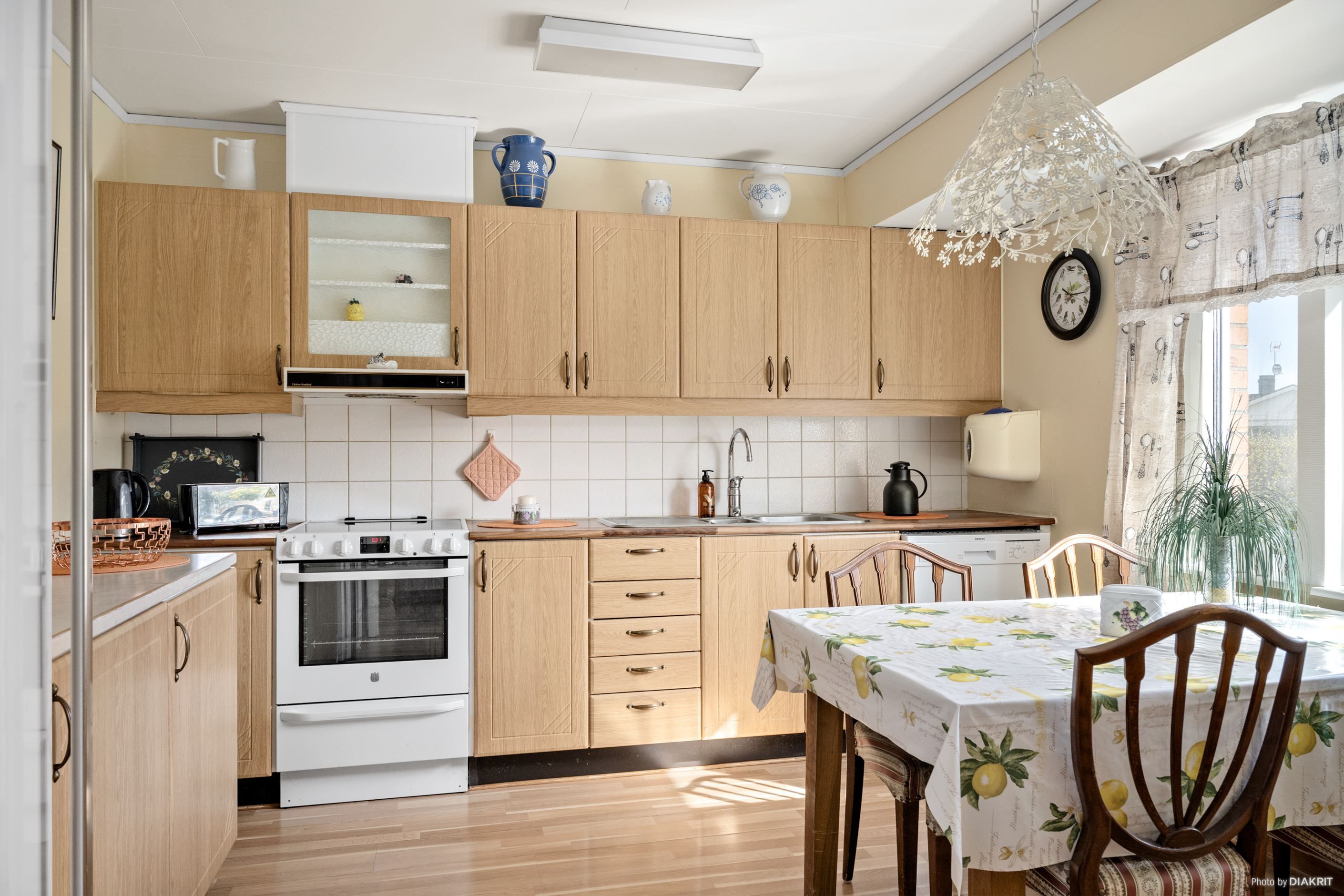 Köket är rymligt och funktionellt med goda arbetsytor och badrummet är utrustat med både tvättmaskin och torktumlare. Till bostaden hör ett eget garage med elport som ingår i månadsavgiften, vilket är ett stort plus i vardagen. Fiber finns indraget, abonnemang tecknas separat.