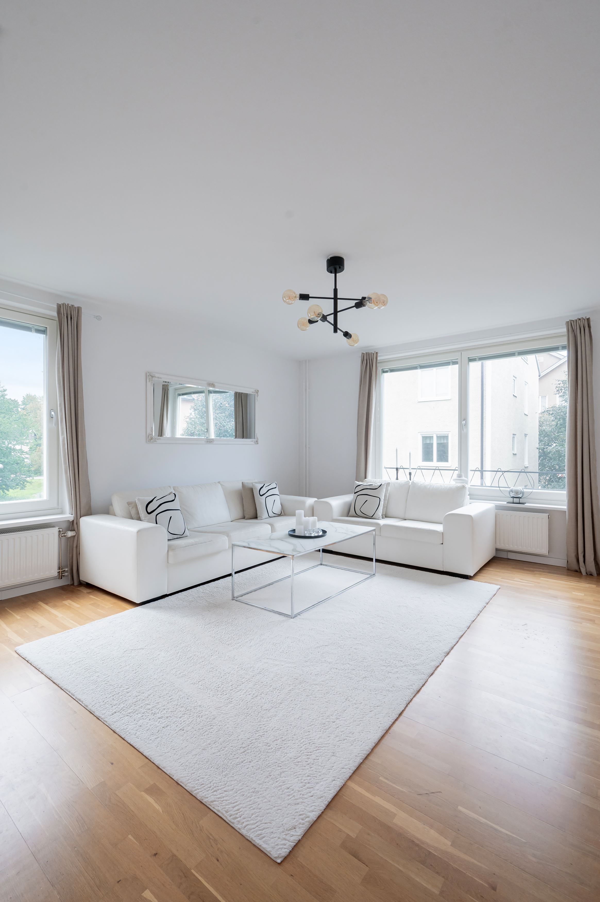 Välkommen till denna rymliga och stilrena 3:a om 75kvm där du möts av en bostad med stora rum, generöst ljusinsläpp och en genomtänkt planlösning som gör hemmet enkelt att inreda. Med ett gavelläge flödar dagsljuset in från flera väderstreck och skapar en harmonisk atmosfär i hela lägenheten. De vita väggarna och de vackra parkettgolven löper enhetligt genom alla rum och ger en känsla av nyproduktion, samtidigt som planlösningen bevarar den klassiska charmen från 50-talet. Bostaden är totalt genomgången och i mycket bra skick.