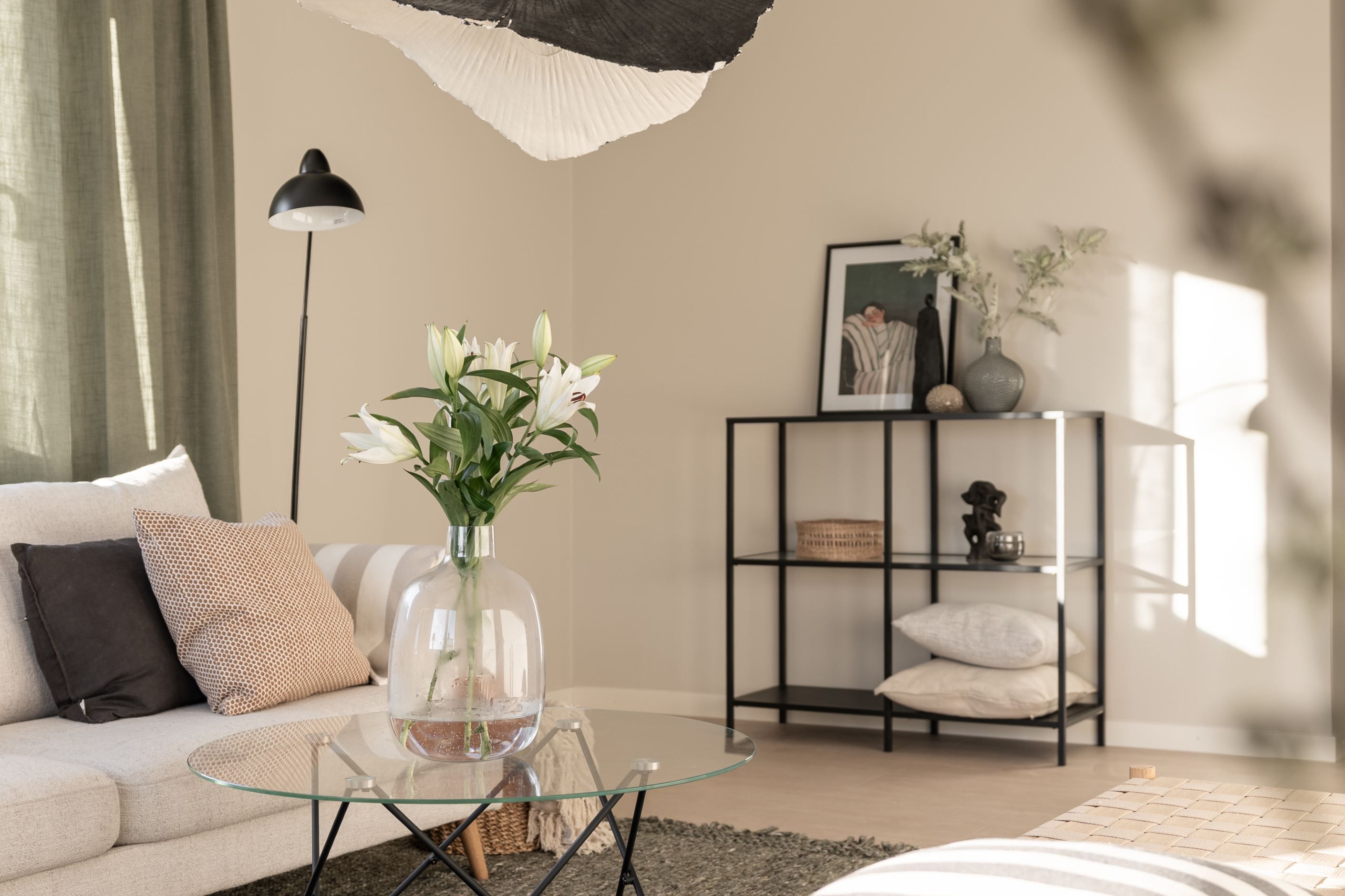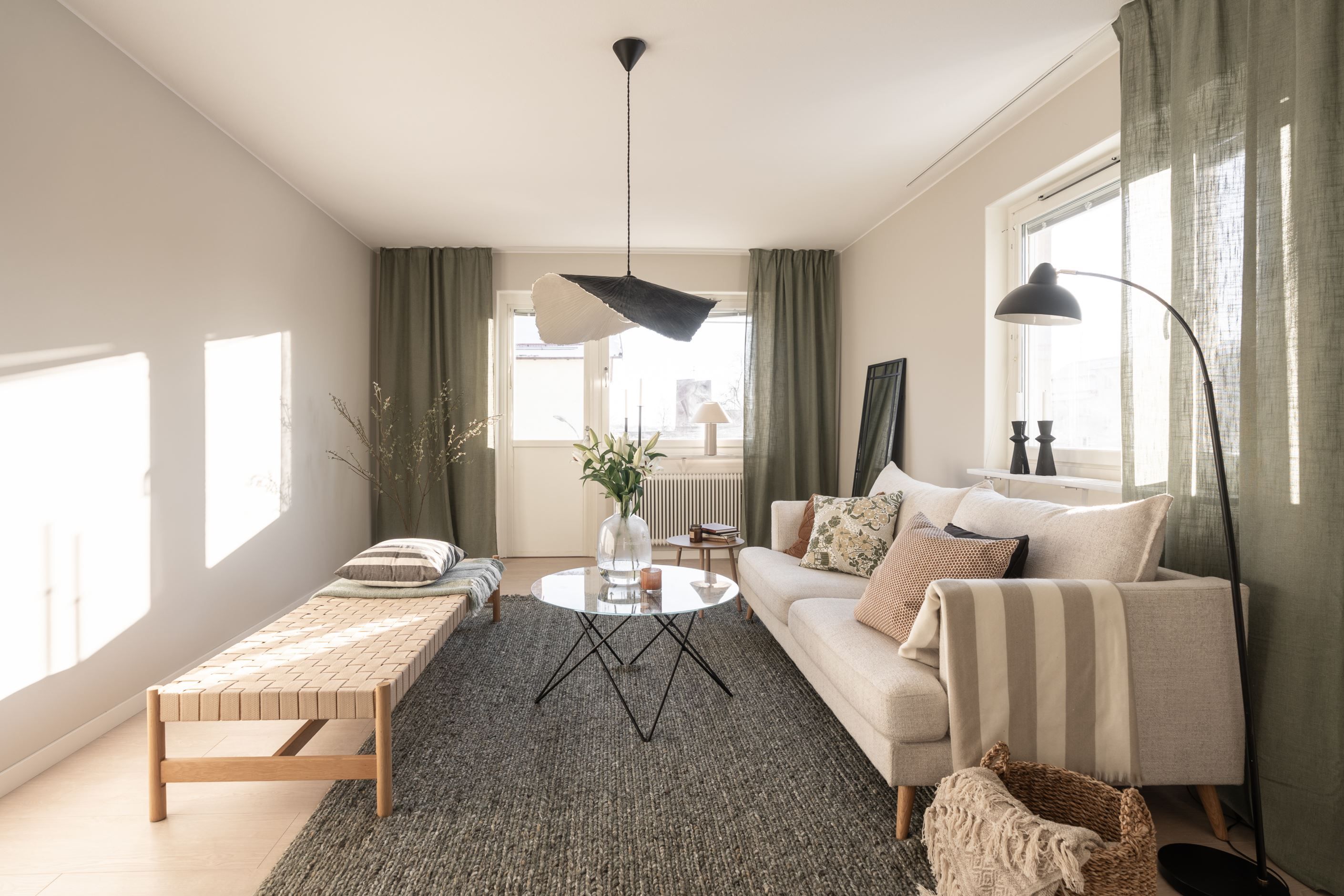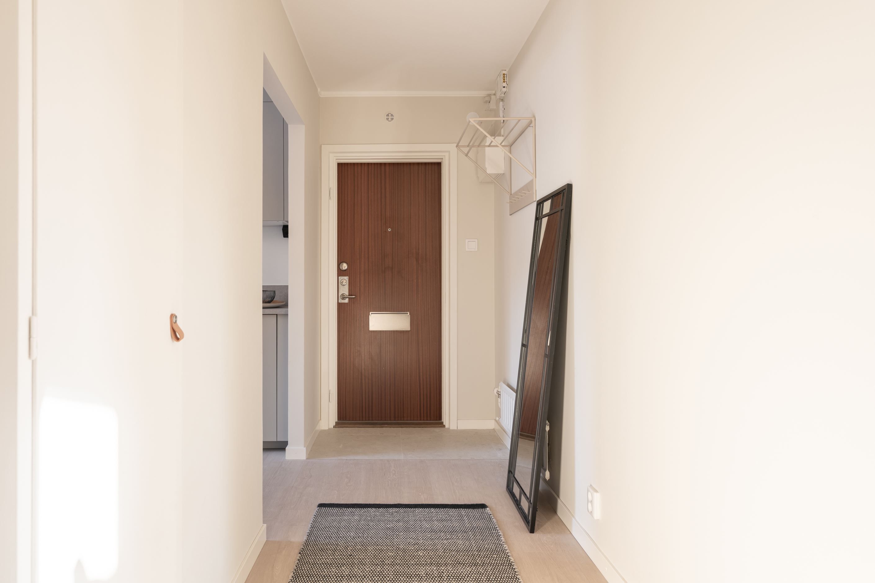 Redan i hallen möts du av en genomtänkt och smakfull känsla som genomsyrar hela bostaden. Nya ytskikt, generösa ytor och en tydlig röd tråd i moderna toner som skapar ett hem som känns både fräscht och inbjudande.