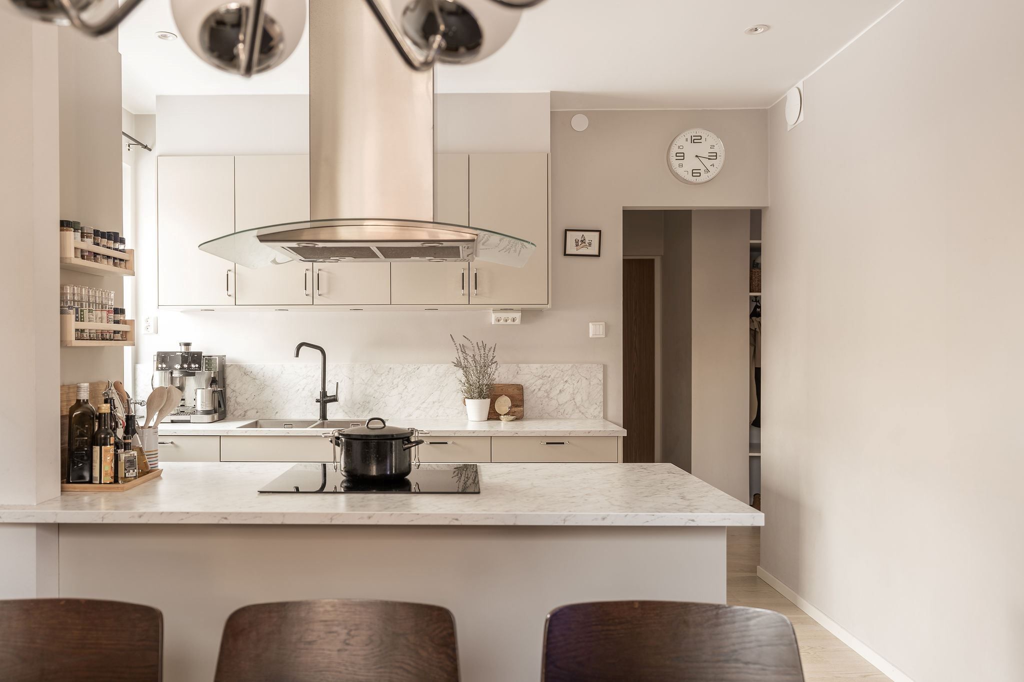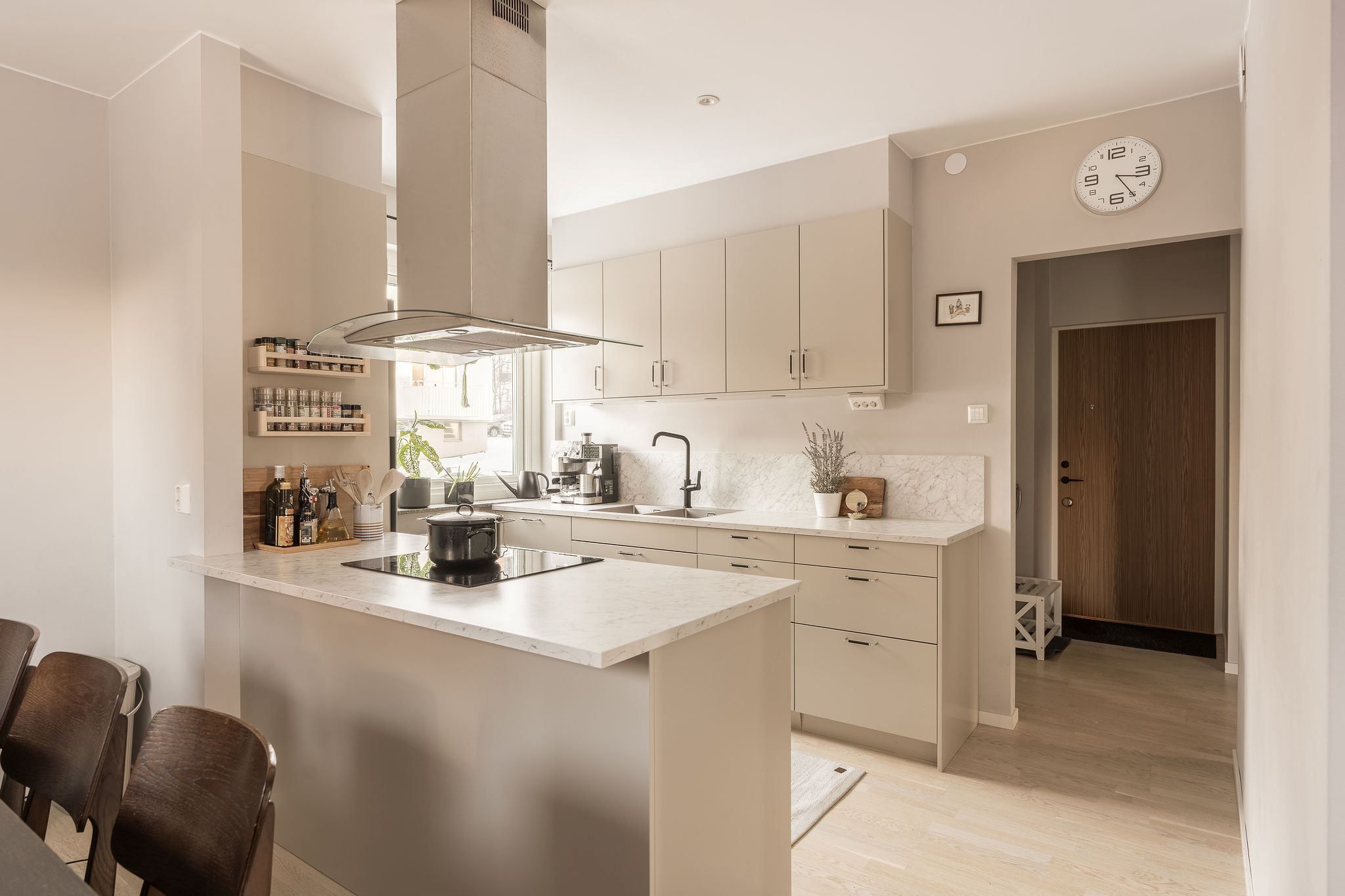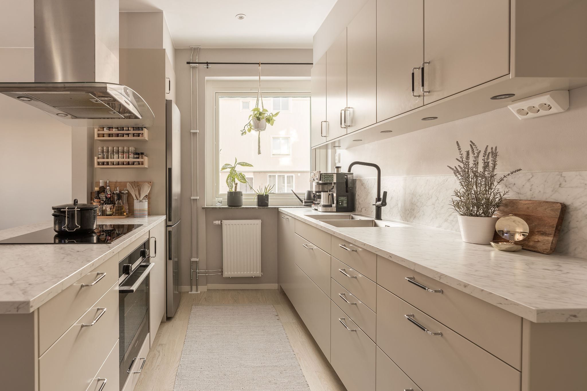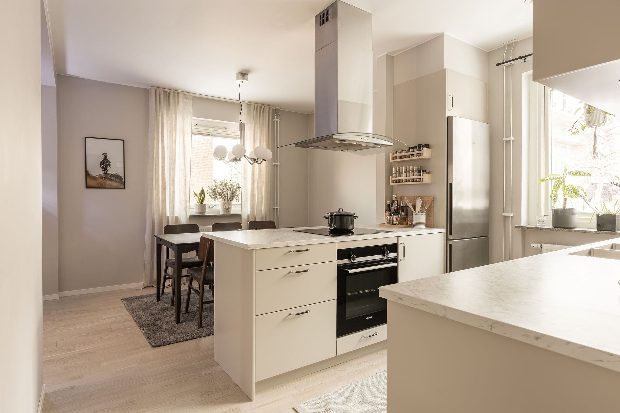Köket är nytt och fräscht med stilrena materialval och goda arbetsytor – perfekt för dig som uppskattar både funktion och estetik. Här lagar du mat med fri sikt över köksön vilket genererar de trevligaste middagarna i goda vänners lag.
