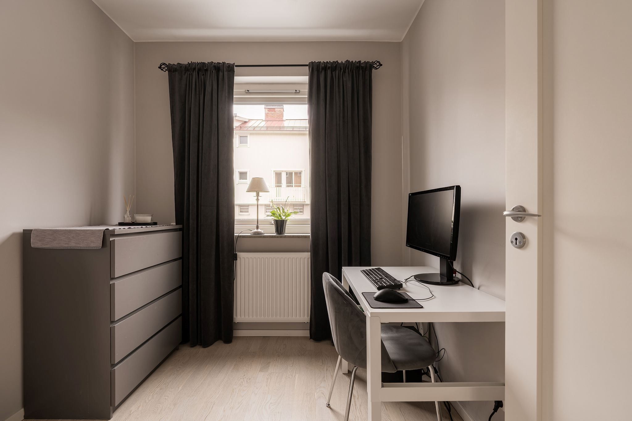Bostaden erbjuder två sovrum, varav ett med praktisk klädkammare i anslutning,