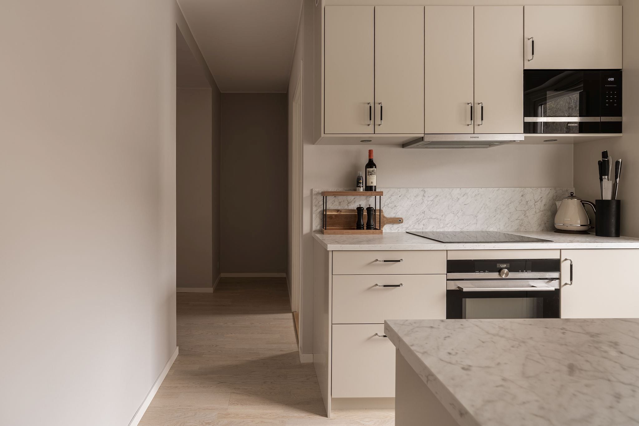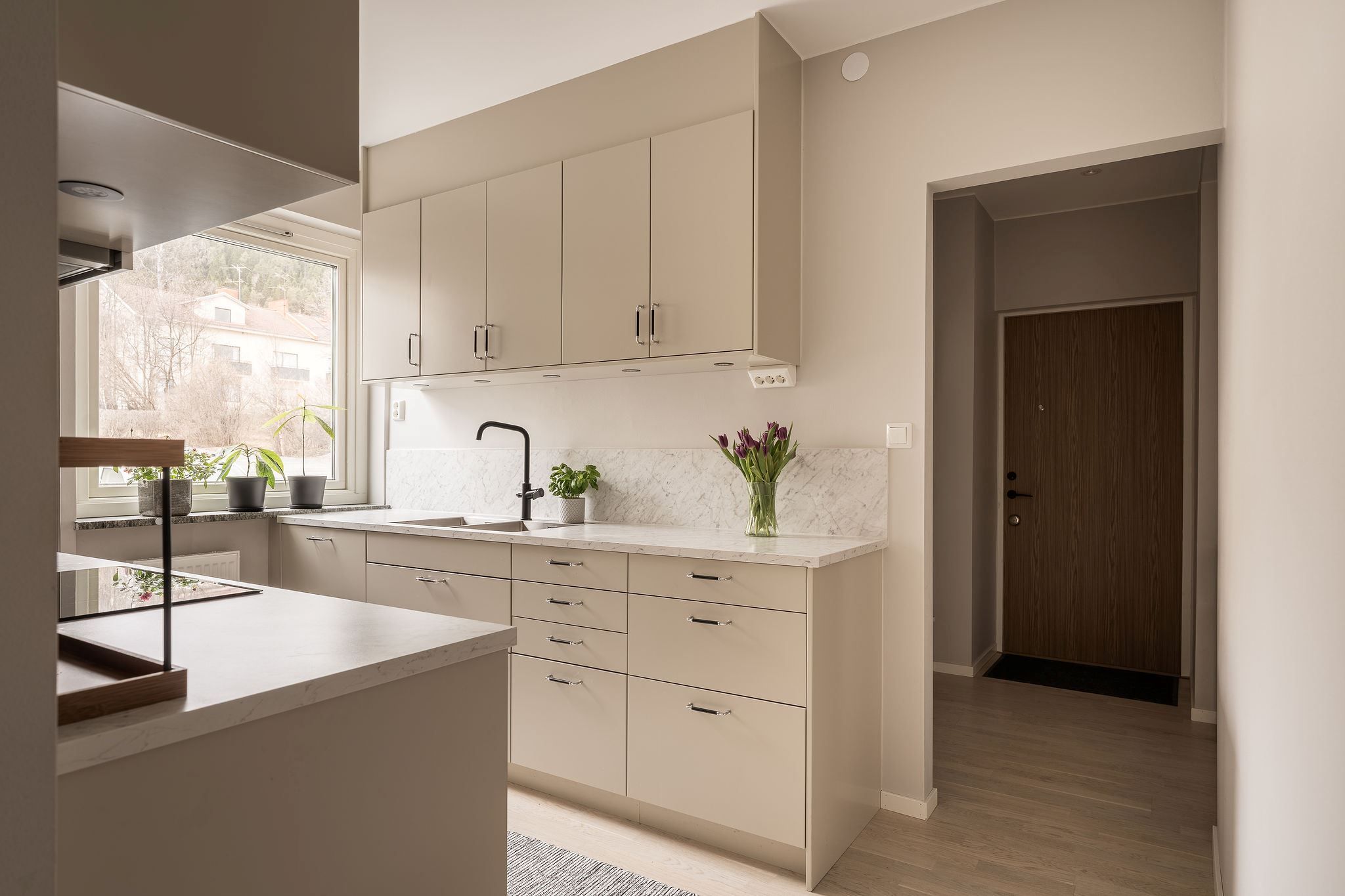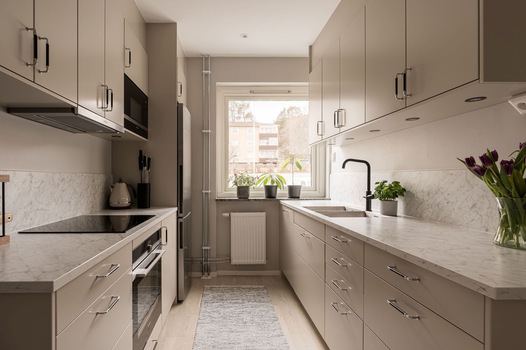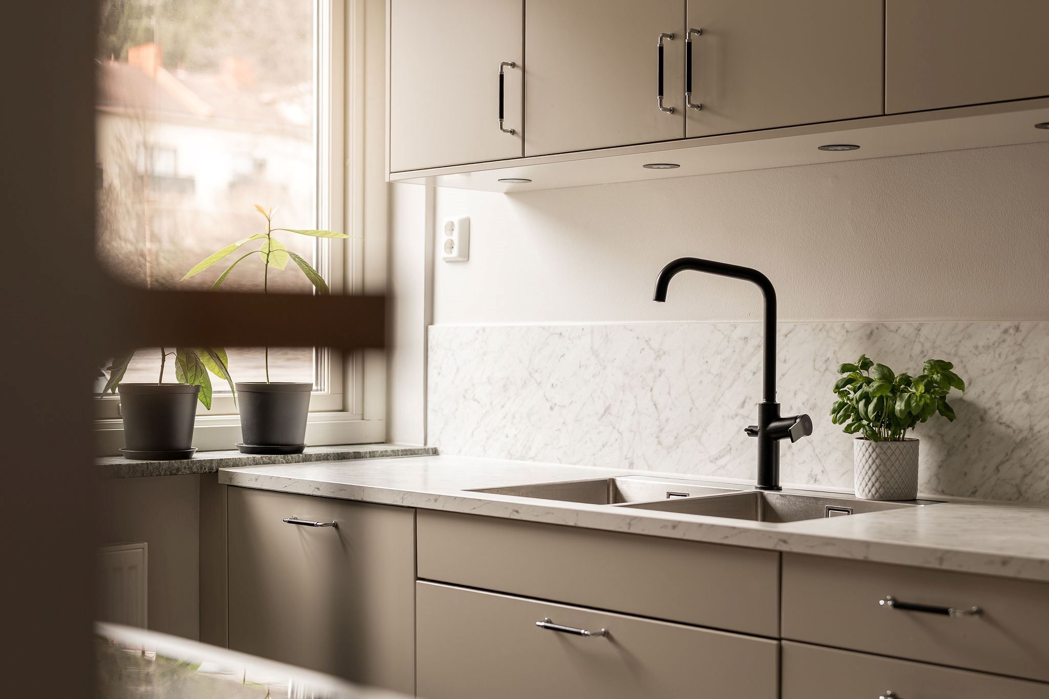 Köket är smakfullt renoverat med tidlösa materialval, gott om arbetsyta och förvaring samt utrustat med allt du behöver för att lyckas i vardagens matlagning såväl som vid större middagar.