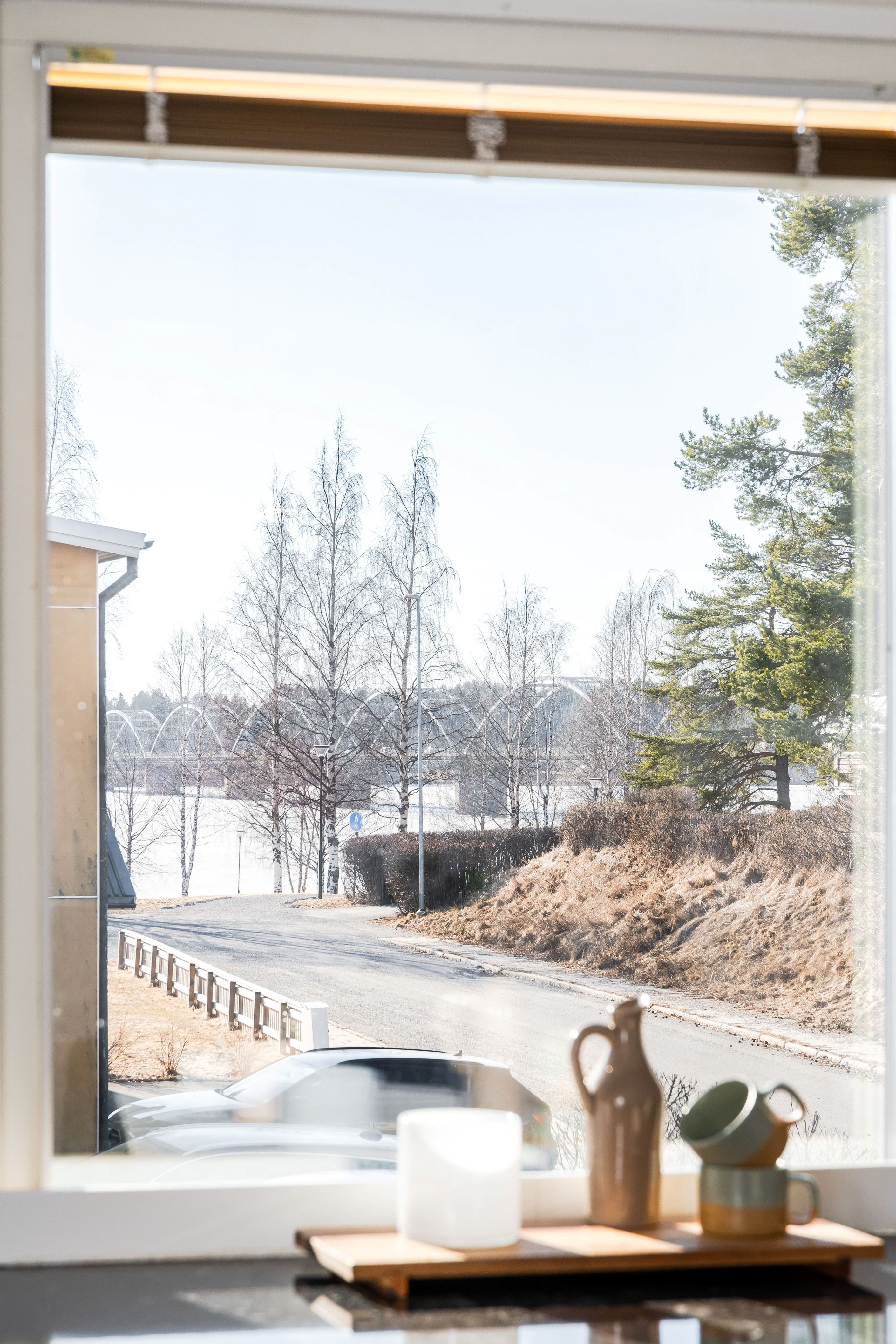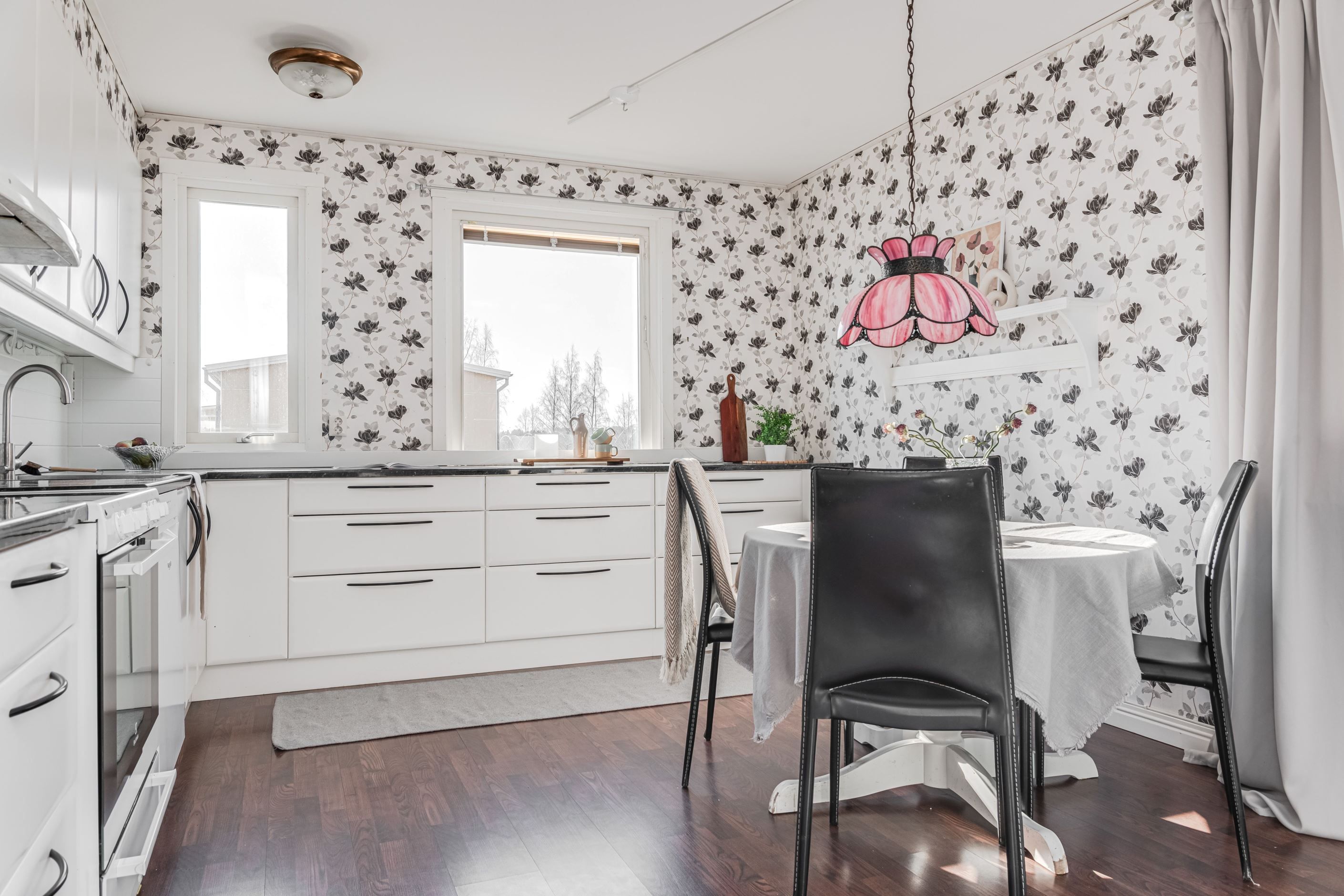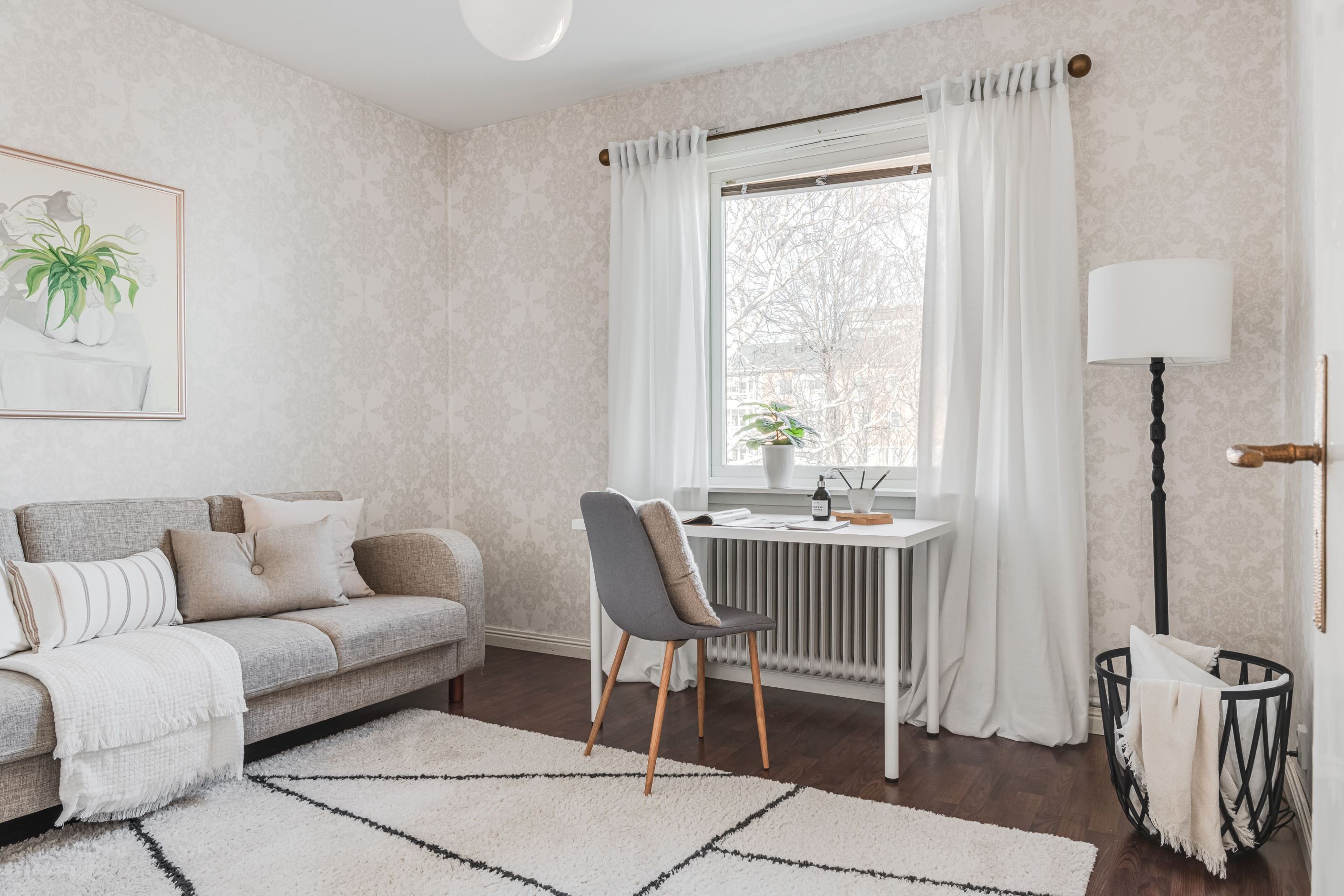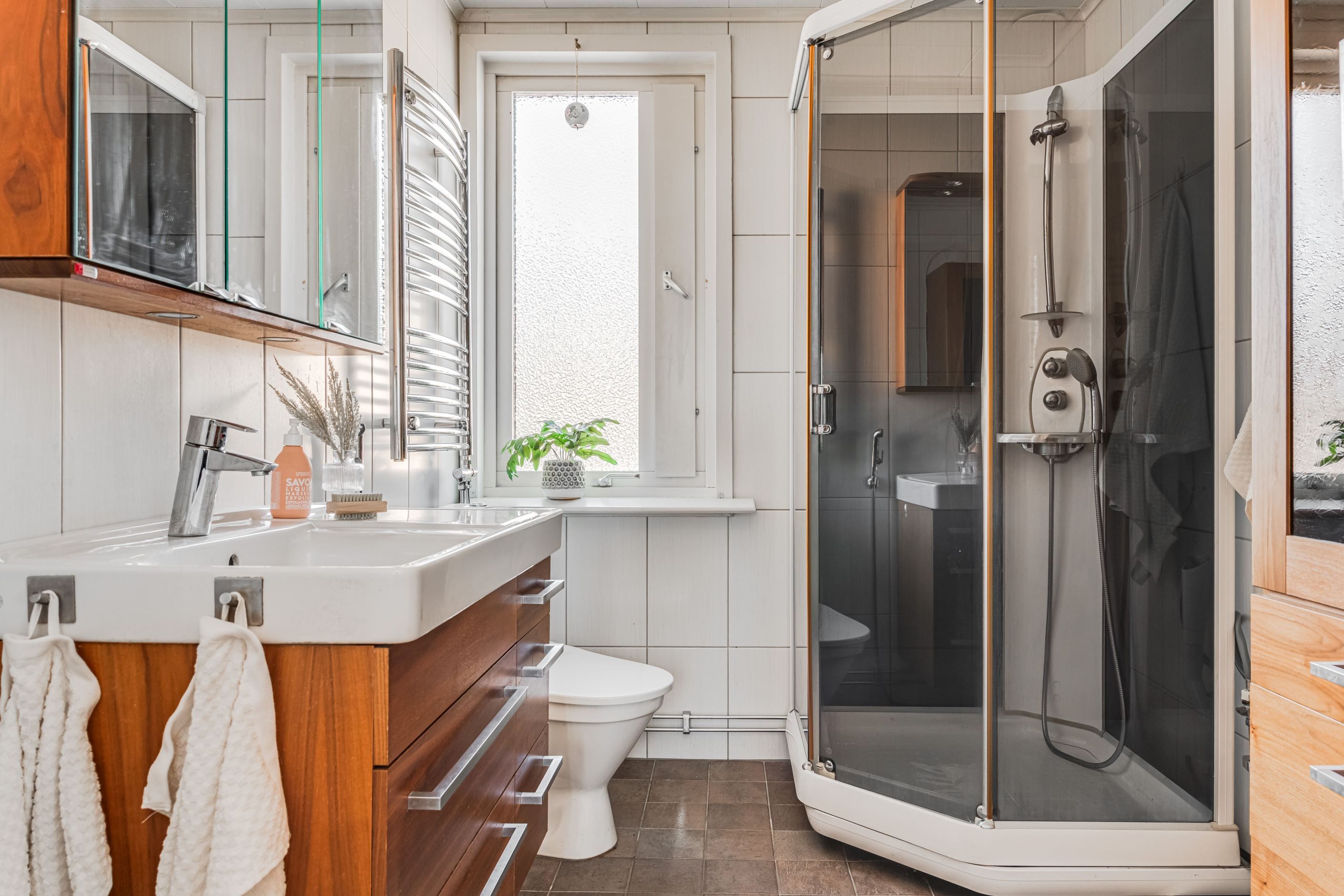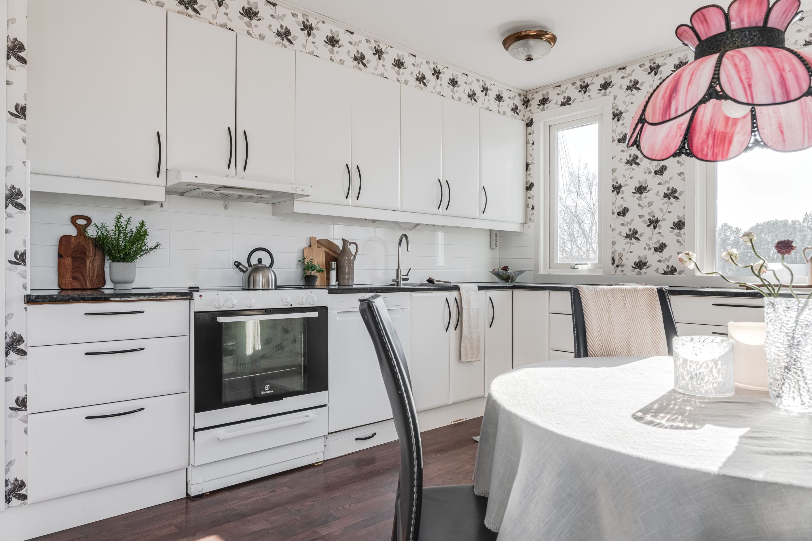 Lägenheten utgör ett helt våningsplan om 110 kvadratmeter boarea samt ett stort varmisolerat, uppvärmt, uterum om cirka 12 kvadratmeter.