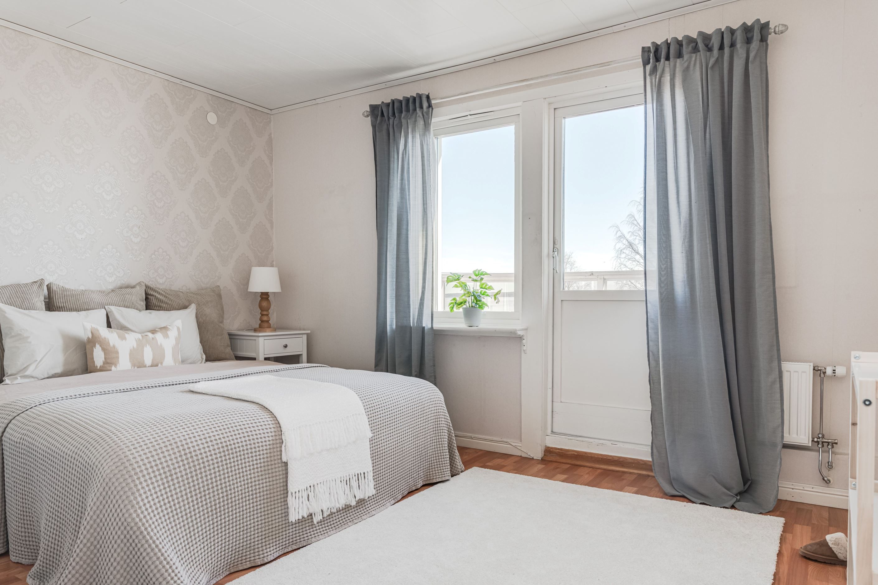 Sovrummen är av bra storlek och från det ena sovrummet nås den öppna balkongen.