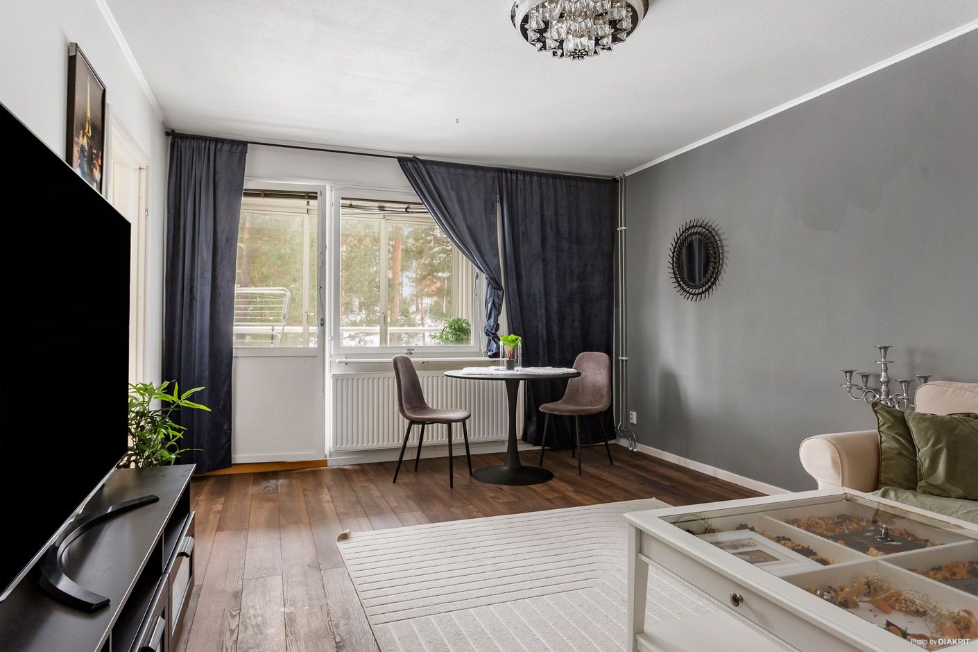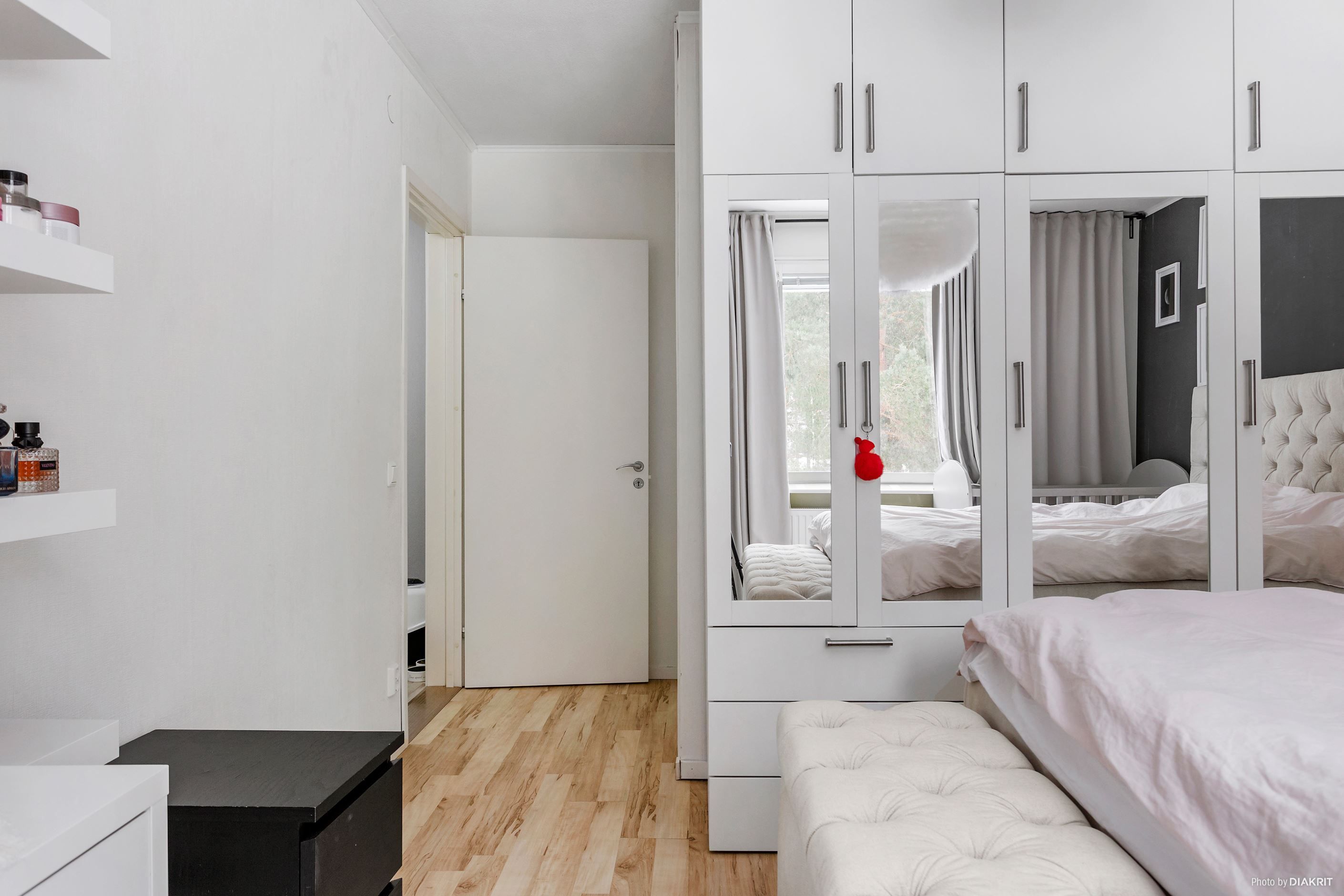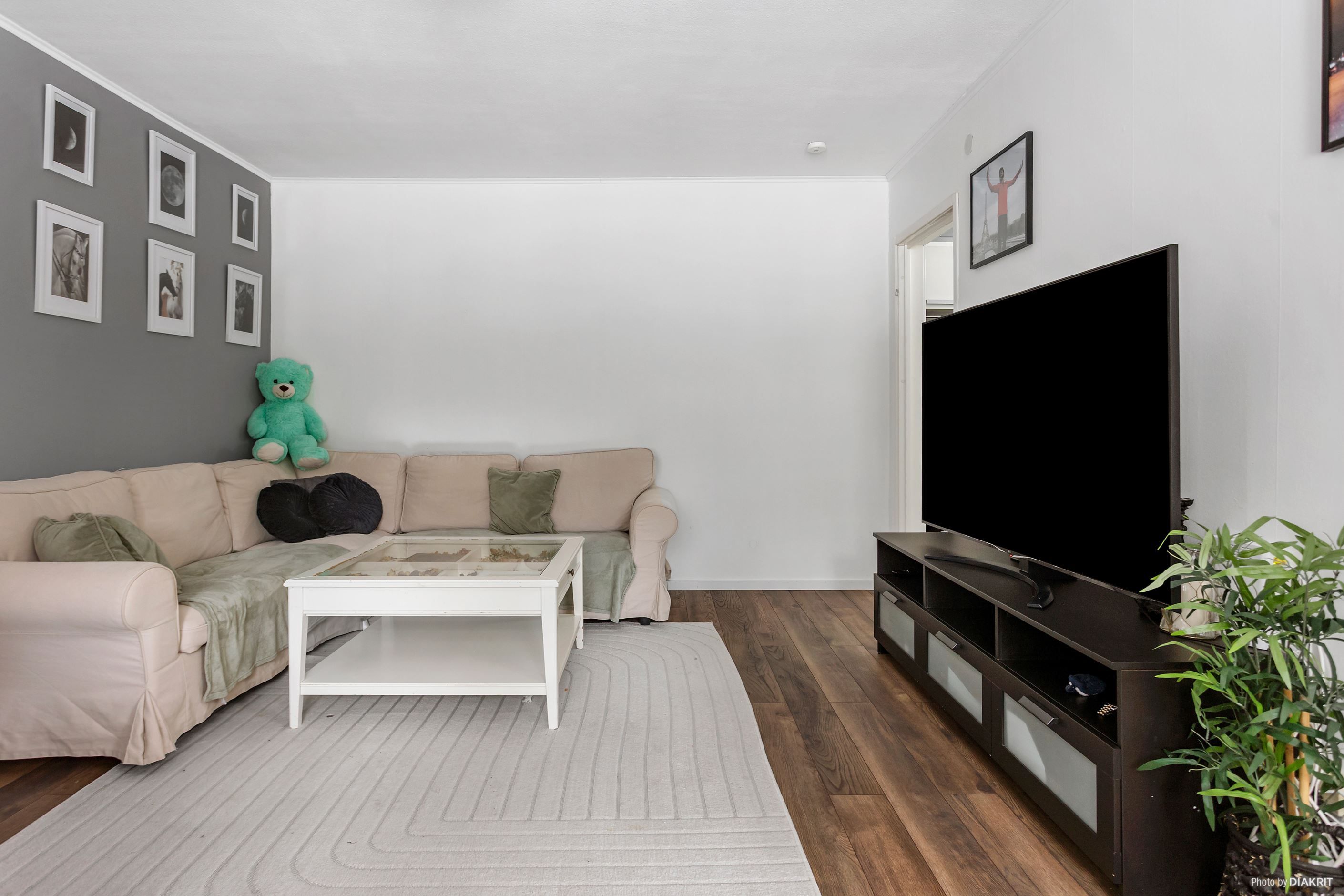Rymligt sovrum med gott om plats för större säng och bra förvaringsmöjlighet i intilliggande klädkammare, helkaklat badrum med duschhörna och tvättmaskin, rymligt vardagsrum med plats för både mat- och soffgrupp samt välplanerat kök med diskmaskin och bra förvaring i både under- samt överskåp.