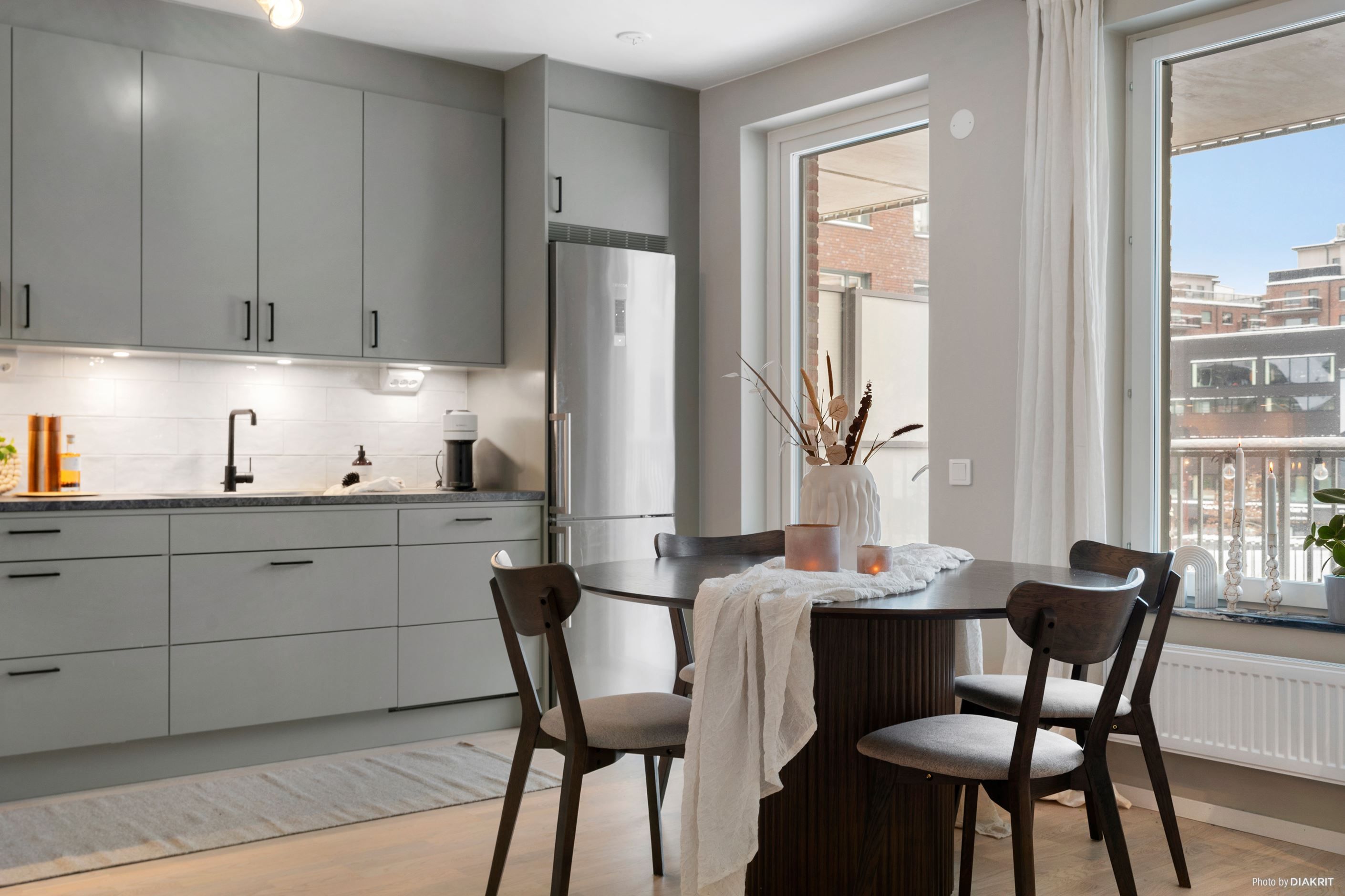 Nu kan vi erbjuda en otroligt välplanerad lägenhet i attraktiva BRF Esplanaden. I denna optimalt planerade lägenhet kommer du känna livskvalitén stiga till skyarna. Att kunna gå ut på en lugnt belägen balkong om 21 kvm med fin parkutsikt och många soltimmar, eller ta cykeln ner till havet och sitta på en klippa på bara ett par minuter - det är livskvalité i sin enkelhet. Det stilrena köket från Vedum håller hög standard och disponeringen av matplats och övriga sällskapsytor är mycket bra. Sovrummet är rymligt med rejäl klädkammare. En stor skjutdörrsgarderob finns i hallen. Helkaklat badrum i vitt kakel och mörkgrått klinker med komfortvärme plus tvättmaskin och torktumlare. Allt paketerat i en fin HSB-förening med god ekonomi.