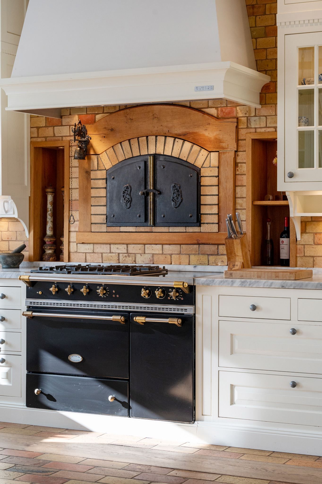 Luftigt kök med mycket generösa arbetsytor på köksbänk med skiva i marmorerat utförande. Högkvalitativa integrerade vitvaror. Plats för en stor matgrupp. Naturligt ljusinsläpp från tre fönster. Golv med trä samt rött tegel. Lyxig vinkällare intill köket.