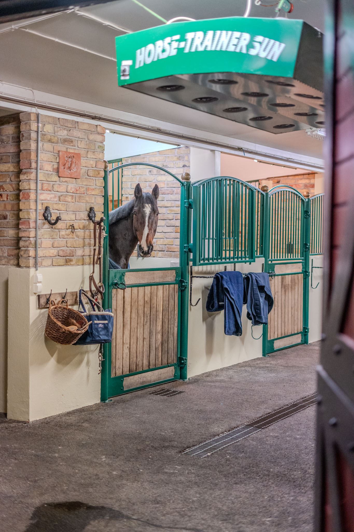 Gårdens huvudnummer är kanske den magnifika manegen byggd 2013. Ridhuset har rundade limträbågar som skapar en fantastisk rymd och estetik, den är utrustad med sprinklerbevattning och Waterboys system samt har en egen djupborrad brunn. Underlaget består av fibersand från Gronnslag, levererat av det holländska företaget Ben Anderberg. Manegen är 20 ggr 60 meter stor medan själva byggnaden sträcker sig ungefär 66 ggr 23 meter. På ena kortsidan finns en läktare och ovan finns ett läktarrum med intilliggande caféteria med tillhörande kök, två sovalkover och badrum. I sydvästlig riktning finns stora glaspartier och en generös uteplats. I ridhuset finns även två stora boxar och hinderförråd och intill finns ett vagnförråd.