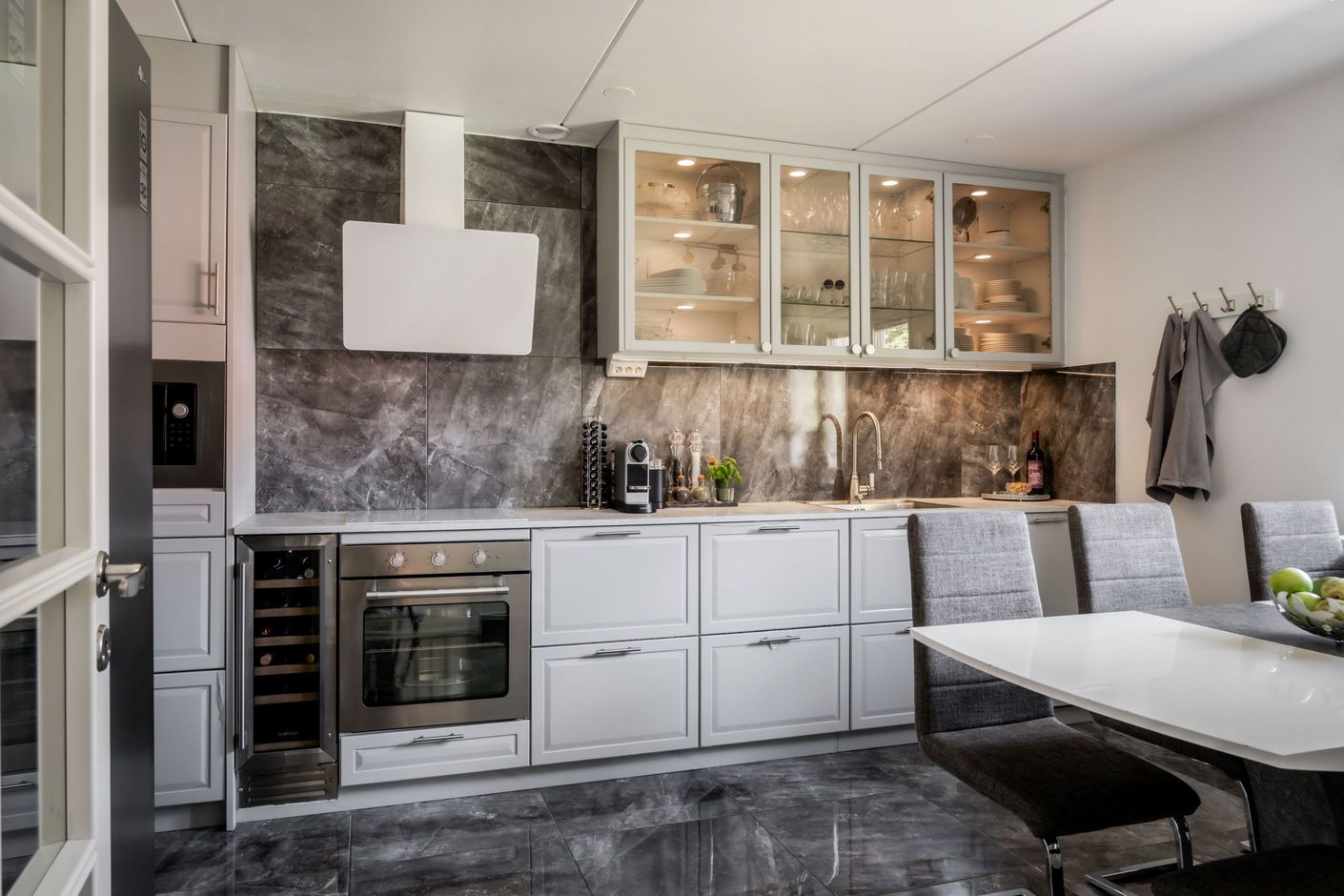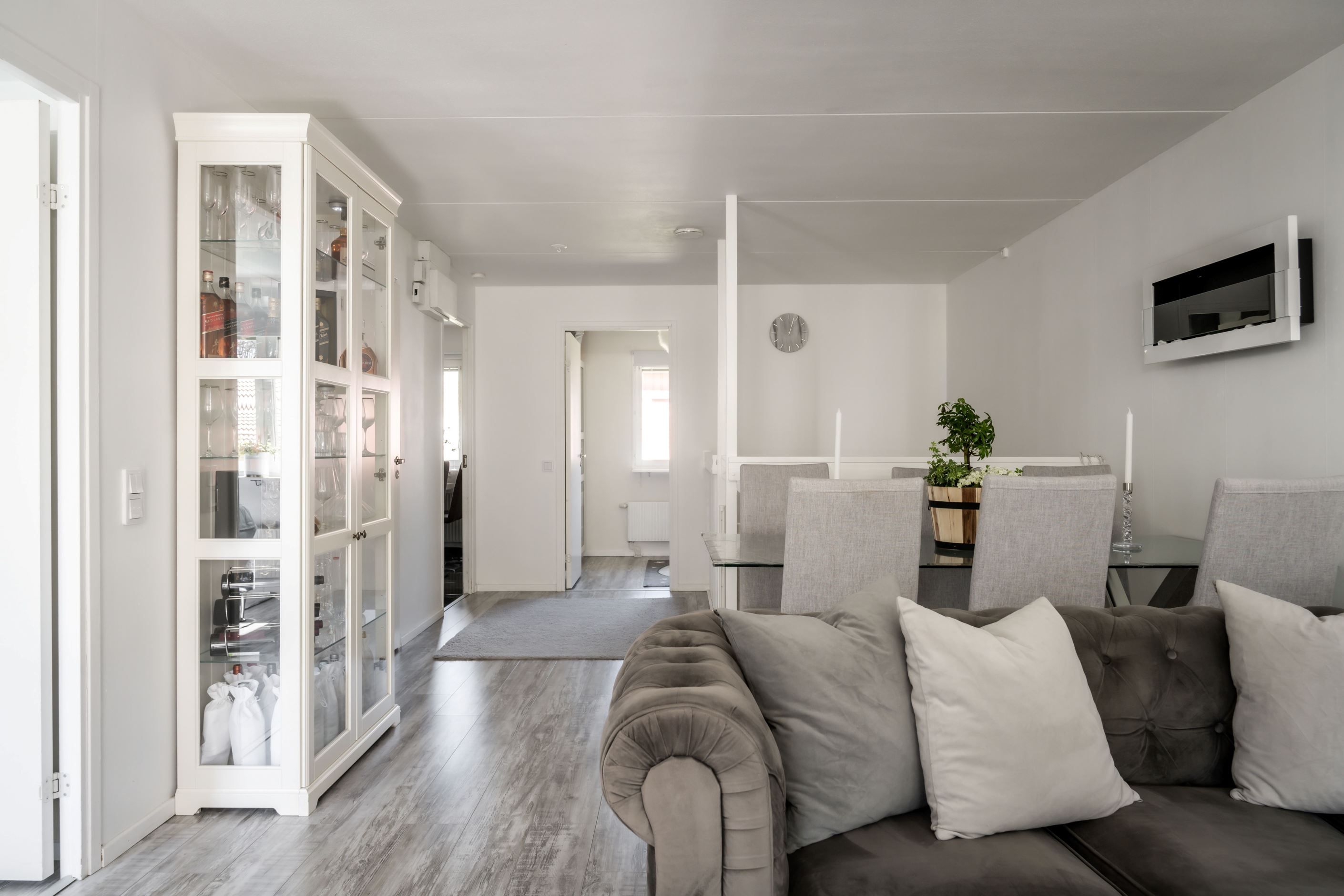 Välkomna till Hultavägen 3F och denna genomgående renoverade lägenhet. Här väntar uteplats på entrésidan och balkong med eftermiddags- och kvällssol. Lägenheten har sin entré på markplan och sedan en trappa som tar dig upp till resten av lägenheten. Badrummet är renoverat i samband med stambyte troligtvis 2016. Köket totalrenoverades 2023 och andas lyx. Här får ett större matsalsbord smidigt plats. Innanför köket har du en egen tvättstuga, vilket underlättar i vardagen. Vardagsrummet är stort och luftigt, här är inrett med dubbla soffor och stort matsalsbord, vilket är ovanligt för en 3:a att erbjuda. Utöver detta finns här två sovrum, ett större master bedroom och ett barnrum.